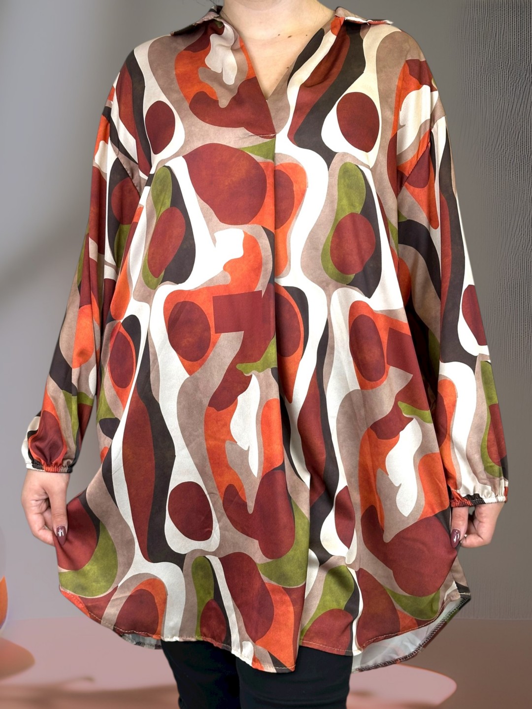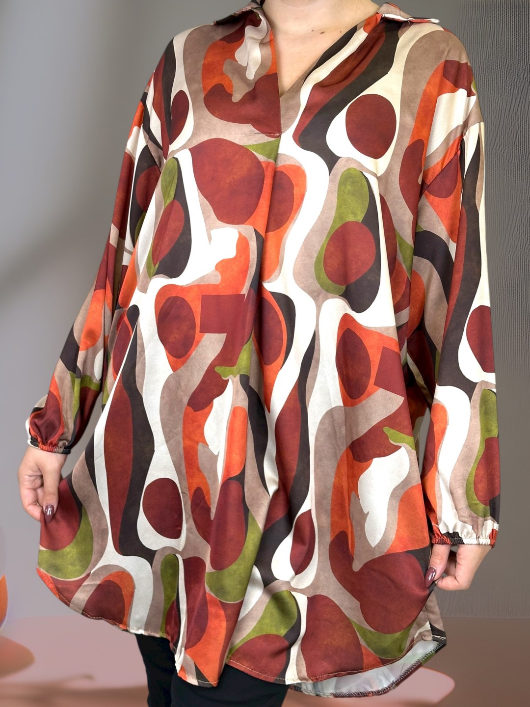 Αυτό το μακρύ πουκάμισο plus size με μοτίβο δίνει μια ατελείωτη όψη μόδας! Είναι αναζωογονητικό, ευκολοφόρετο και εξίσου κολακευτικό για κάθε τύπο σώματος. Σε One size, εξασφαλίζει τέλεια εφαρμογή.