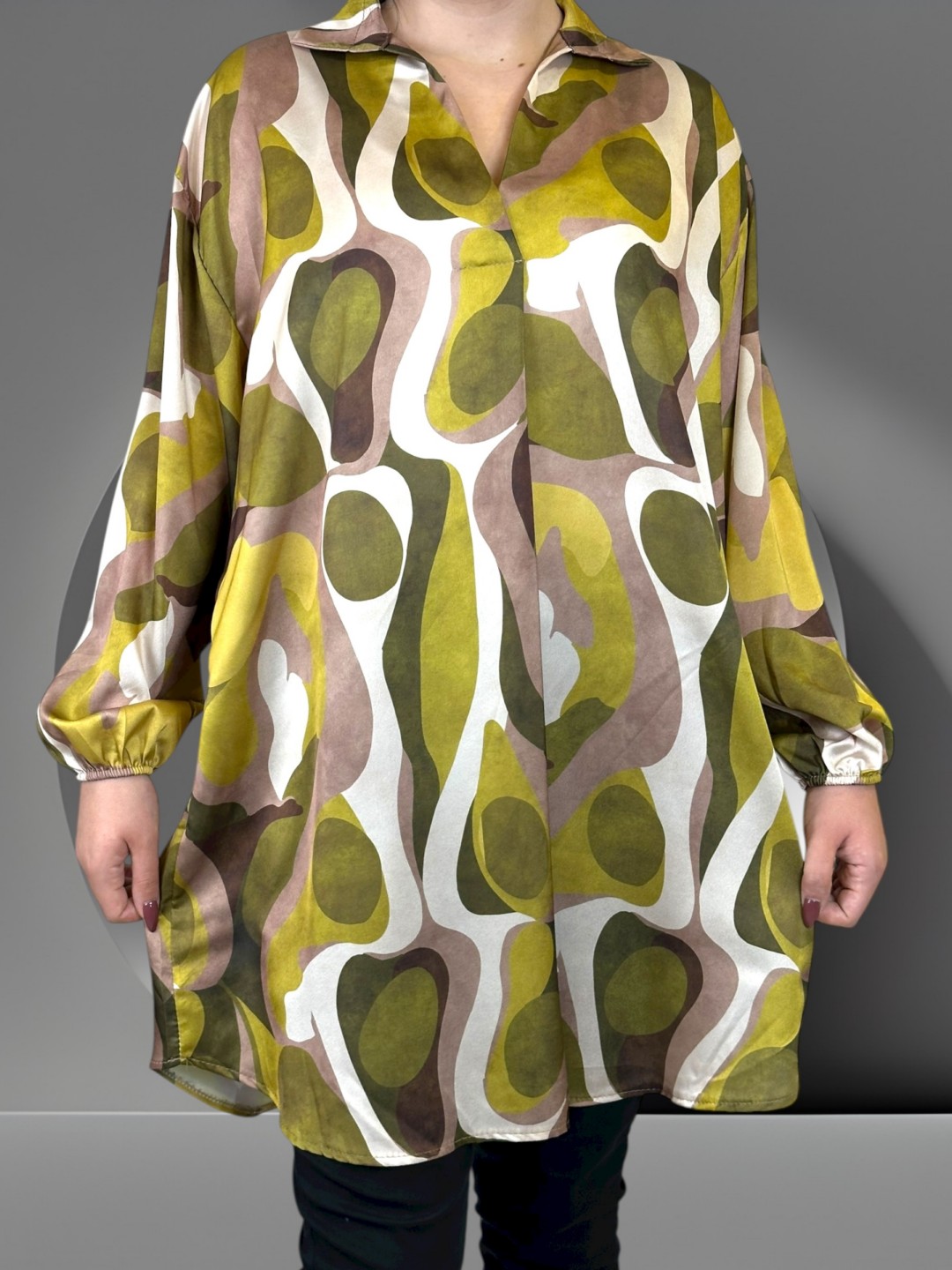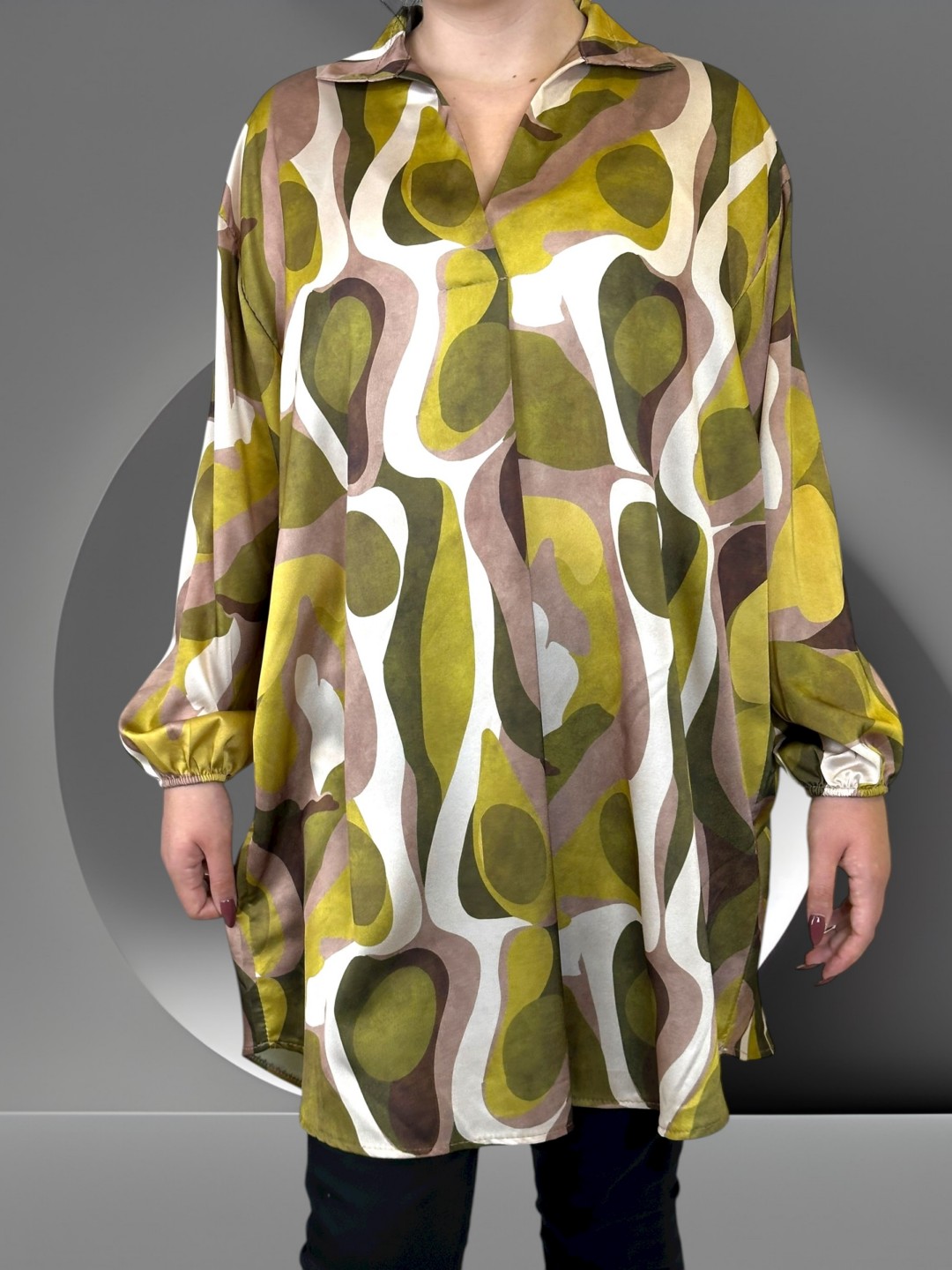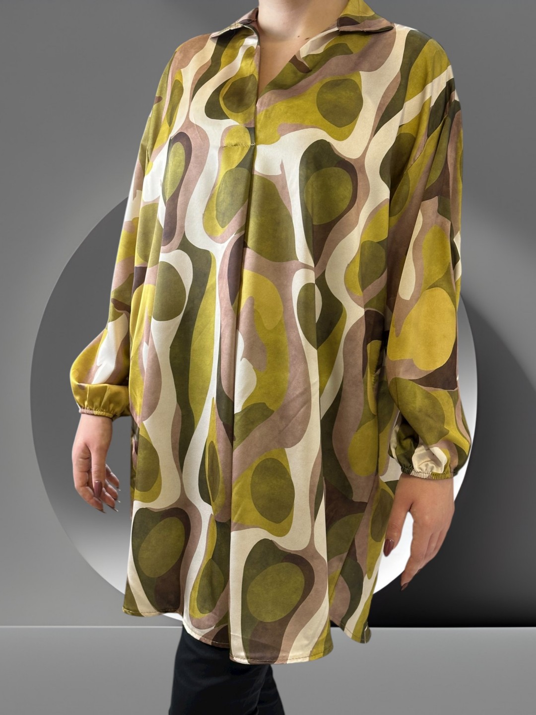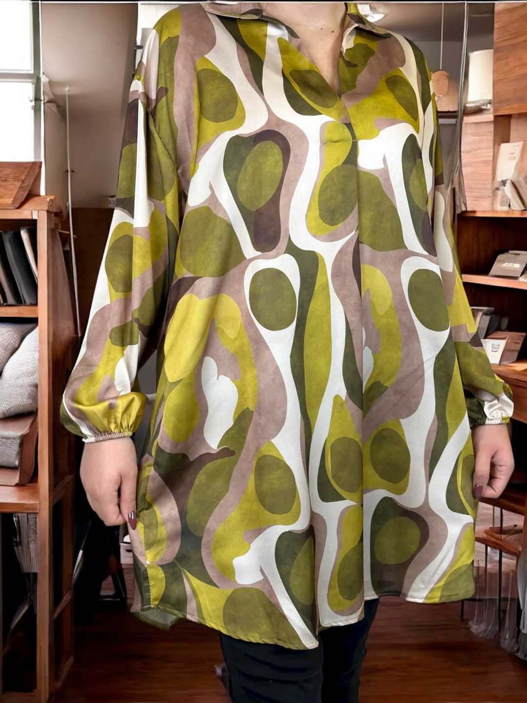 Μακρύ πουκάμισο plus size με στυλάτο μοτίβο που τονίζει την θηλυκότητα σας. Ιδανικό για κάθε περίσταση, εφαρμόζει τέλεια και χαρίζει άνεση. Μεγέθη One size που ταιριάζουν σε όλες.