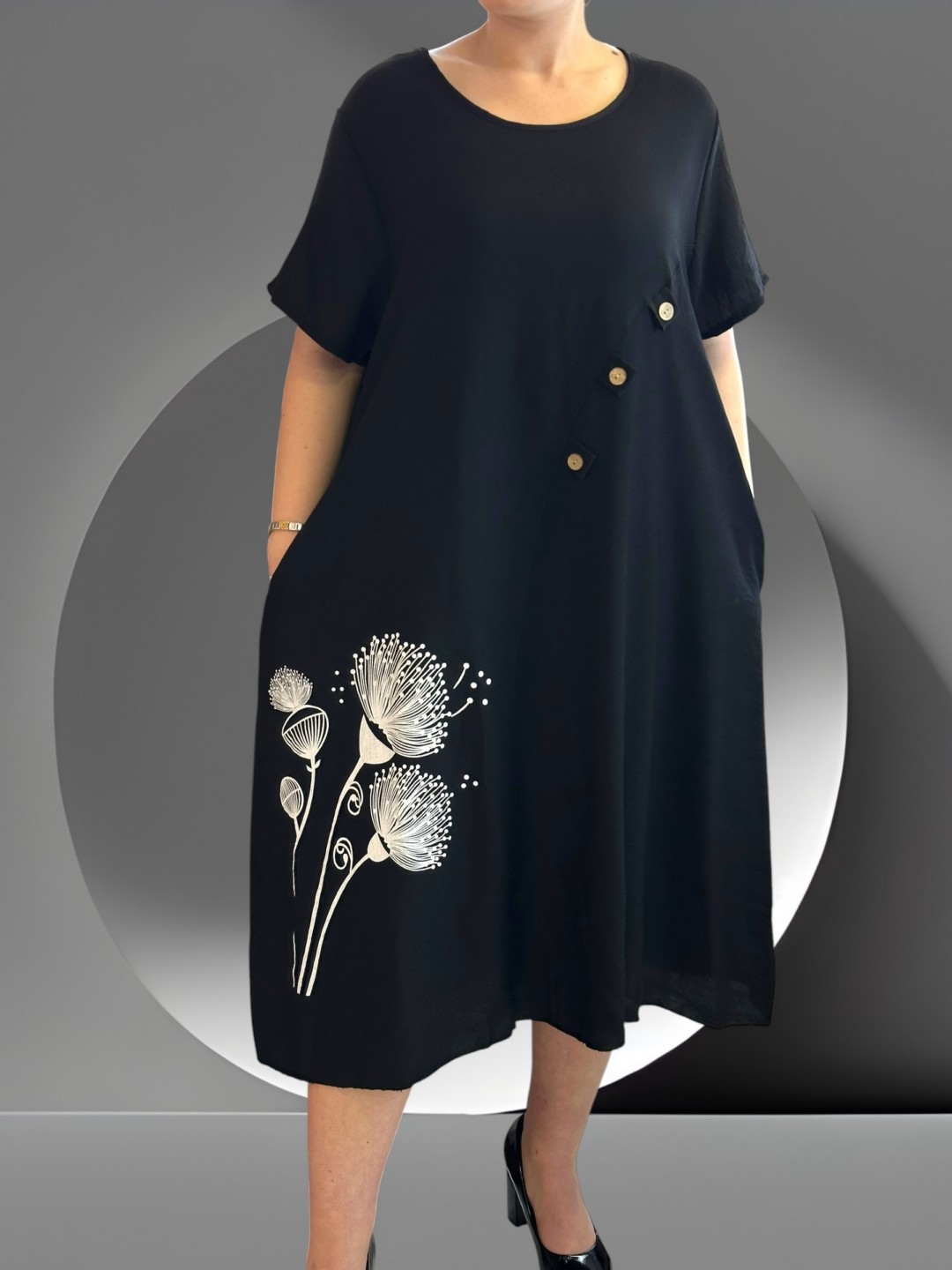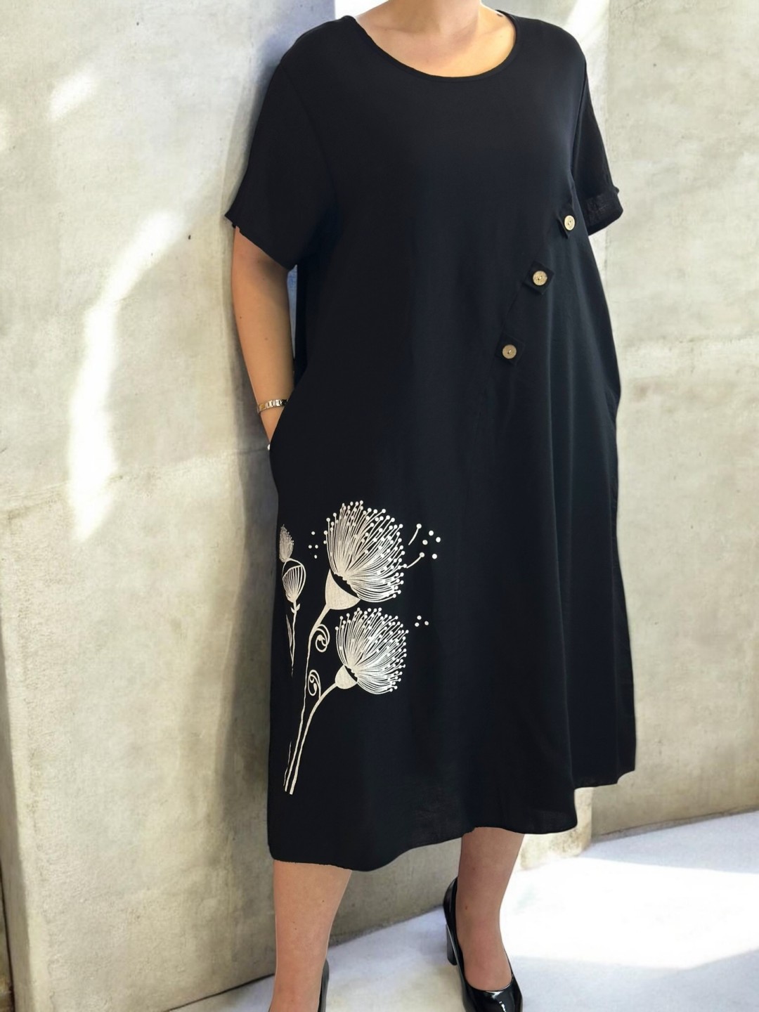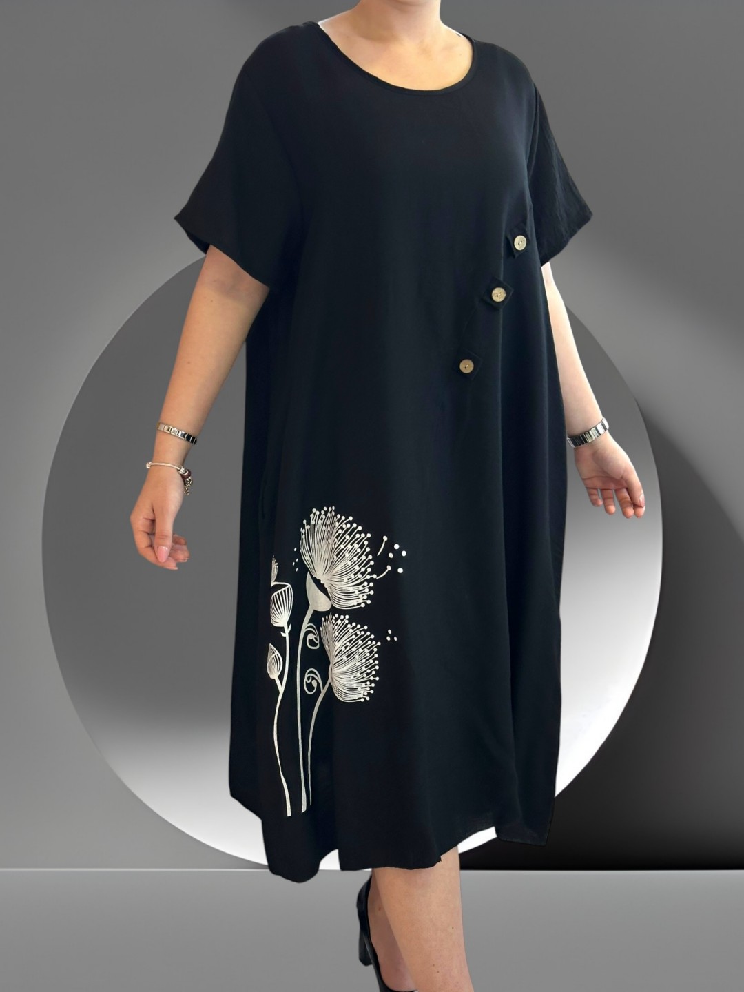 Μαύρο φόρεμα με ξεχωριστό σχέδιο στο κάτω μέρος