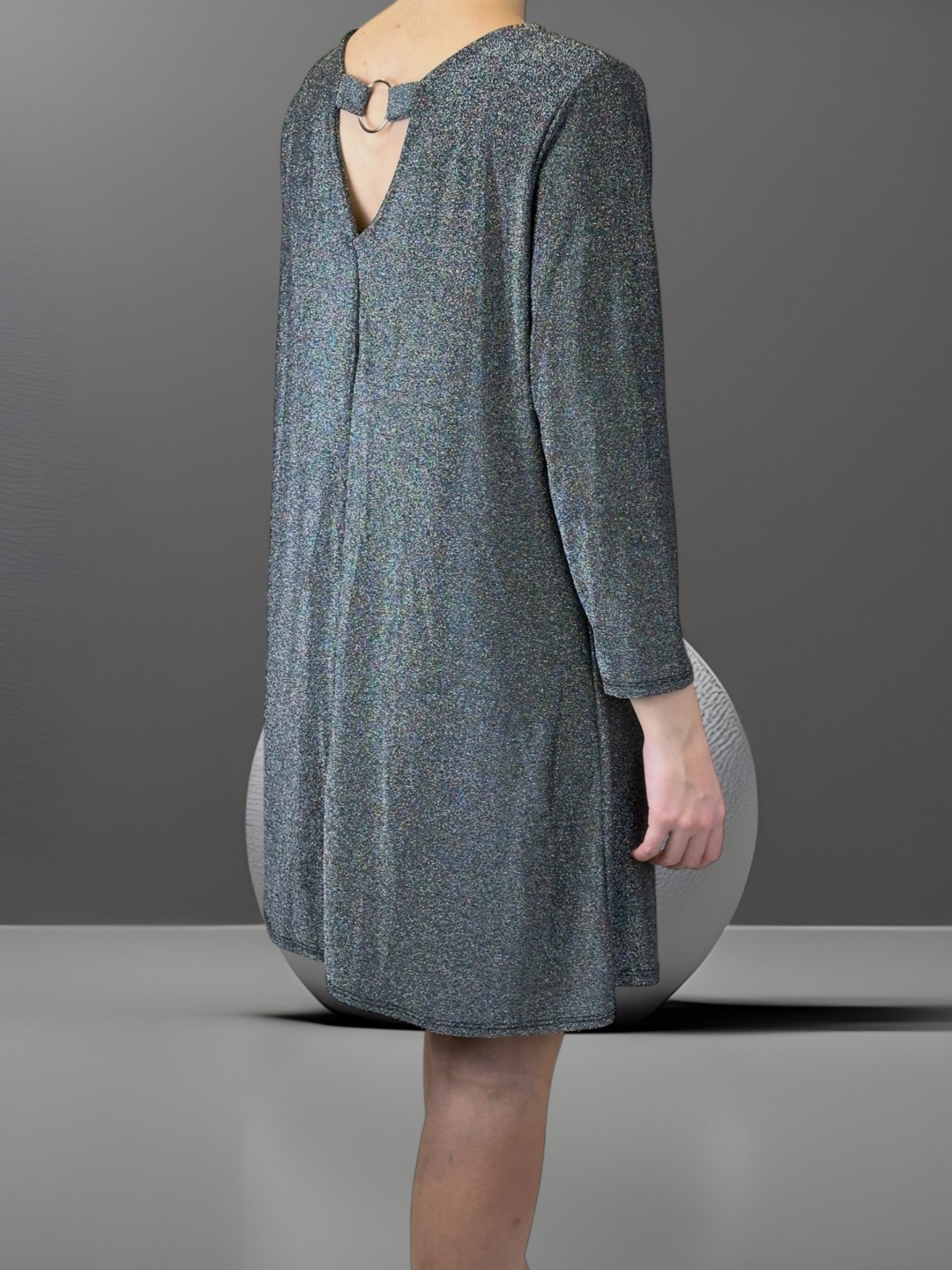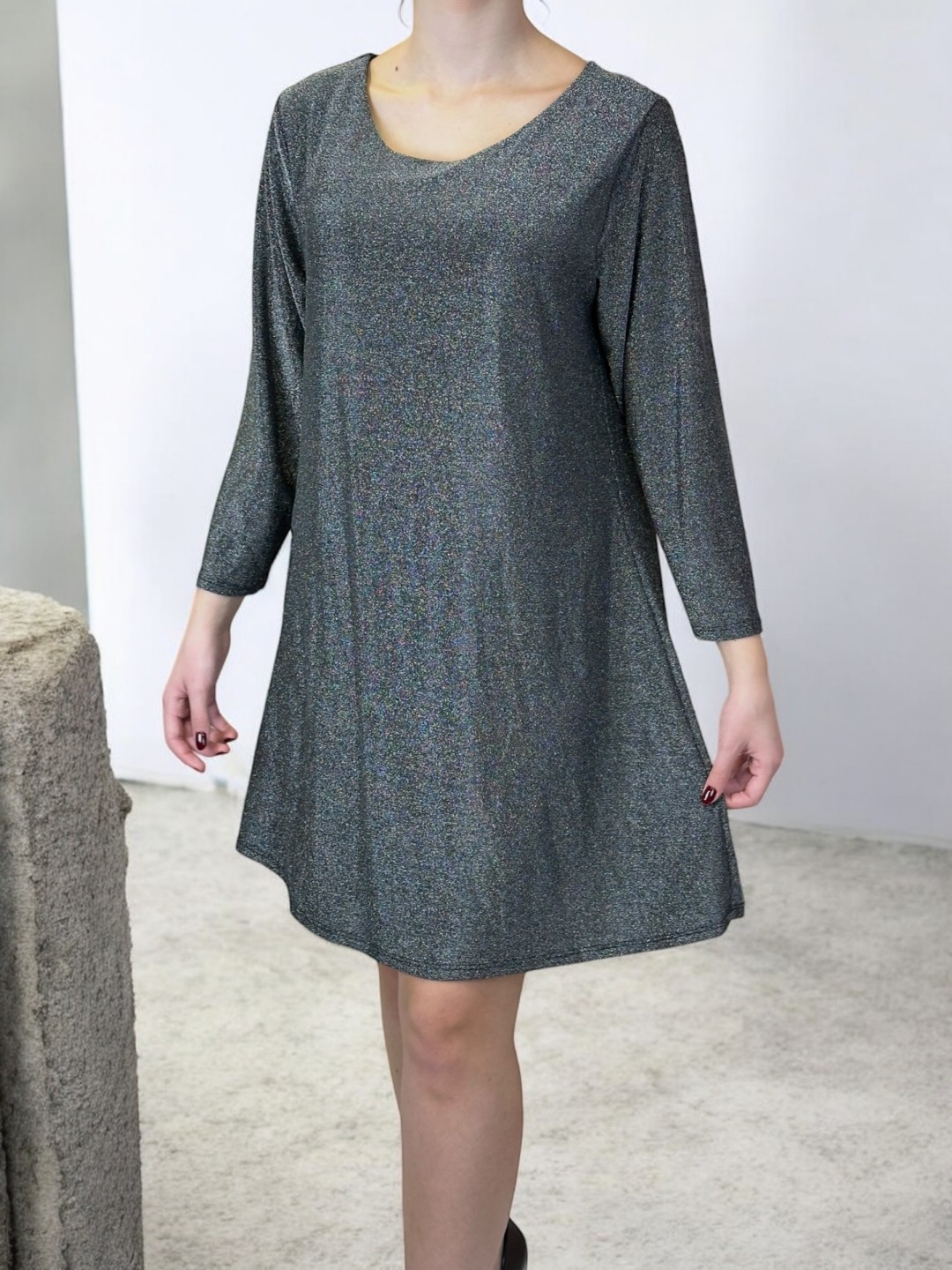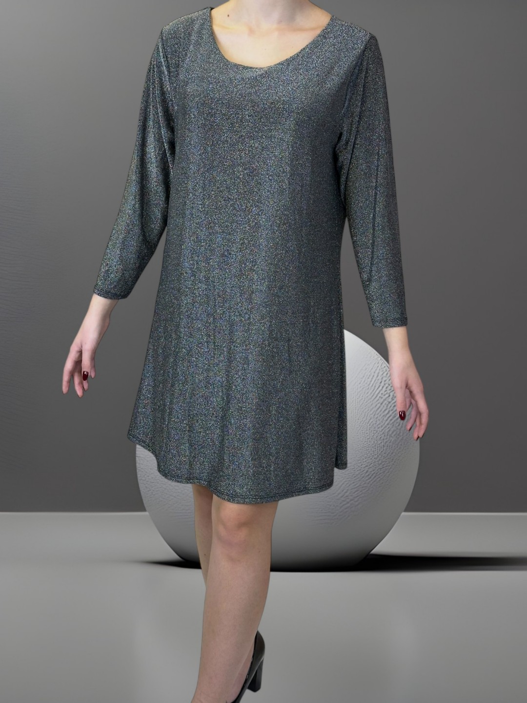 Γιορτάστε την κομψότητα με αυτό το καταπληκτικό Μεταλλιζέ Lurex φόρεμα plus size. Ιδανικό για κάθε περίσταση, αυτό το εντυπωσιακό κομμάτι θα σας κάνει να αισθάνεστε υπέροχα και μοναδικά. Με μεγέθη One size.