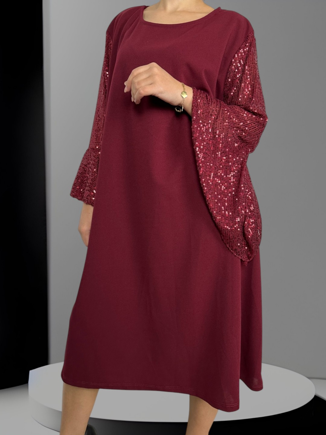 Μιντι φόρεμα με στραφταλιζέ μανίκια