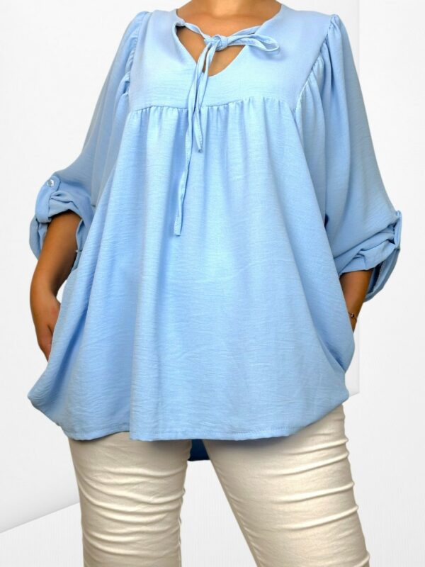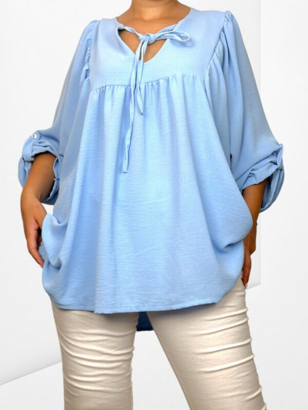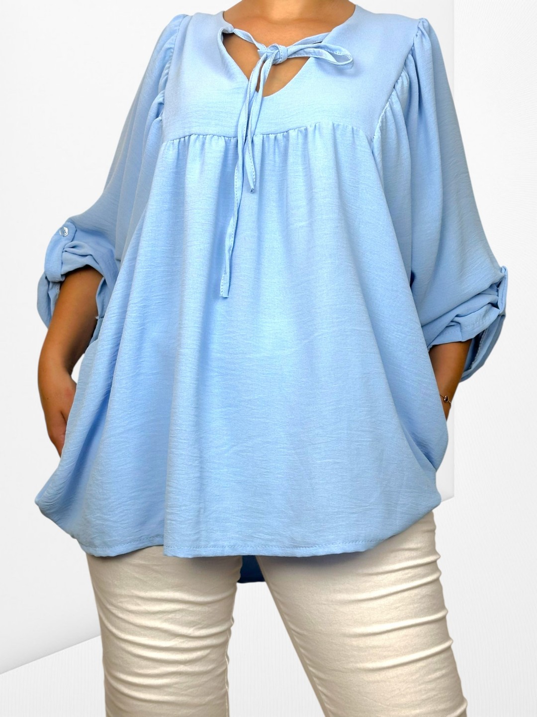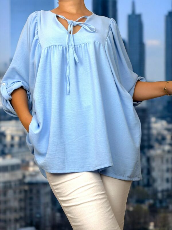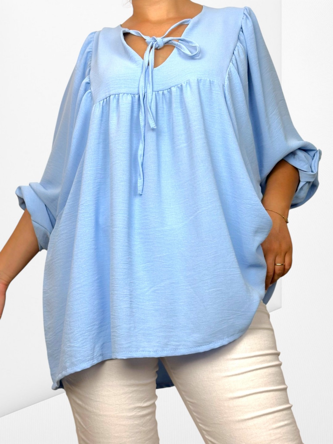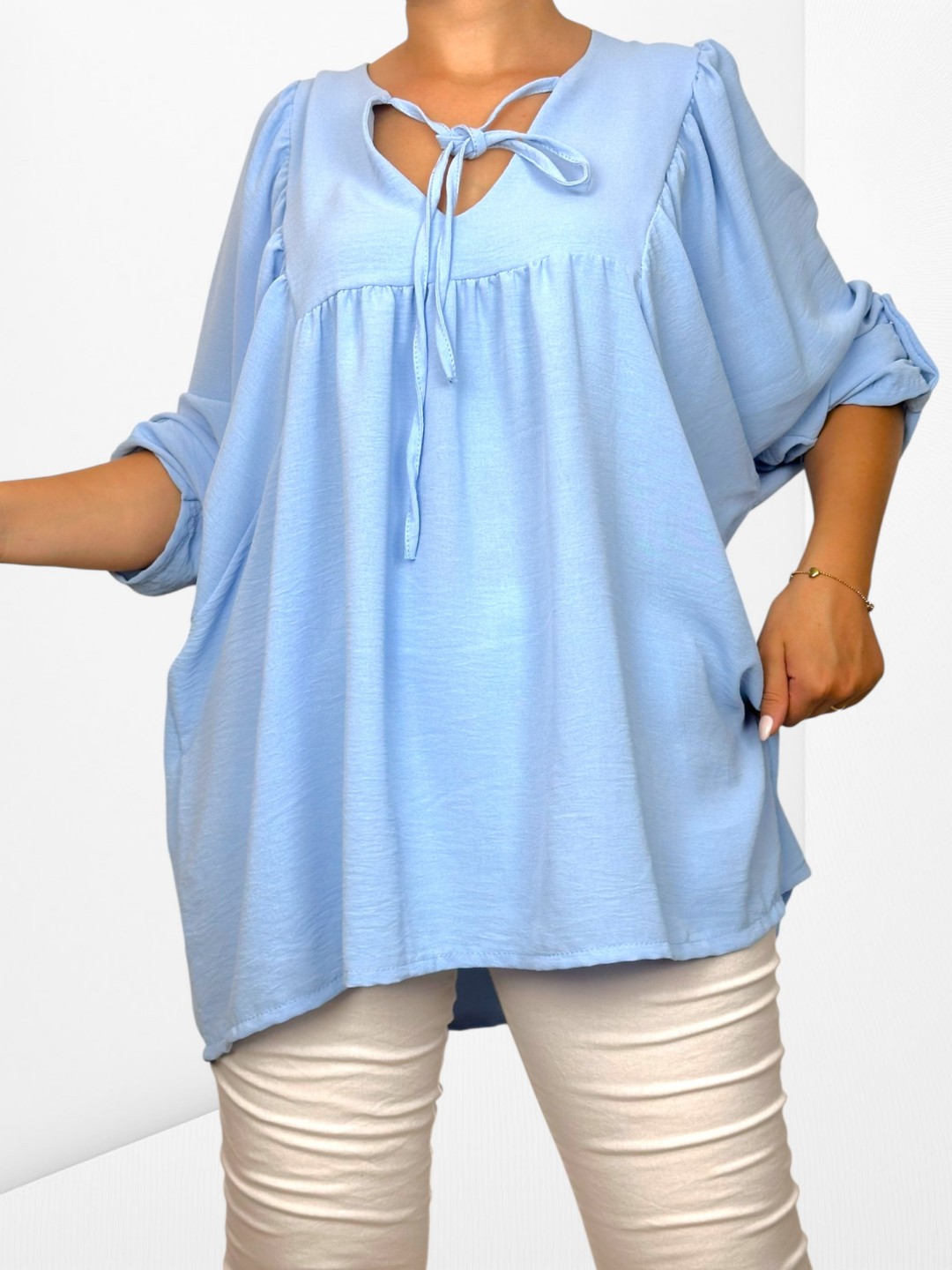 Μονόχρωμη μπλούζα με δέσιμο στο V