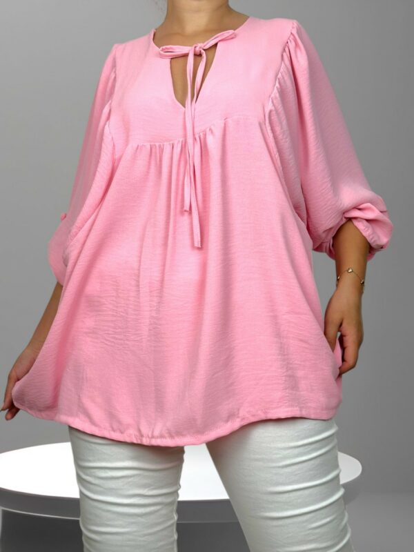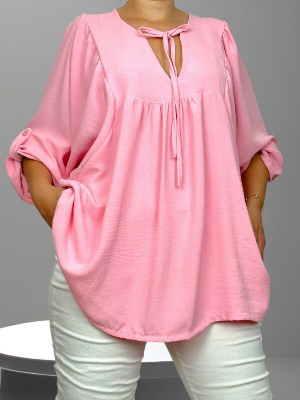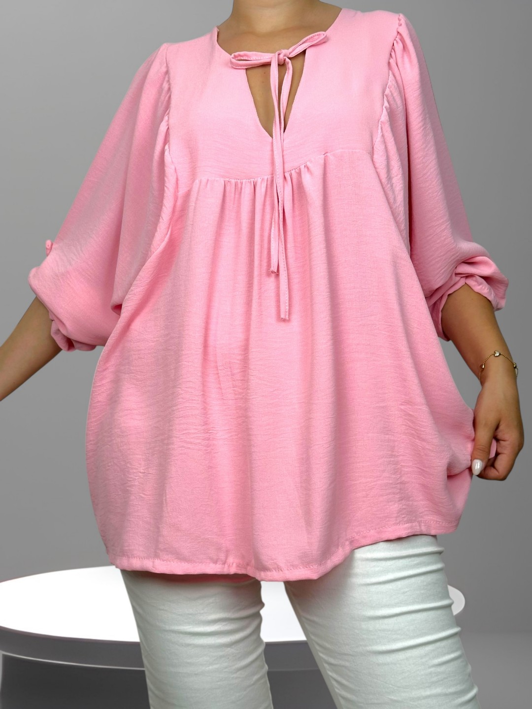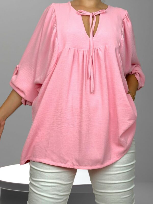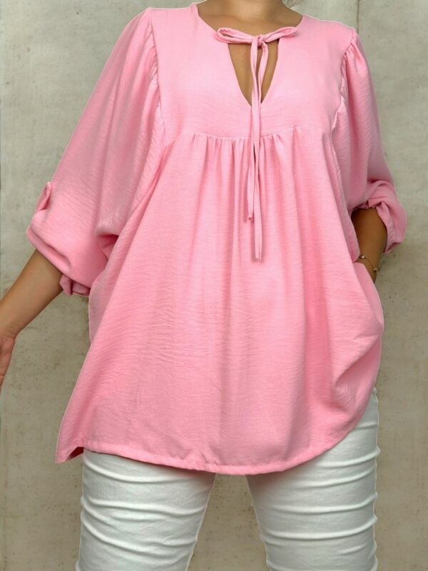 Μονόχρωμη μπλούζα με δέσιμο στο V