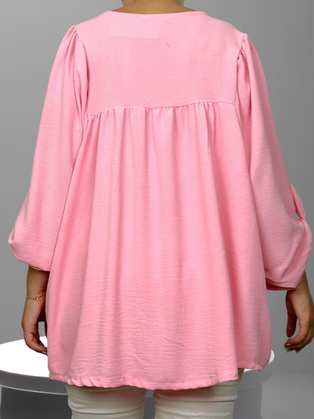 Προσθέστε στυλ στην καθημερινότητά σας με αυτή την μονόχρωμη plus size μπλούζα που δένει στο V. Είναι κατασκευασμένη από μια ανθεκτική και ελαστική μίξη από viscoza, poliester και elastan, προσφέροντας άνεση όλη την ημέρα. Διατίθεται σε One Size.
