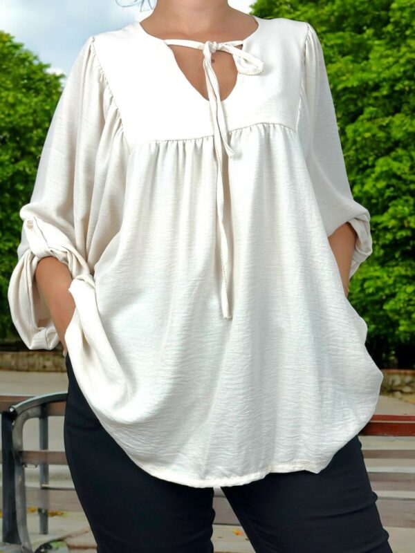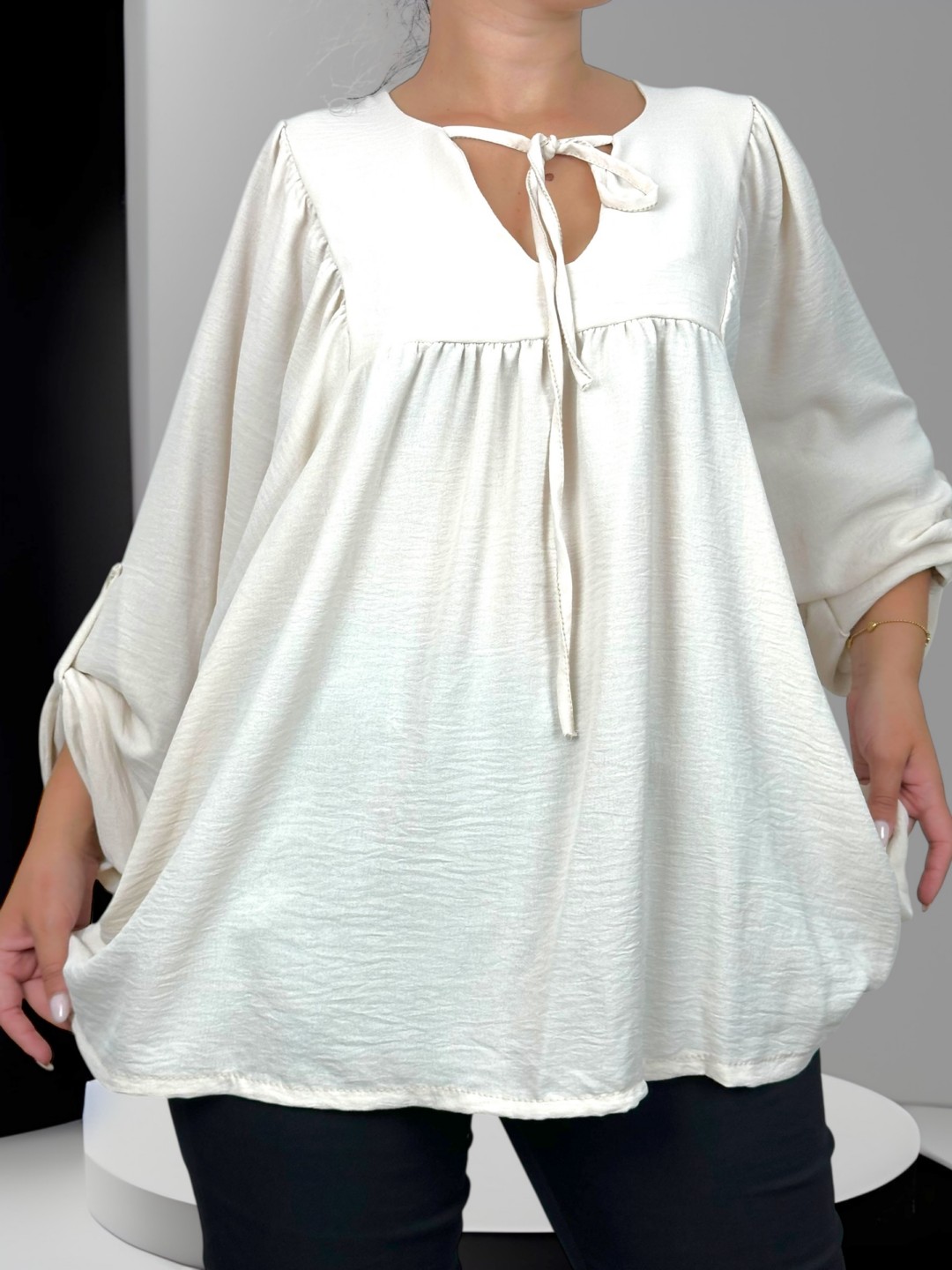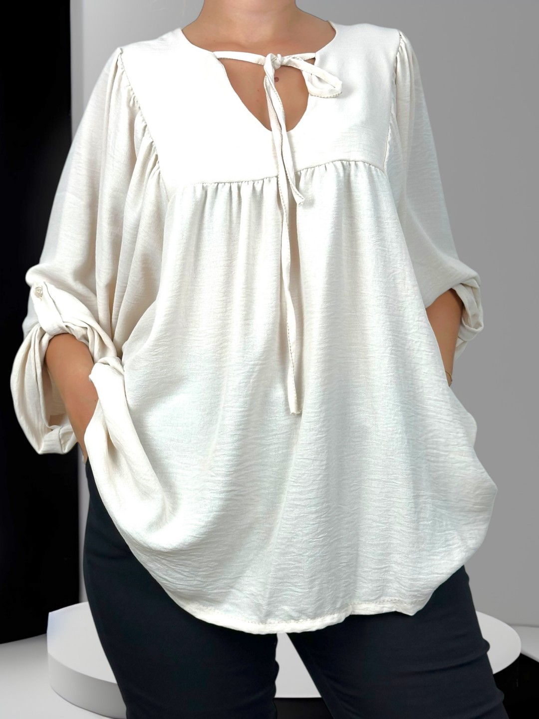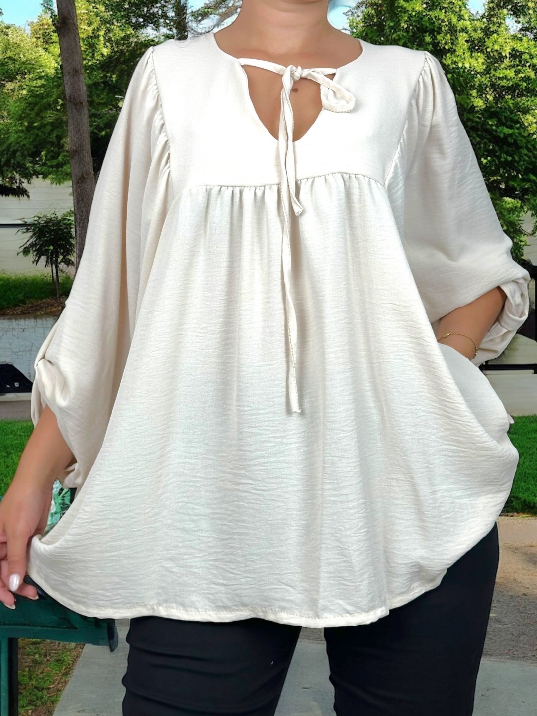 Μονόχρωμη μπλούζα με δέσιμο στο V