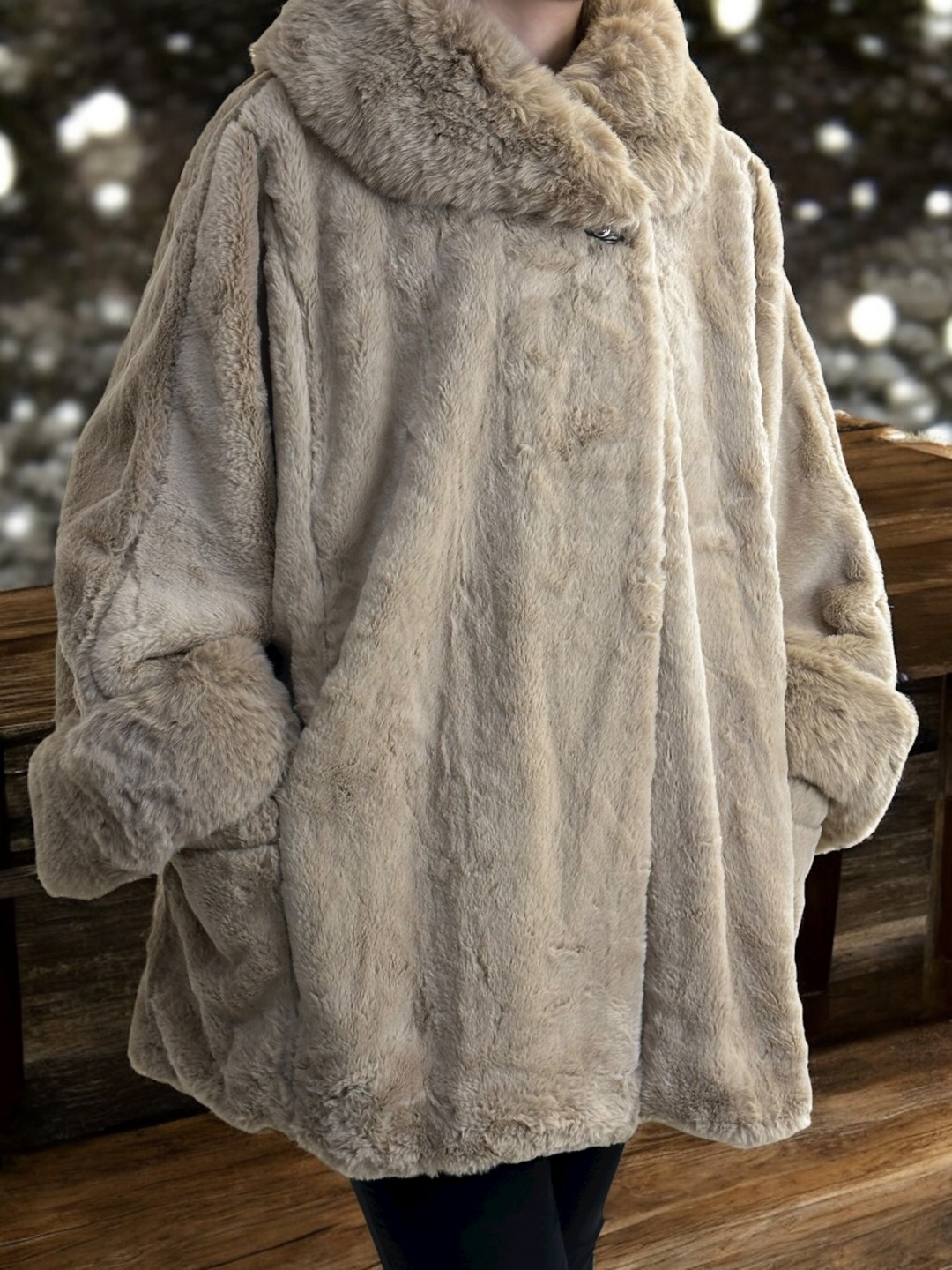 Αναδείξτε τη λάμψη σας με αυτή τη μοντέρνα plus size γούνα. Πανέμορφη και άνετη, με κούμπωμα επάνω για άψογο ταίριασμα. Φτιαγμένη από 95% πολυεστέρα, 5% ελαστάν, το μέγεθός της είναι one size. Θα σε κάνει να αισθάνεσαι πολυτελής και κομψή.