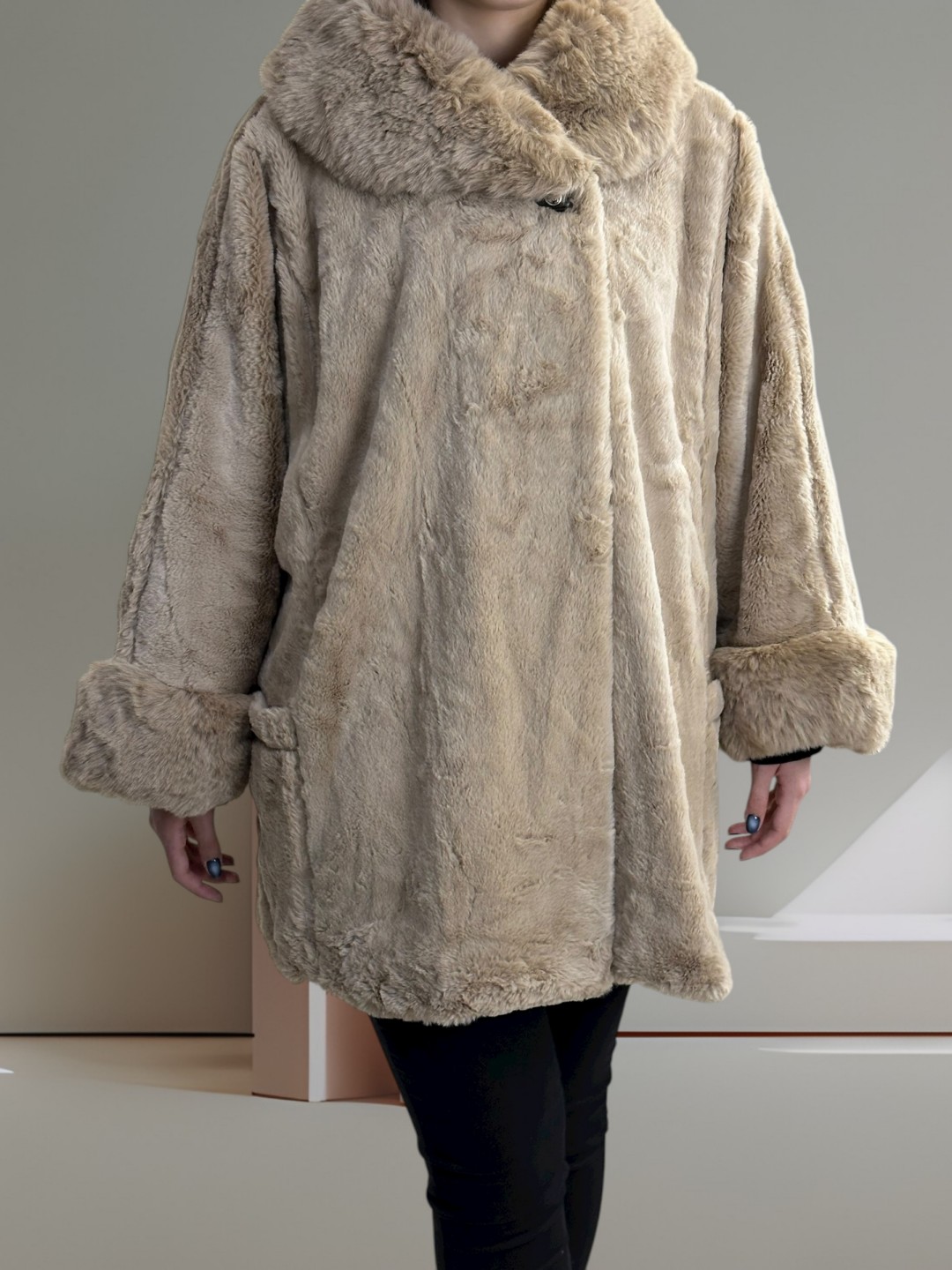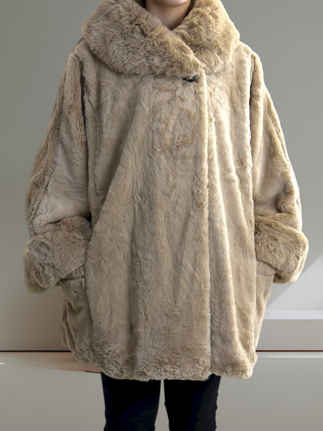 Μοντέρνα γούνα plus size με κούμπωμα επάνω