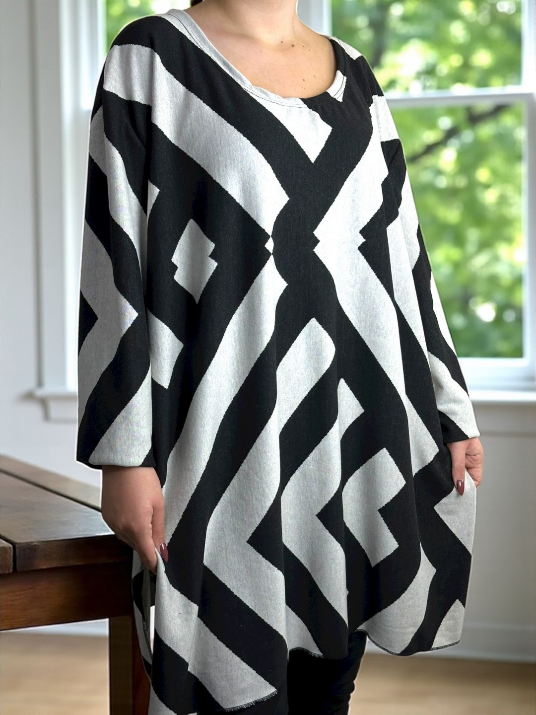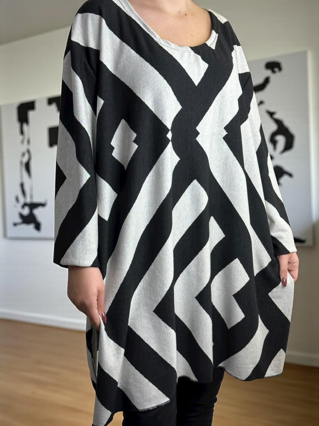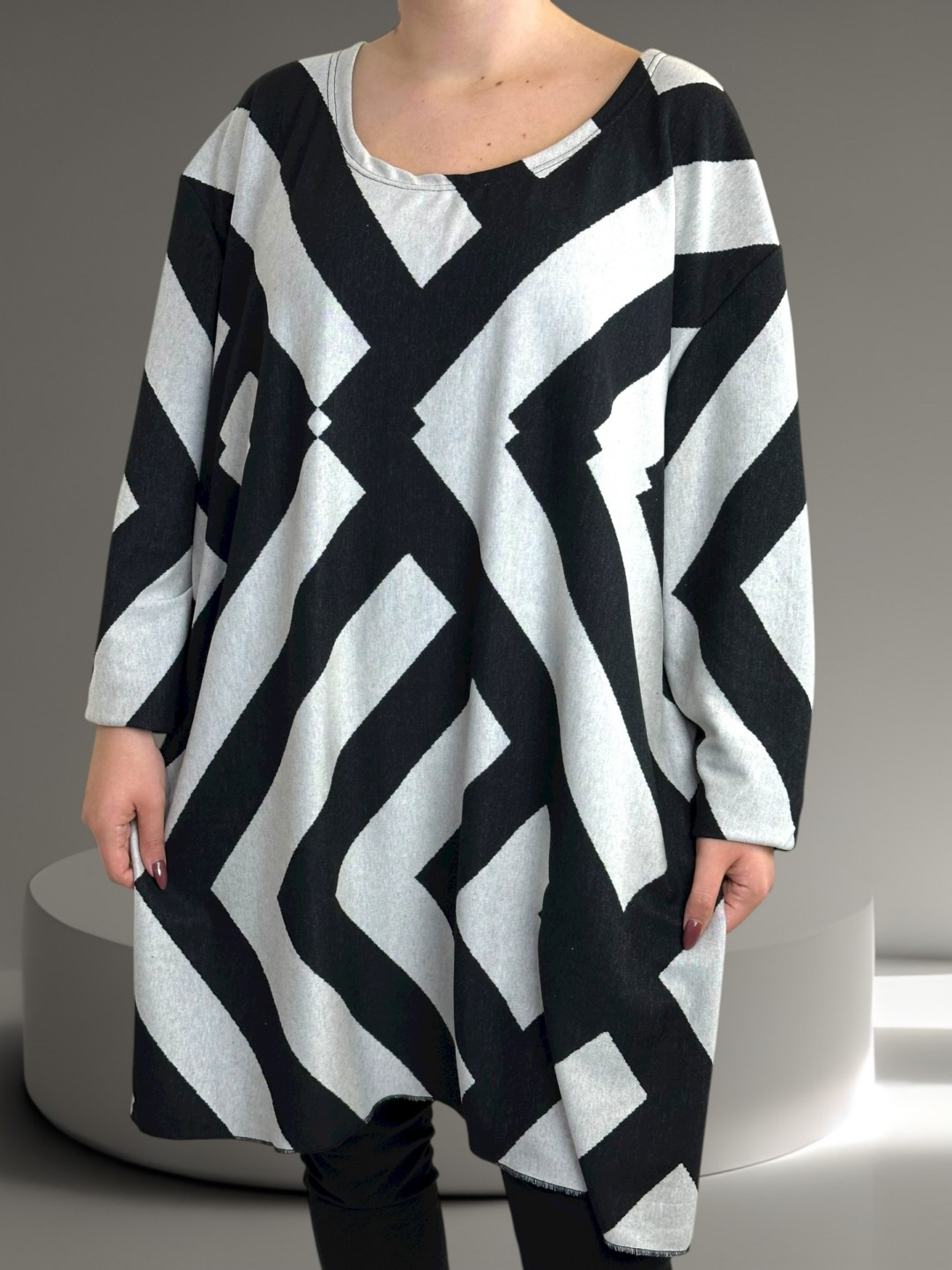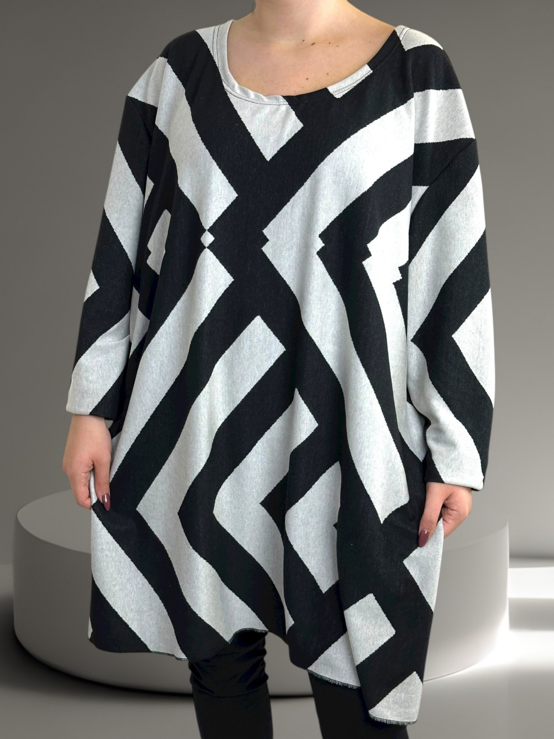 Αναδείξτε την θηλυκότητά σας με αυτό το μοντέρνο plus size μπλουζοφόρεμα! Έχει contrast λεπτομέρειες που προσθέτουν μια στιλάτη πινελιά, ενώ το one size εγγυάται άνετη εφαρμογή για κάθε σωματότυπο. Ιδανικό για κάθε περίσταση.