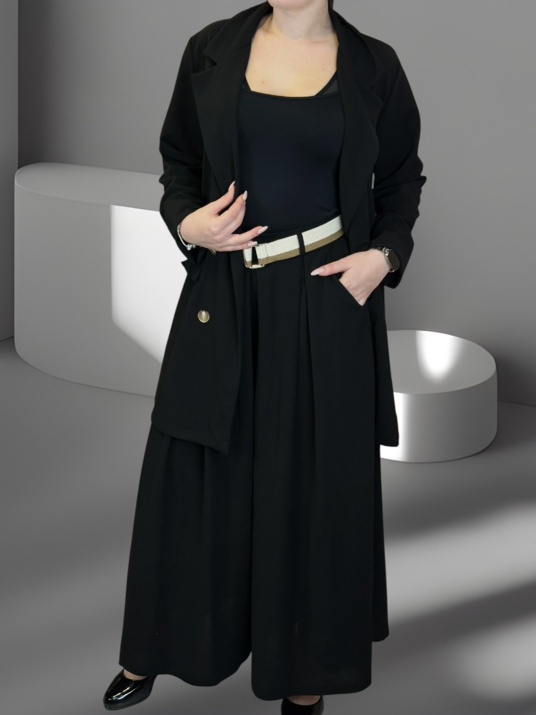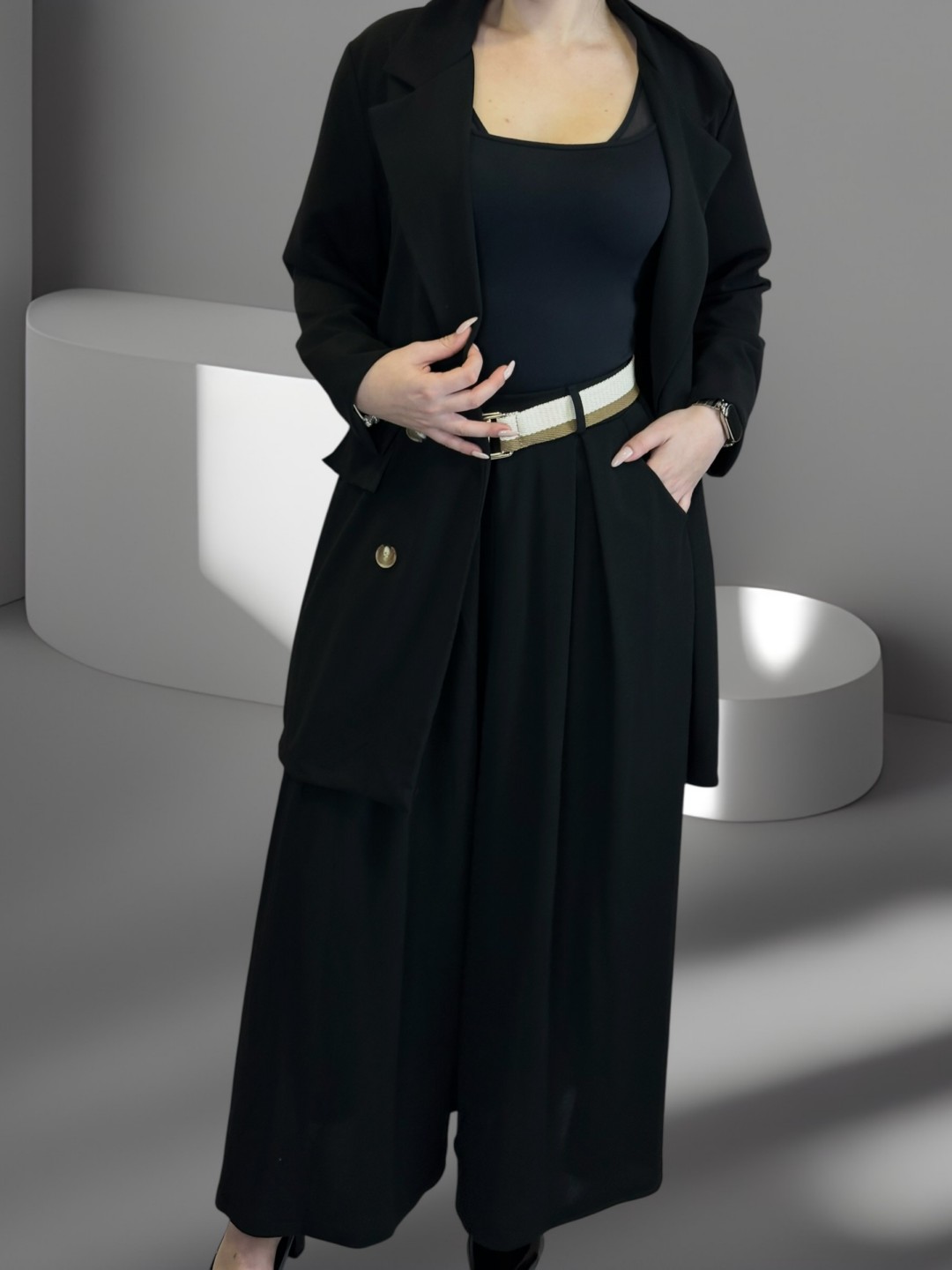 Μοντέρνο κοστούμι με άνετο φαρδύ παντελόνι