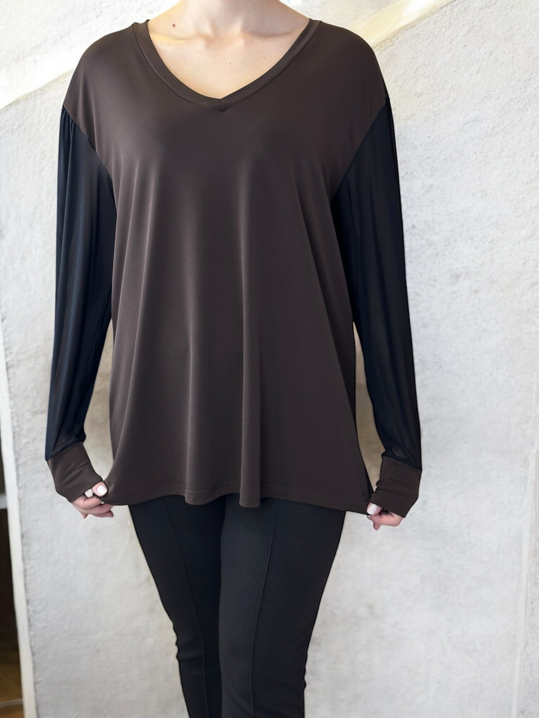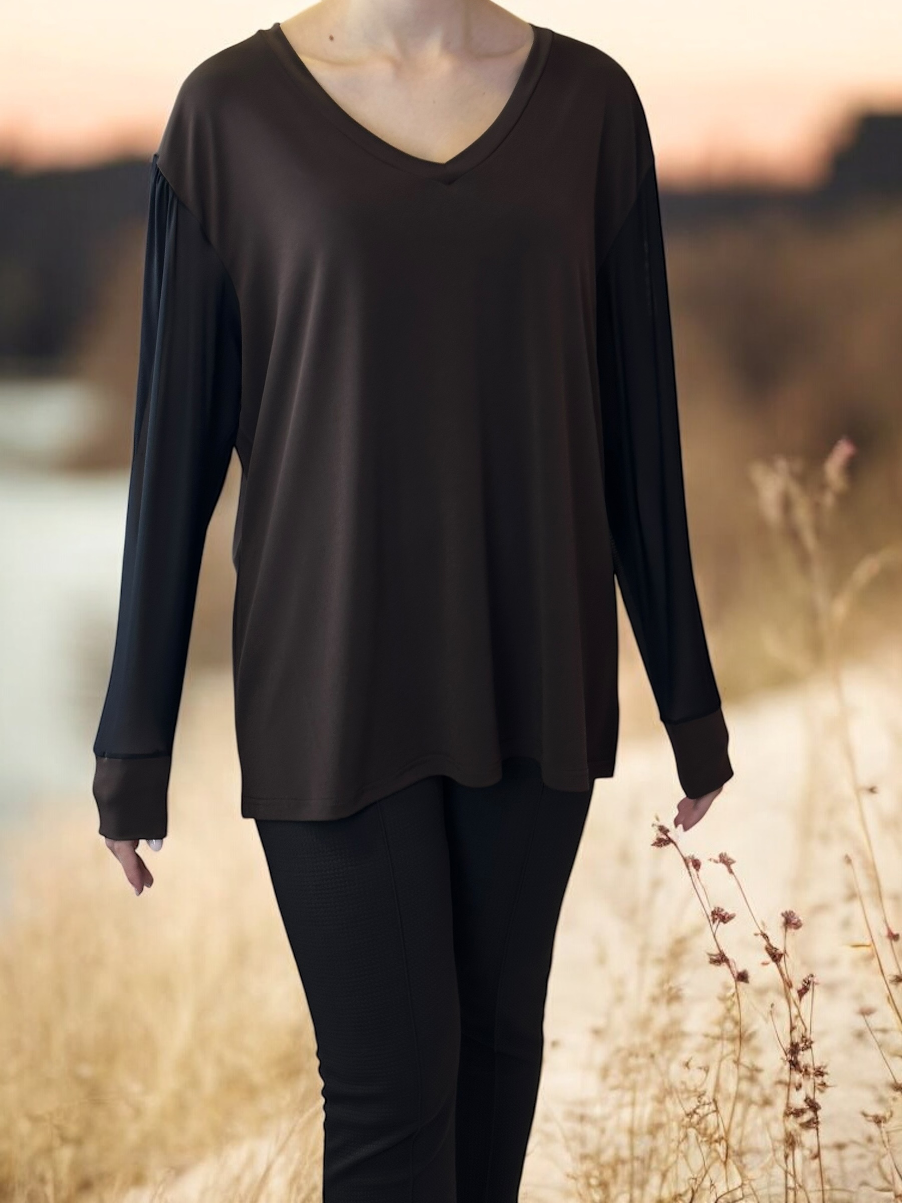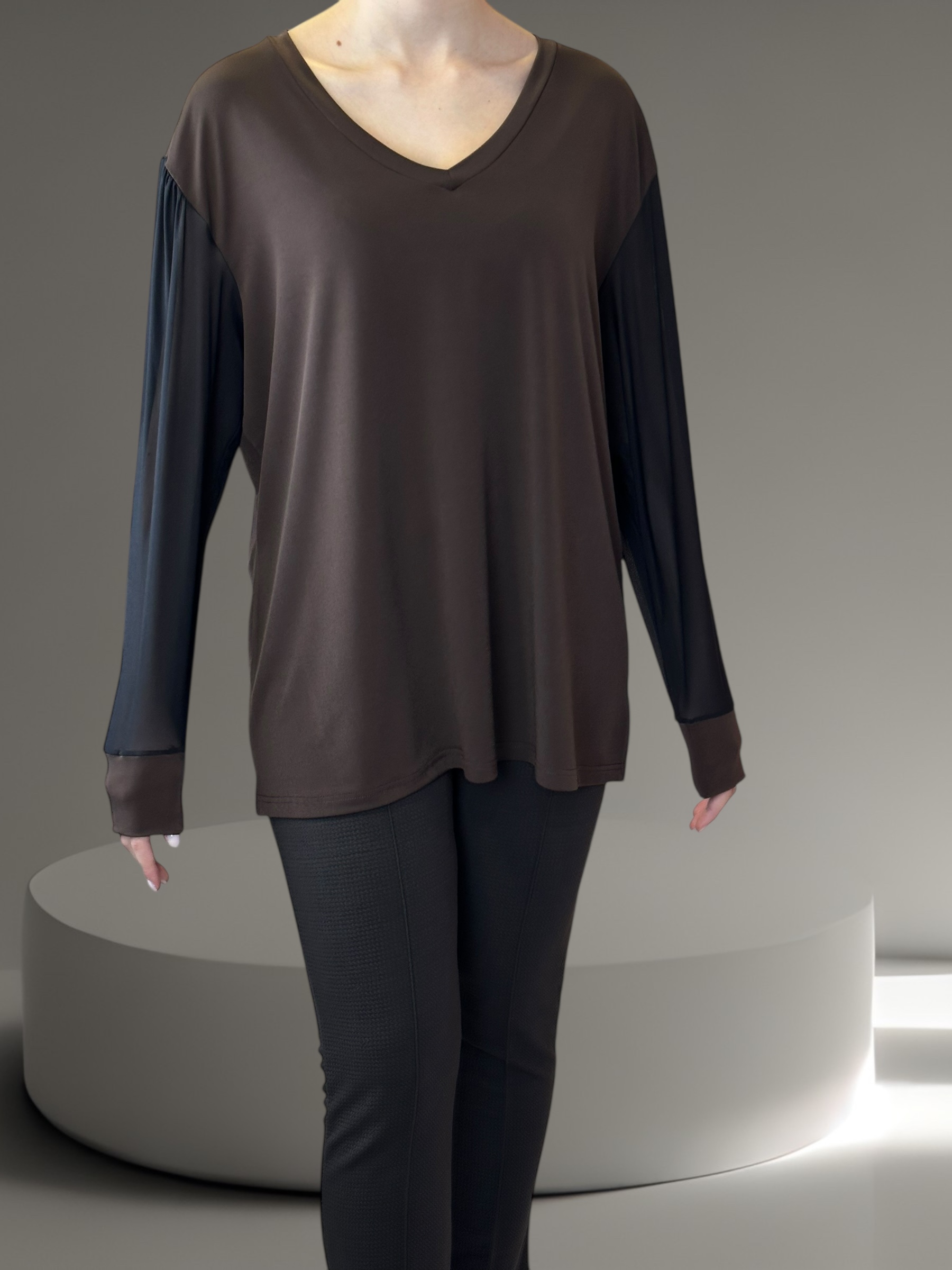 Mπλούζα με V ντεκολτέ και διαφάνεια στα μανίκια