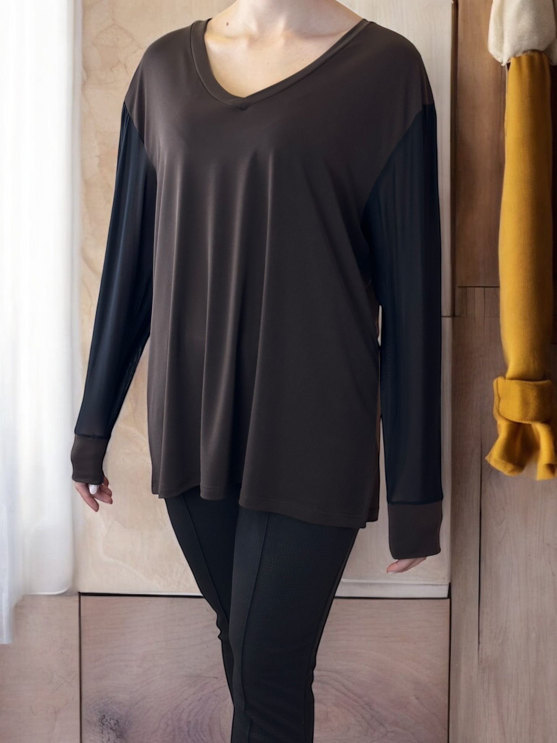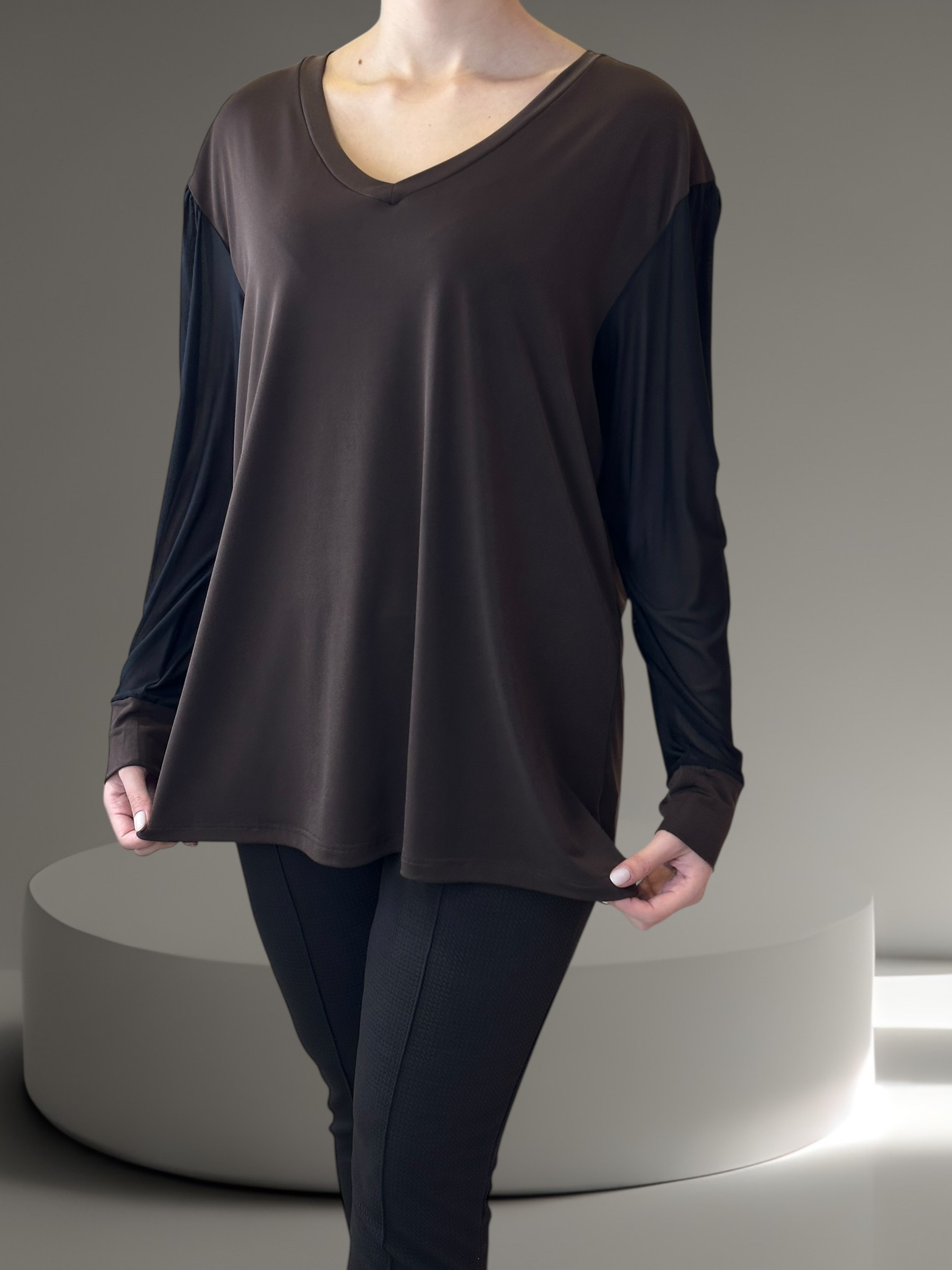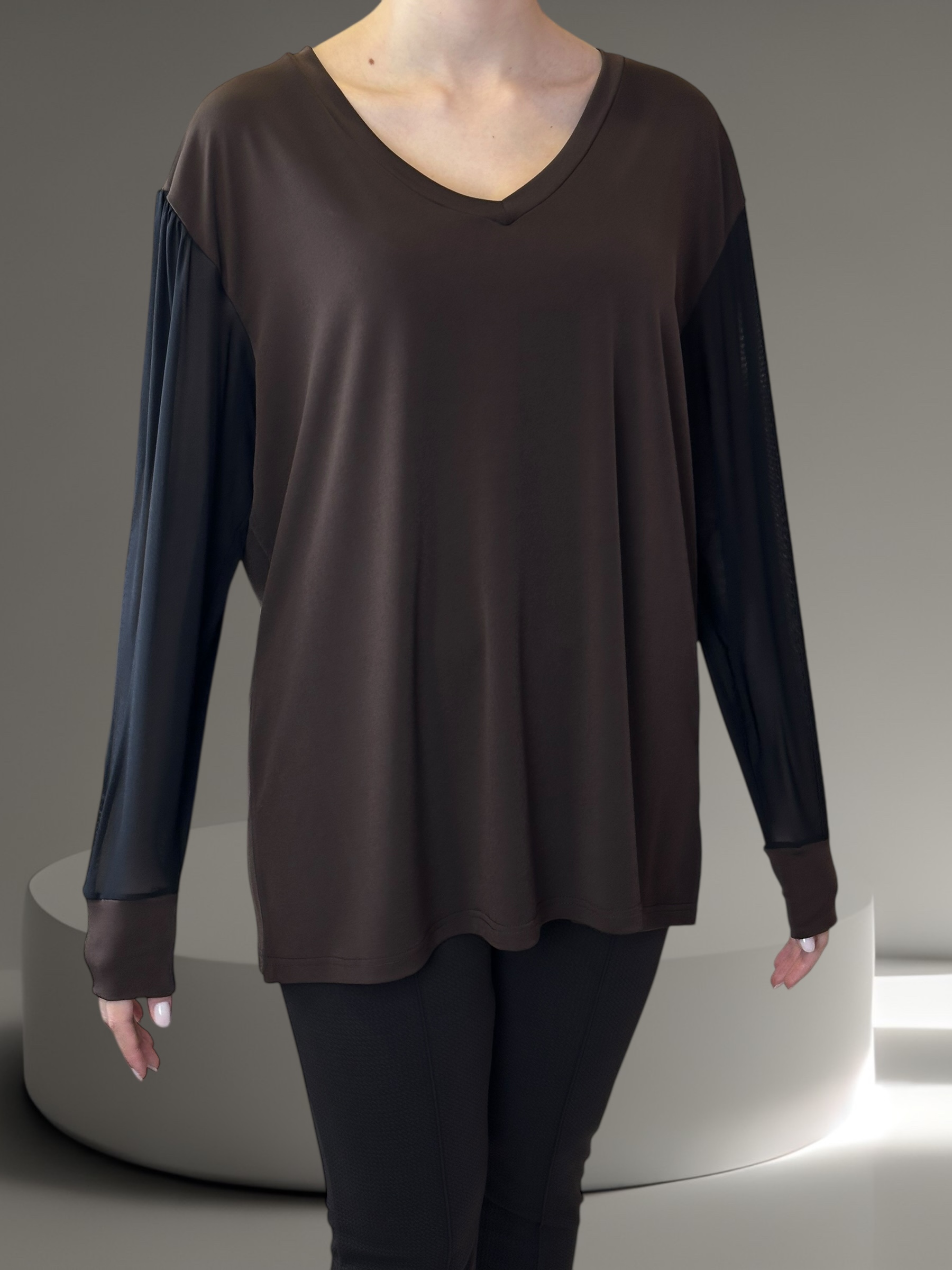 Mπλούζα με V ντεκολτέ και διαφάνεια στα μανίκια