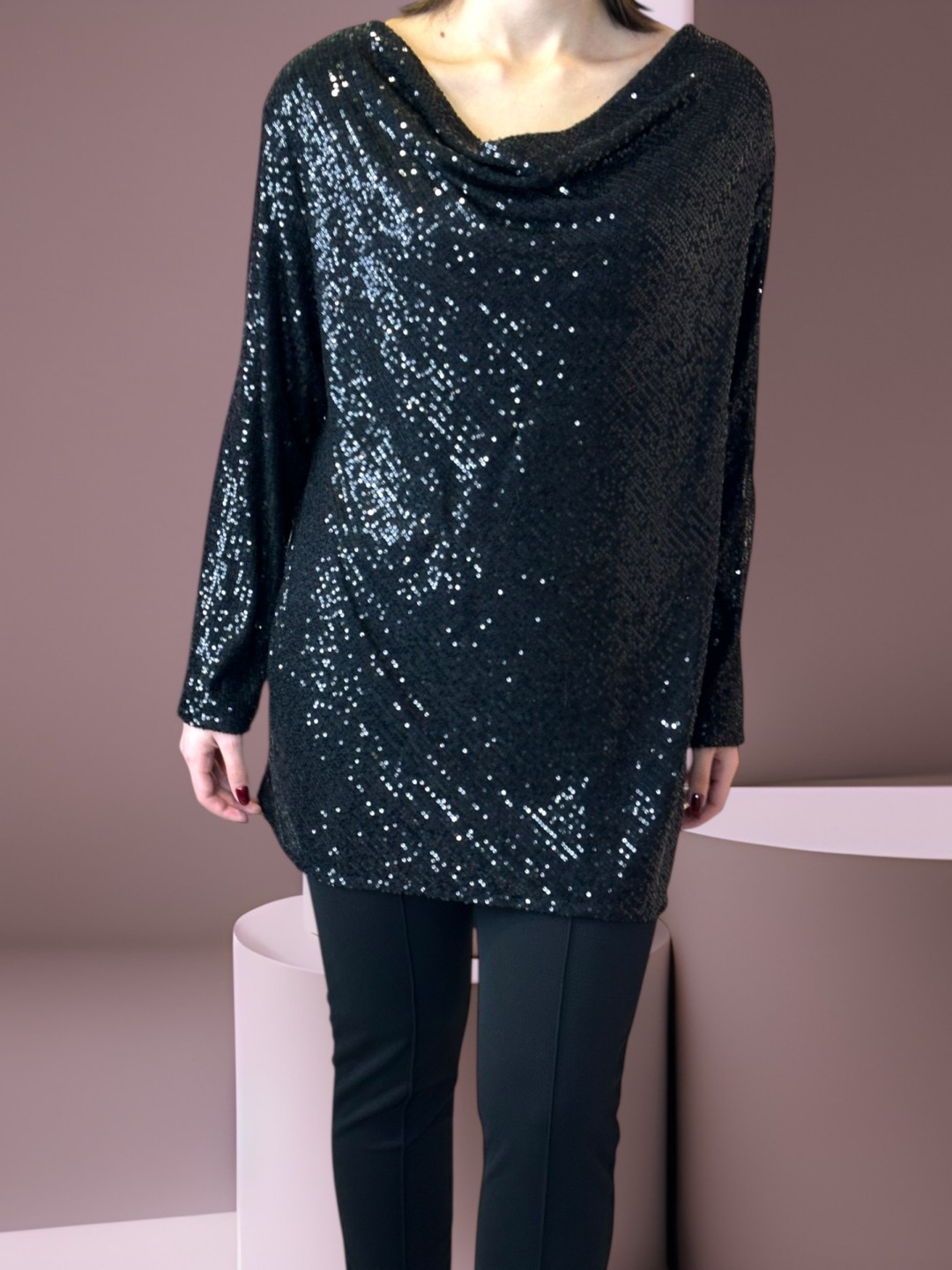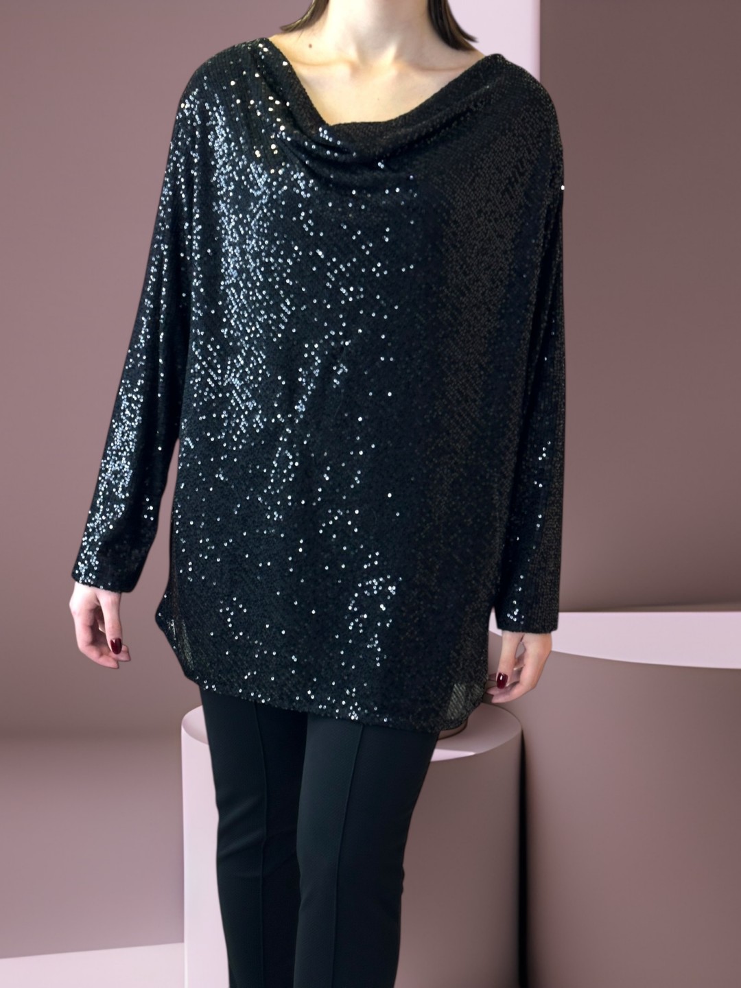 Ντραπέ Μπλούζα με Εντυπωσιακές Παγιέτες