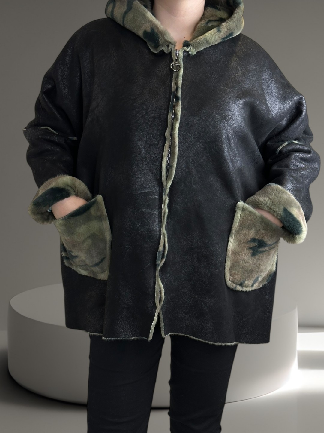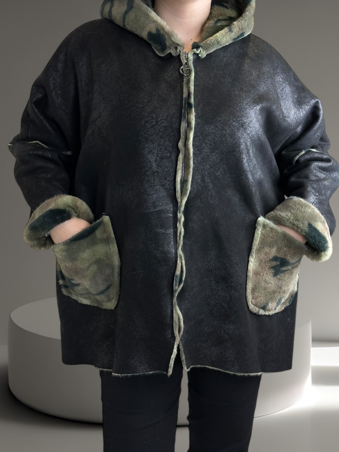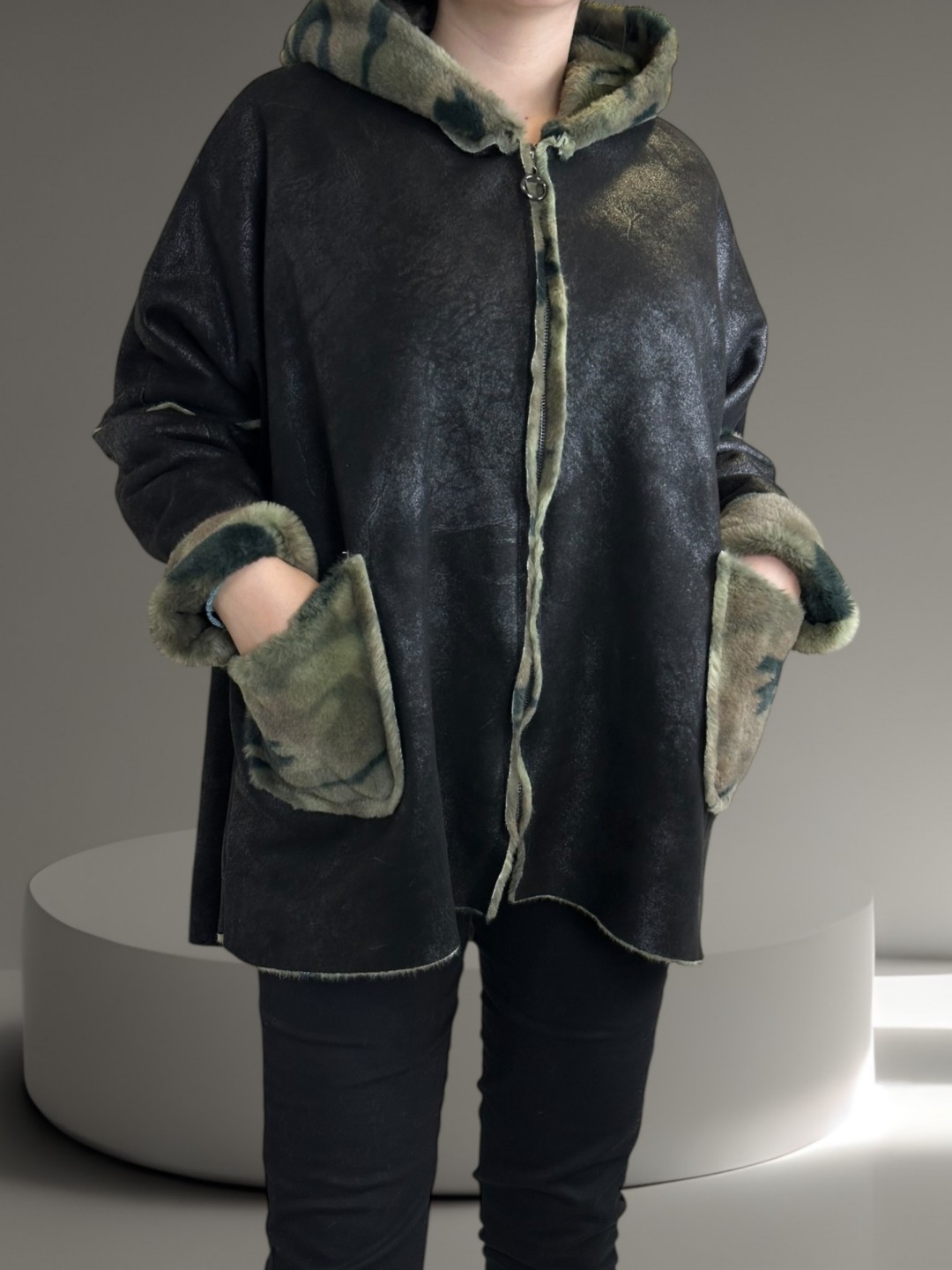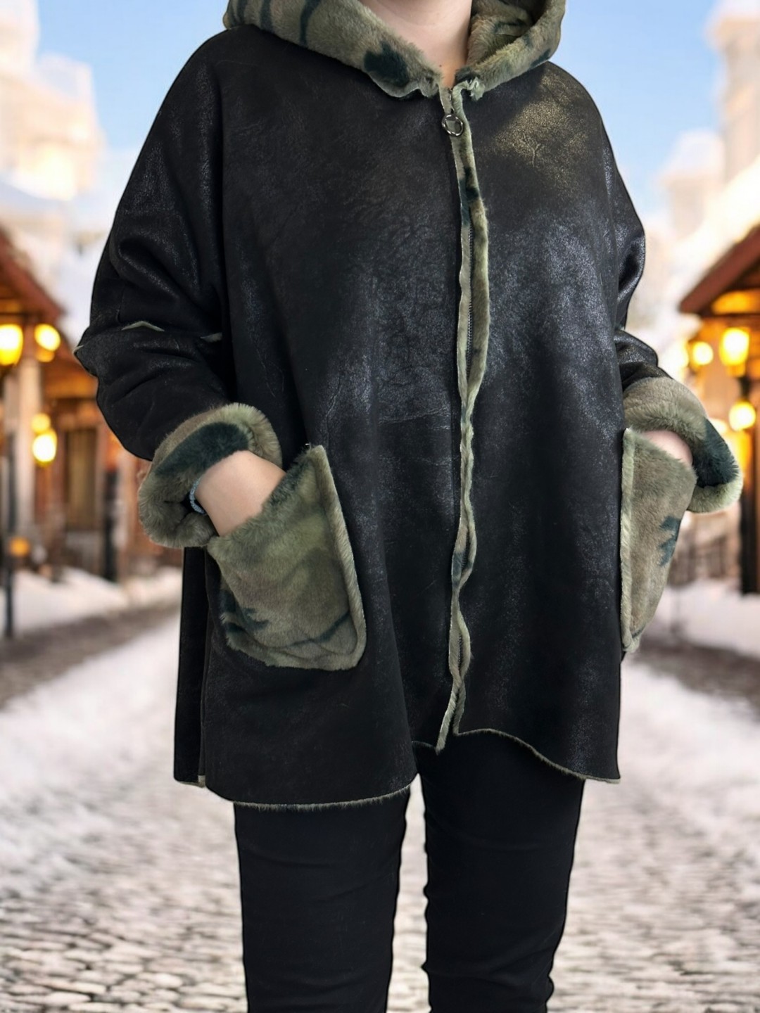 Παλτό-ζακέτα plus size, με εσωτερική επένδυση γούνας για μοναδική ζεστασιά και αίσθηση πολυτέλειας. Διαθέσιμη σε μέγεθος One size. Σύνθεση 100% poliester για μέγιστη αντοχή.
