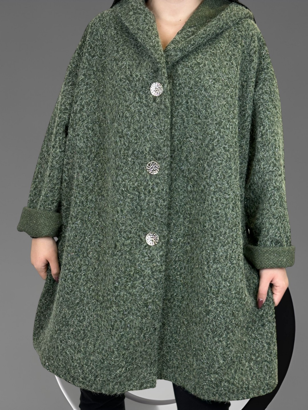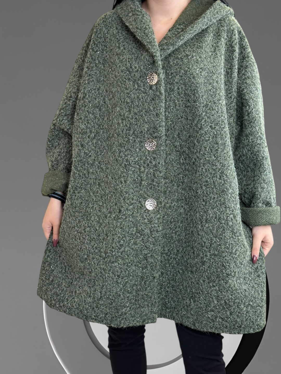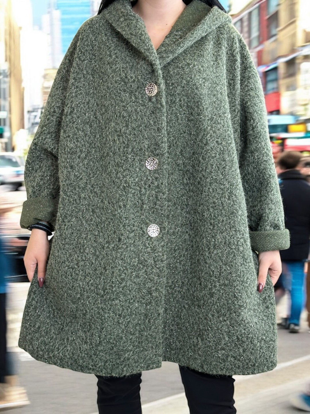 Ανανεώστε την γκαρνταρόμπα σας με αυτή την άνετη και cozy παλτοζακέτα plus size με κουκούλα. Είναι κατασκευασμένη 100% από πολυεστέρα για μέγιστη αντοχή και απαλότητα. Οι one size διαστάσεις ταιριάζουν σε όλες τις σιλουέτες.