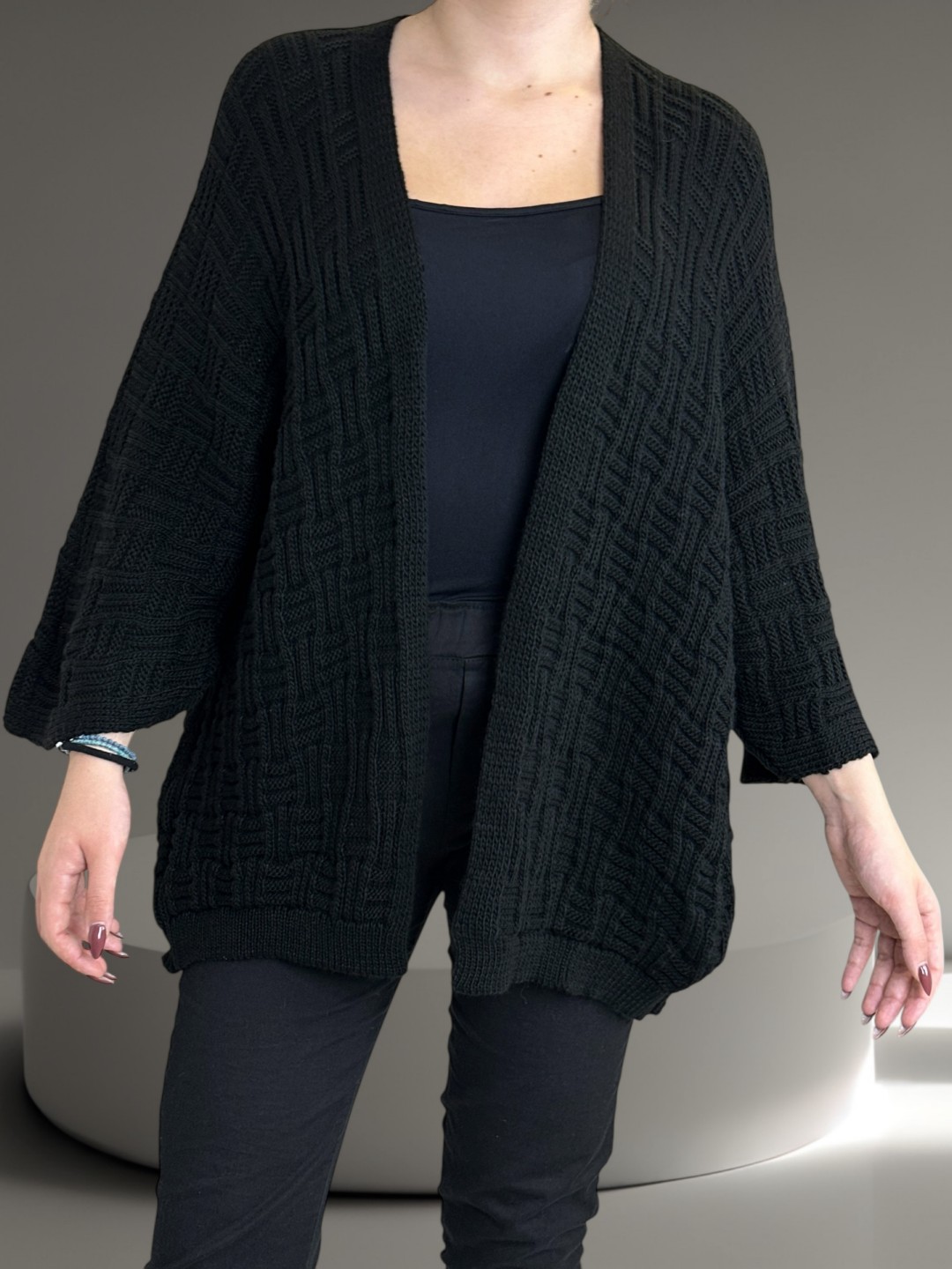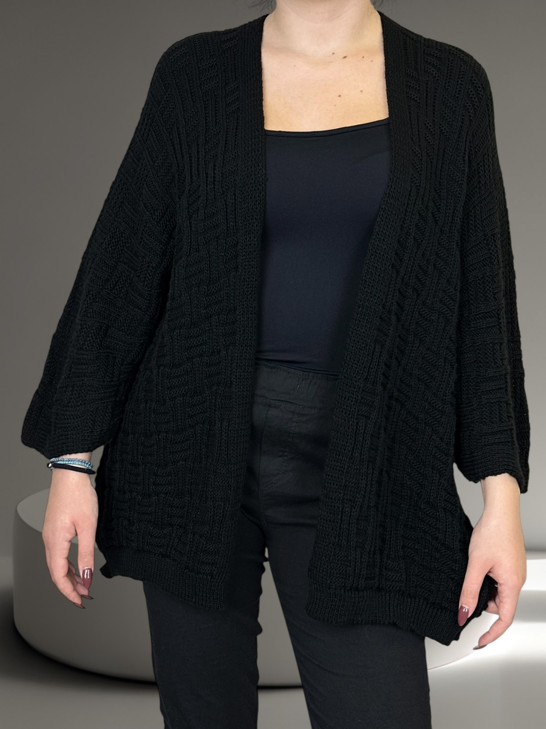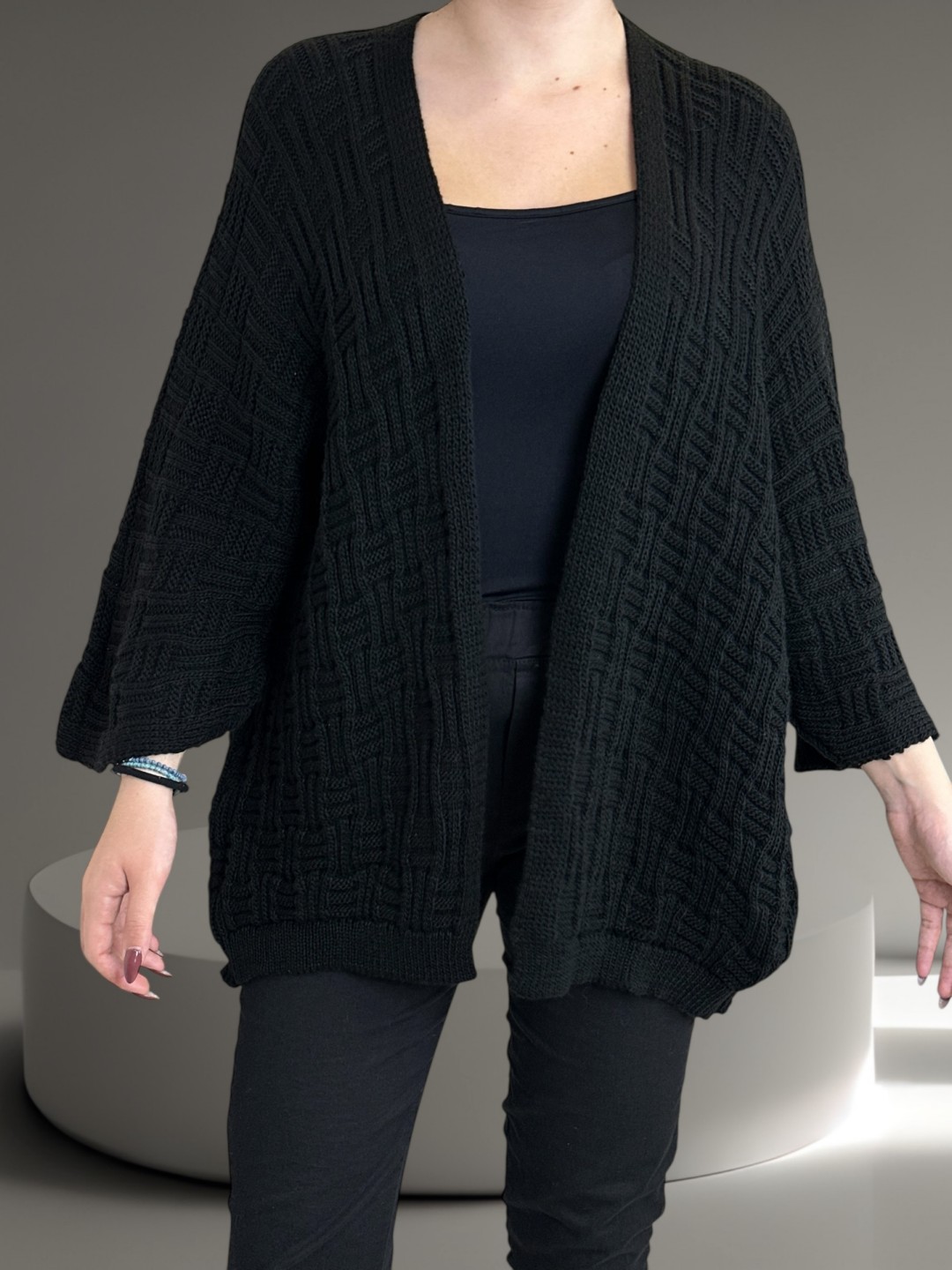 Αυτή η πλεκτή ζακέτα plus size είναι η τέλεια προσθήκη στη ντουλάπα σας. Συνδυάζει στυλ και άνεση, κατασκευασμένη από 85% lana και 15% nylon, προσφέροντας ζεστασιά και αντοχή. Διατίθεται σε one size μέγεθος, κατάλληλο για κάθε σωματότυπο!