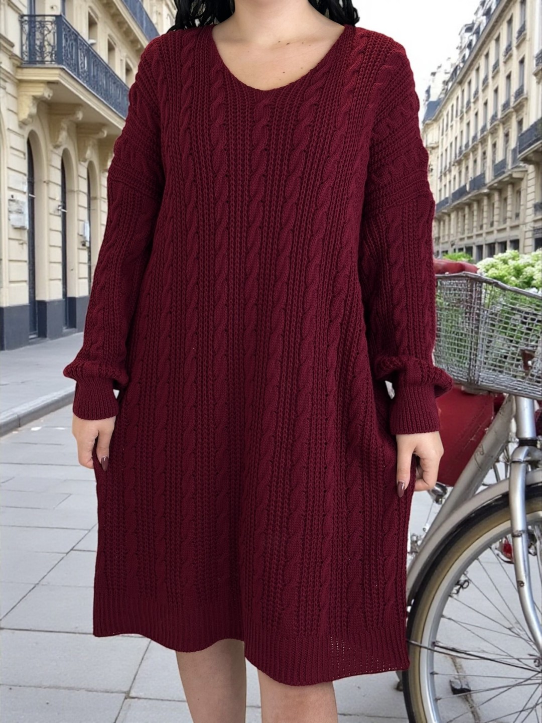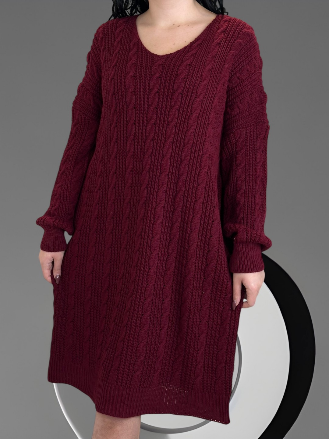 Ζεστανθείτε τον χειμώνα με αυτό το πλεκτό φόρεμα plus size! Με υπέροχη πλέξη σε όλο το μήκος και μαλακό λυχνάρι, είναι κάτι περισσότερο από ευκολοφόρετο. Φτιαγμένο από 30% viscoza, 5% lana και 65% acrilico, προσφέρει απαλότητα και άνεση καθ′ όλη τη διάρκεια της ημέρας. Διαθέσιμο σε one size, αγκαλιάζει όμορφα όλους τους τύπους σωμάτων!