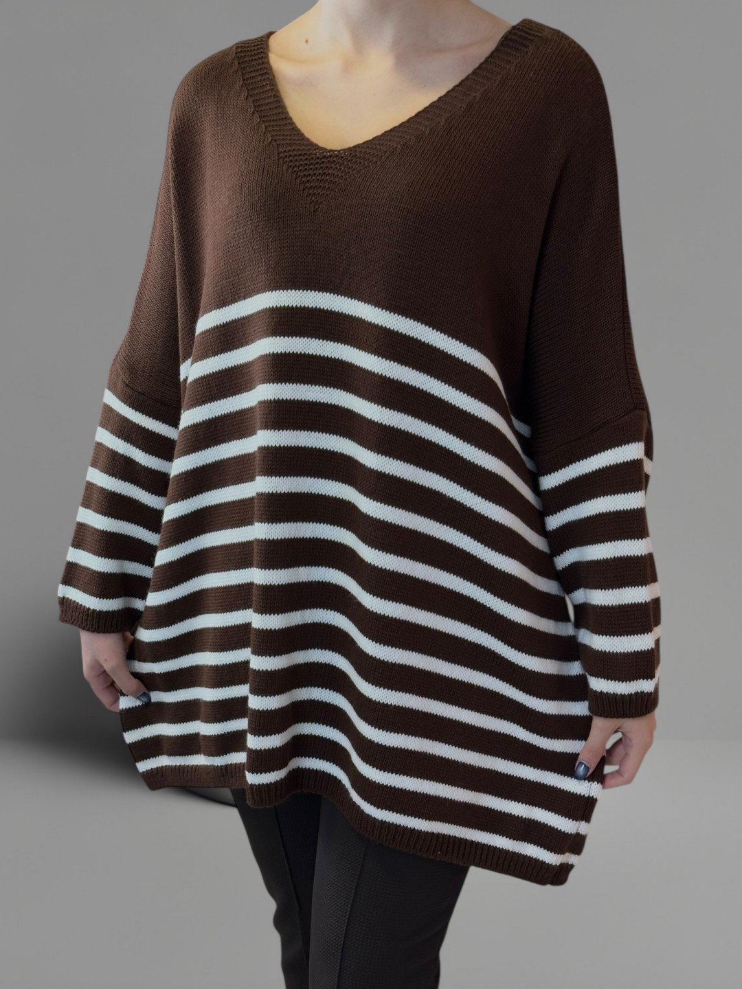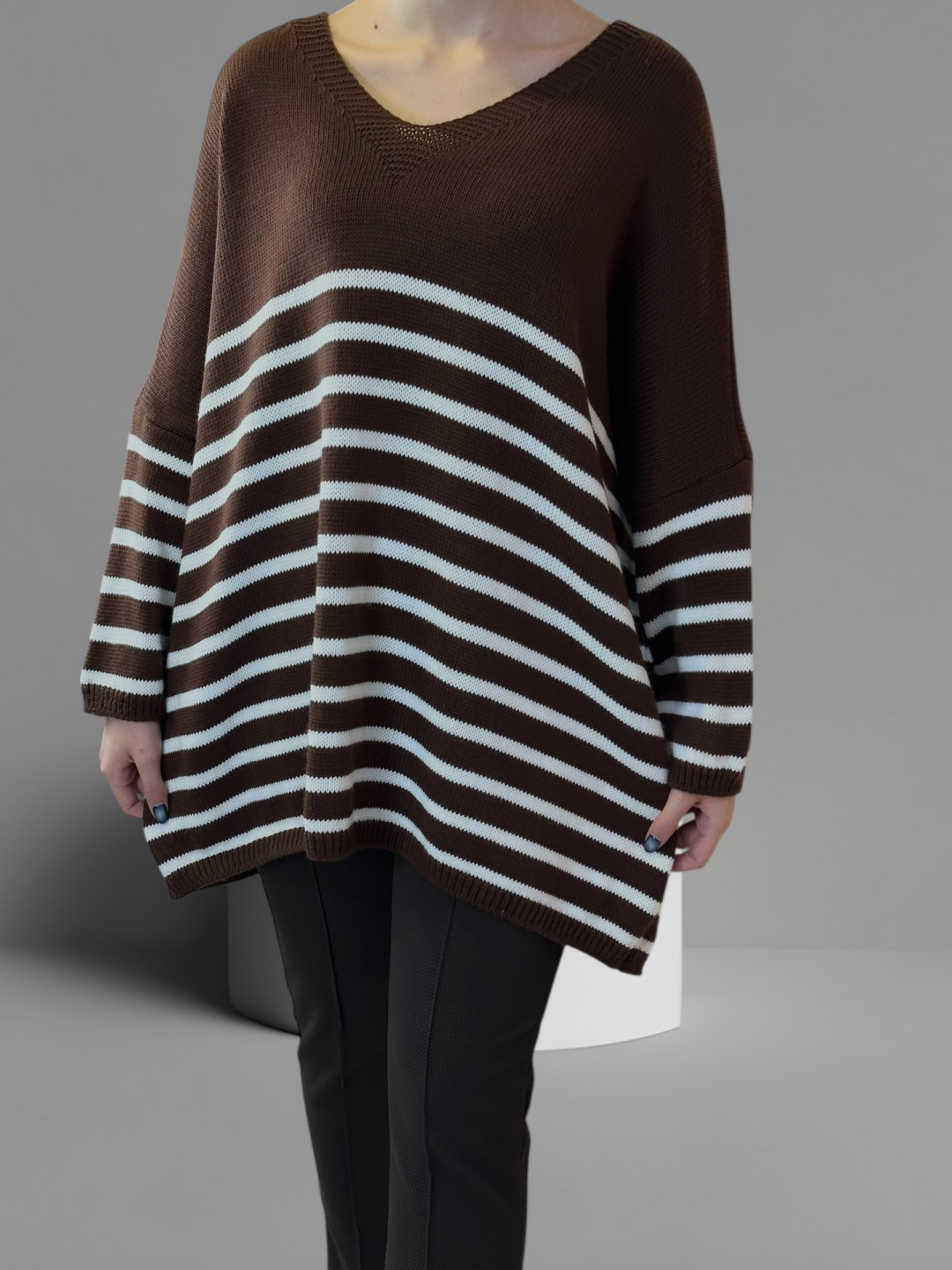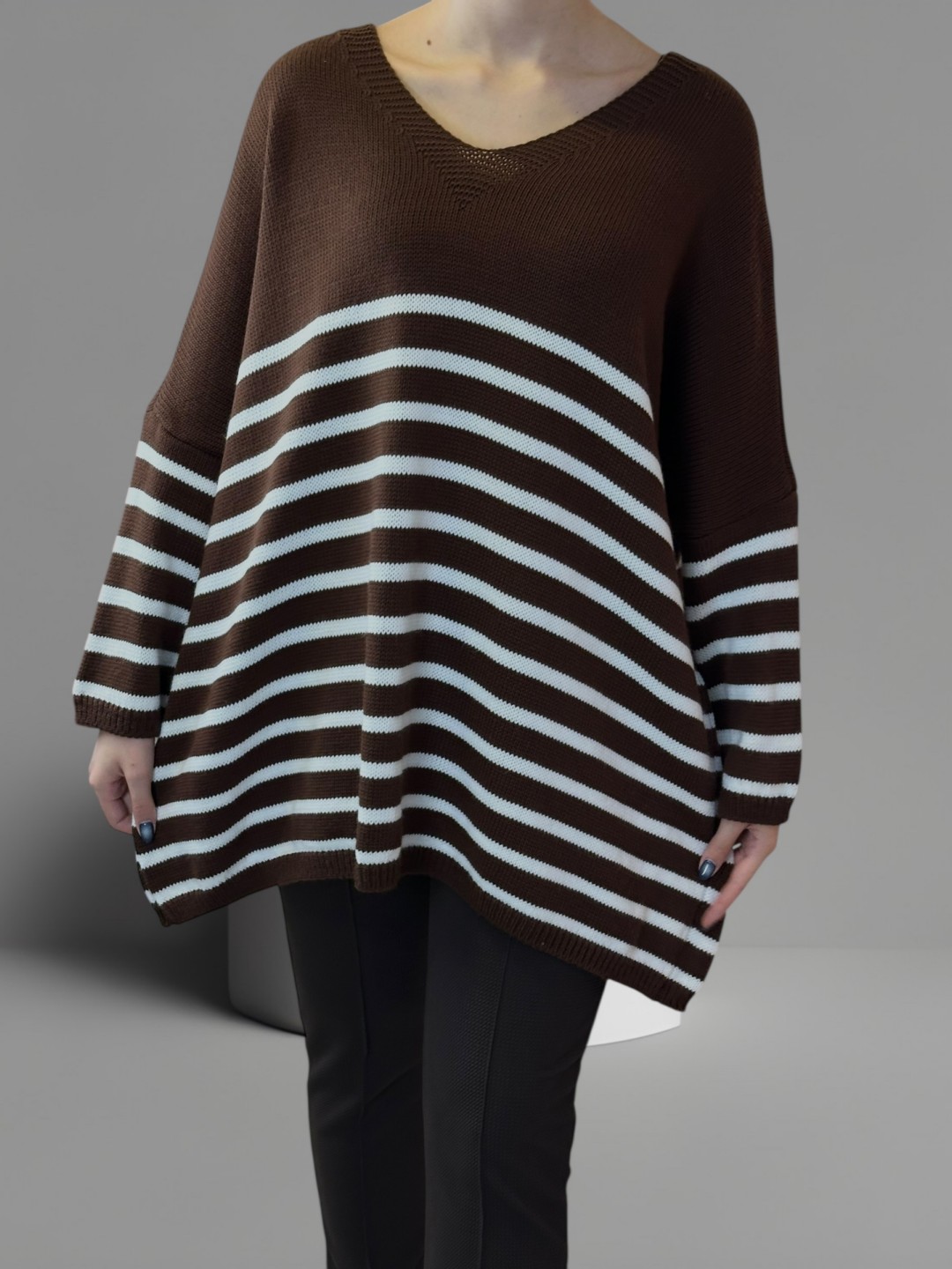 Πλεκτό πουλόβερ με ρίγες και chic διάθεση