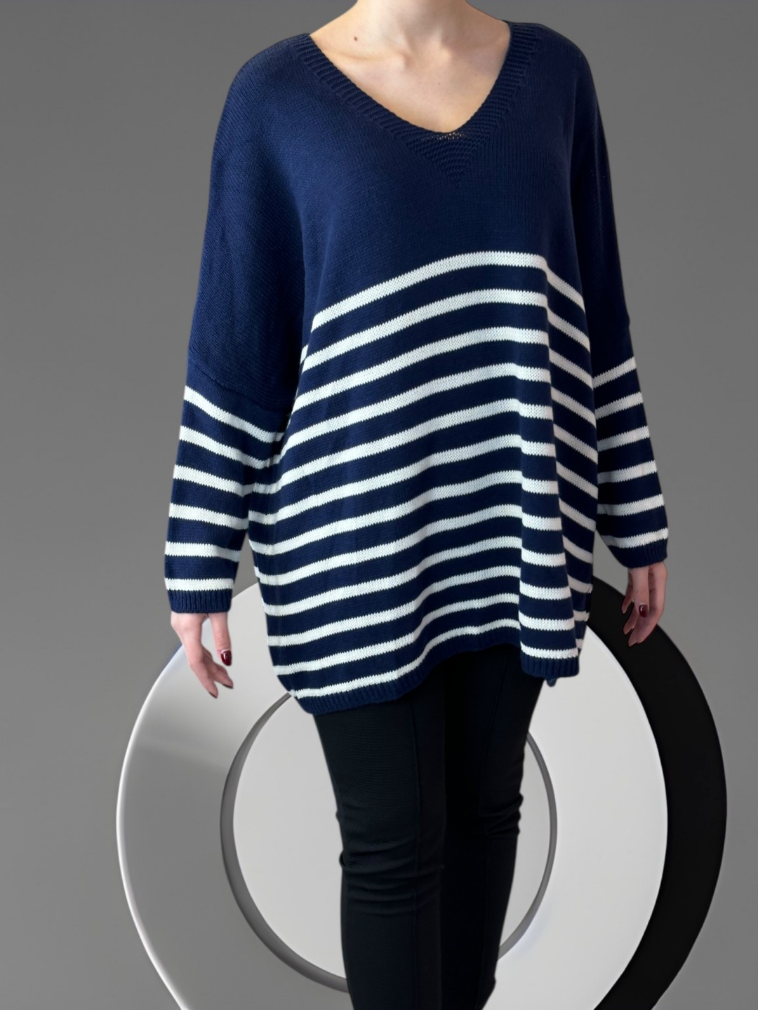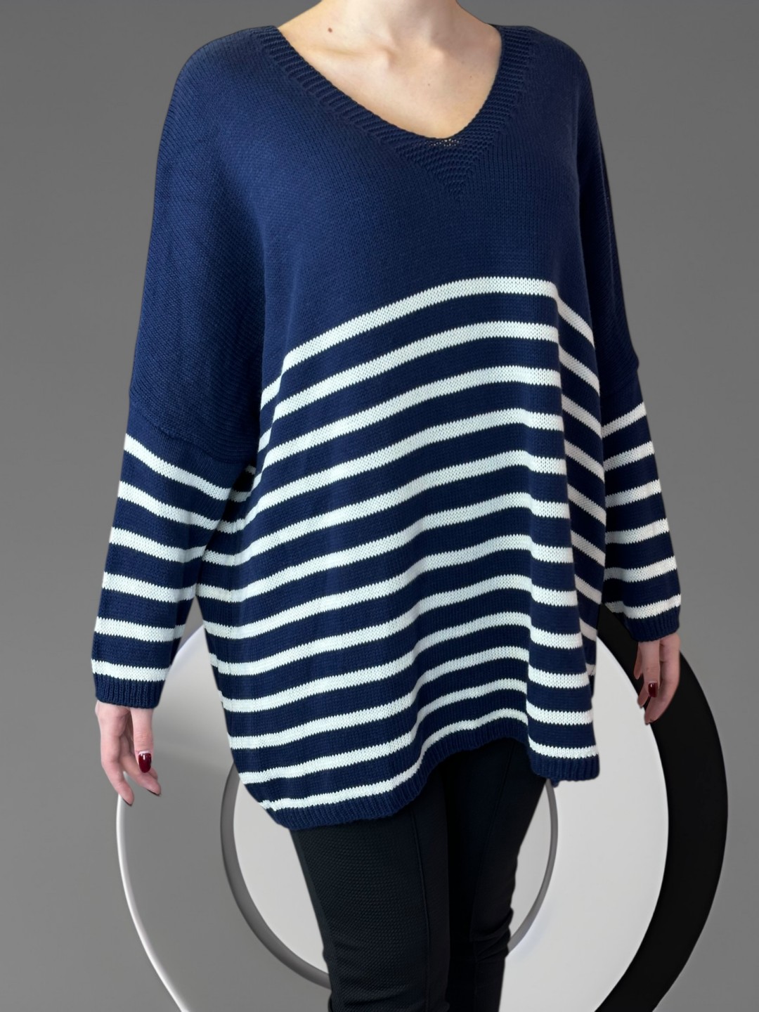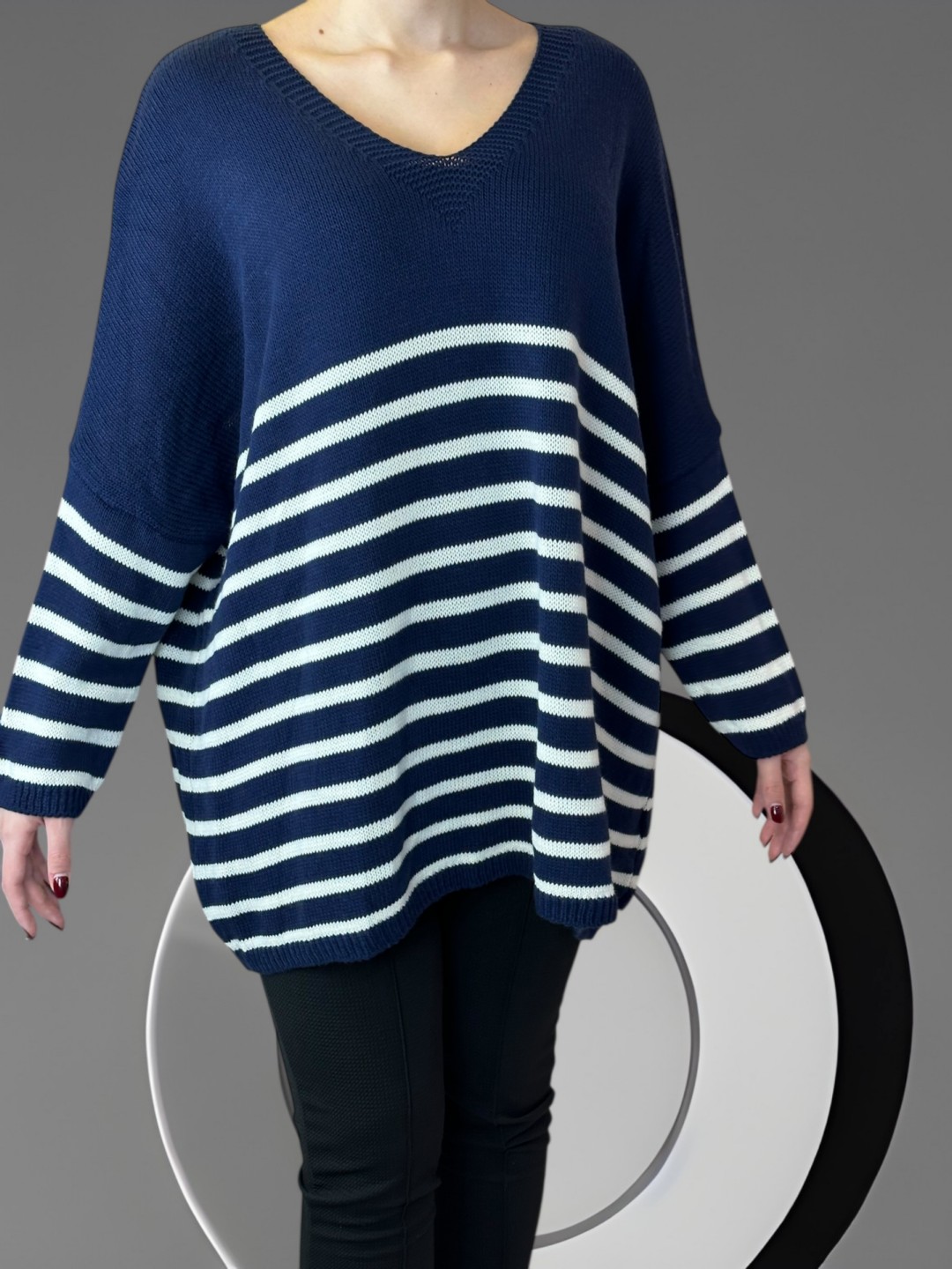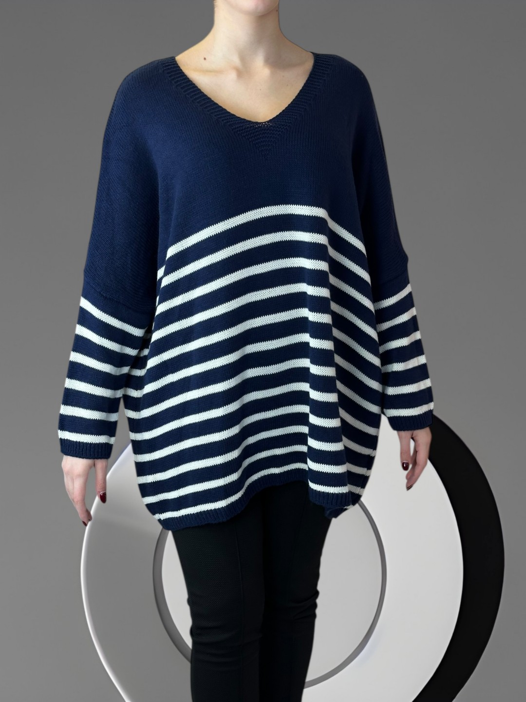 Πλεκτό πουλόβερ με ρίγες και chic διάθεση