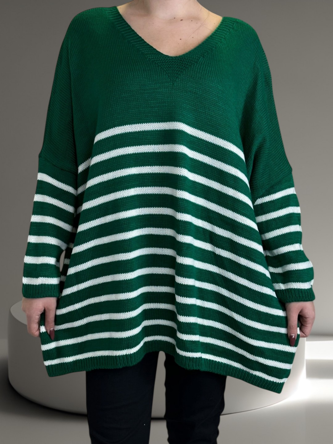Πλεκτό πουλόβερ με ρίγες και chic διάθεση