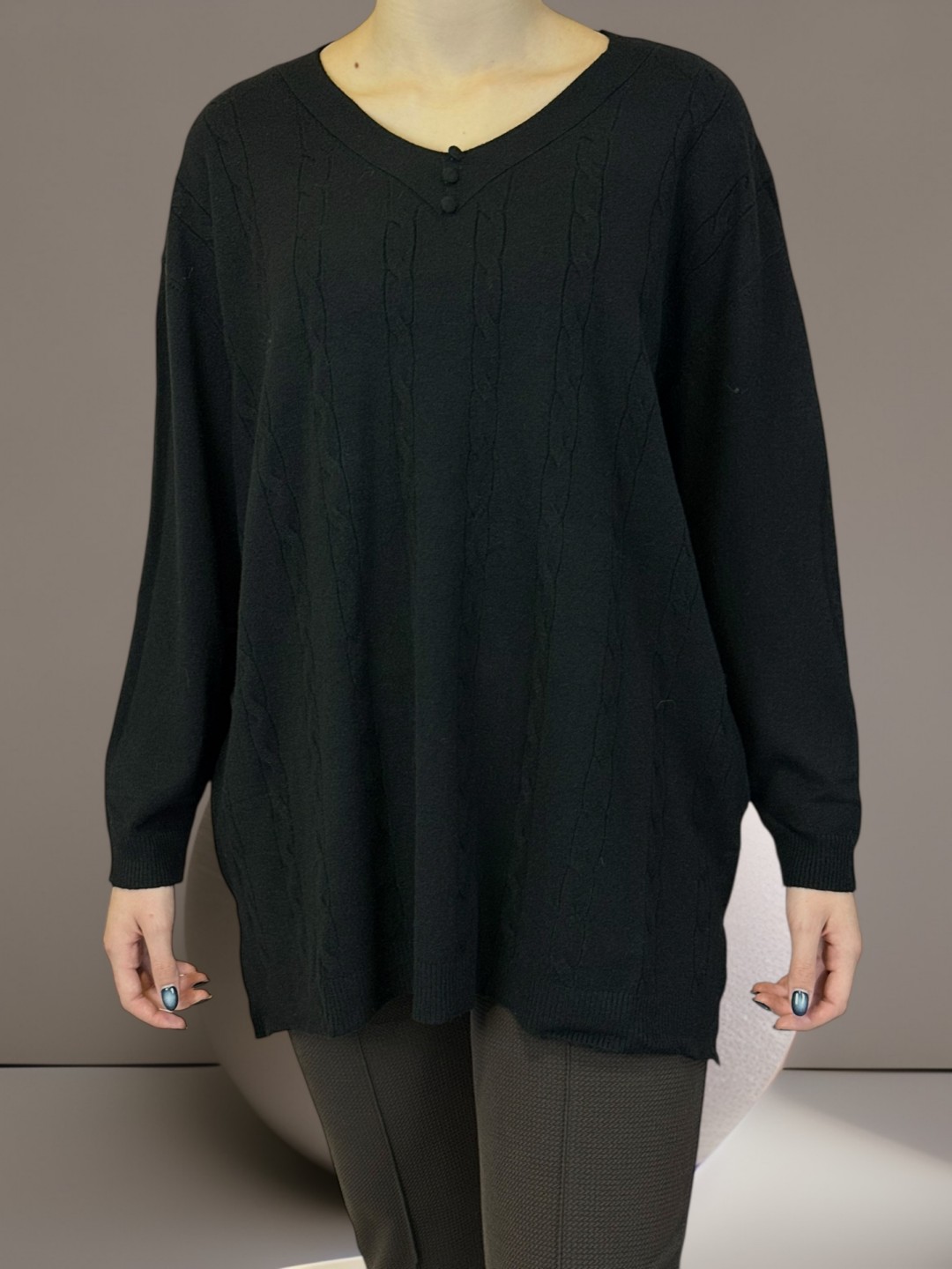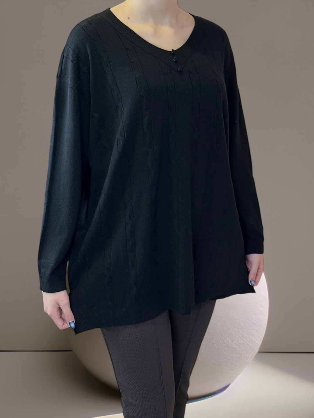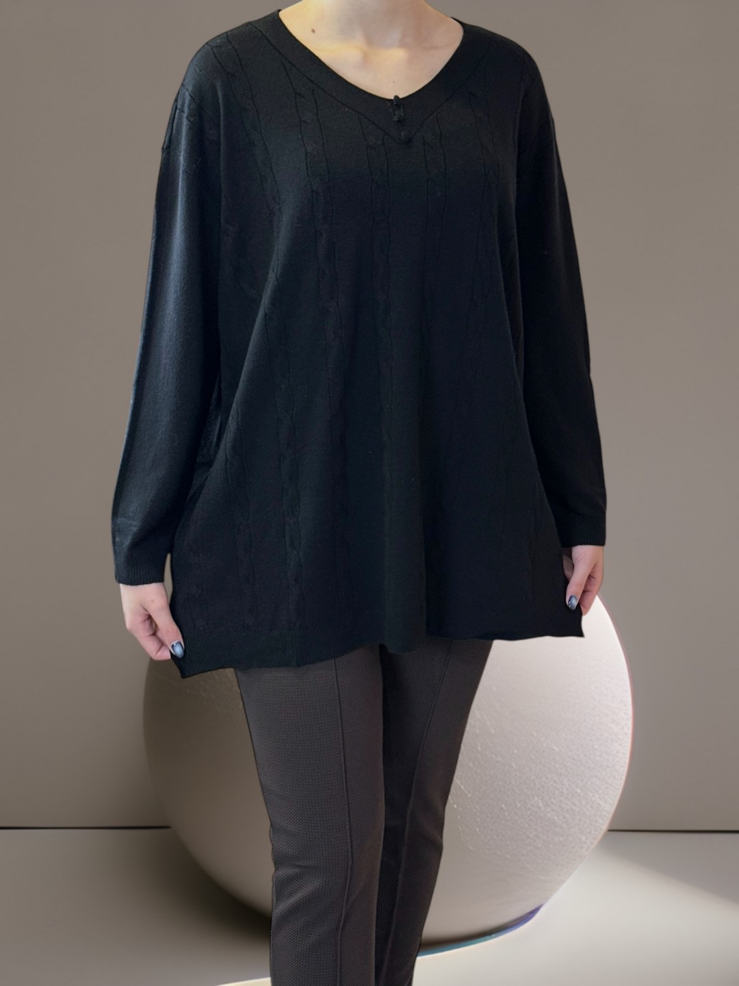Ανανεώστε την γκαρνταρόμπα σας με το γυναικείο πλεκτό top plus size. Με κομψό μοτίβο πλέξης και τριπλή λεπτομέρεια κουμπιών, είναι το ιδανικό κομμάτι για πολυτελείς εμφανίσεις. Σύνθεση από 40% πολυαμίδιο, 20% modal, 20% viscoza, 10% elastan και 10% πολυεστέρα, εξασφαλίζει άνεση και μακροχρόνια αντοχή. Διατίθεται σε one size για να ταιριάζει τέλεια σε κάθε σωματότυπο.