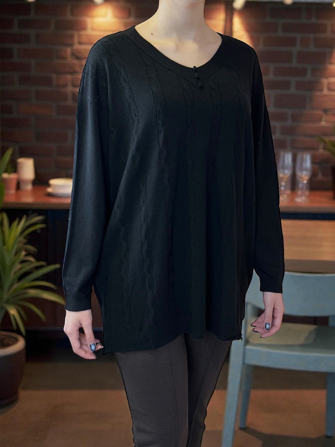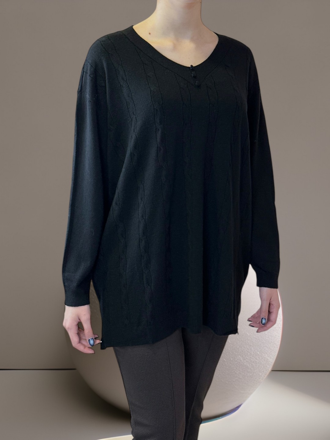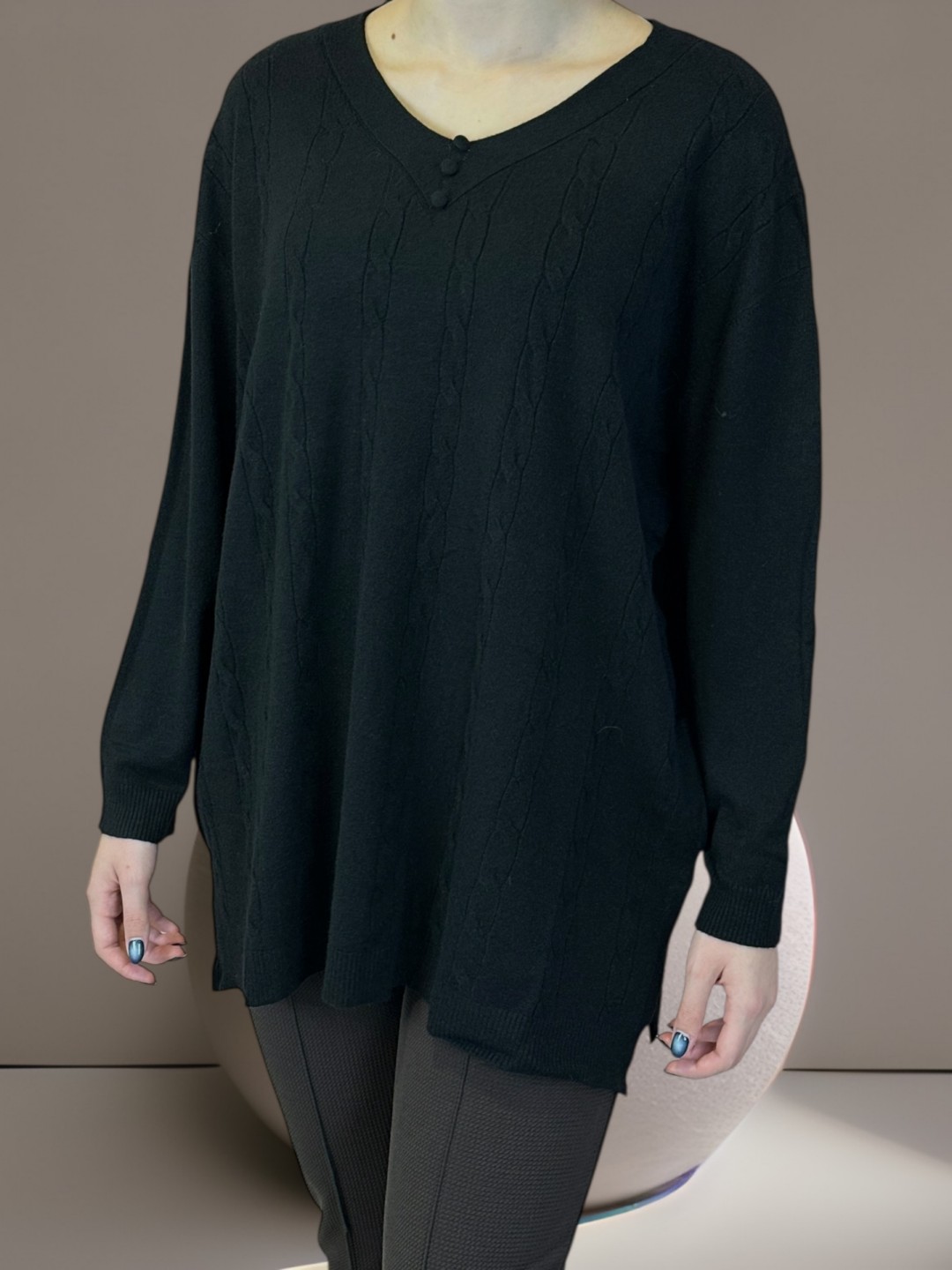 Ανανεώστε την γκαρνταρόμπα σας με το γυναικείο πλεκτό top plus size. Με κομψό μοτίβο πλέξης και τριπλή λεπτομέρεια κουμπιών, είναι το ιδανικό κομμάτι για πολυτελείς εμφανίσεις. Σύνθεση από 40% πολυαμίδιο, 20% modal, 20% viscoza, 10% elastan και 10% πολυεστέρα, εξασφαλίζει άνεση και μακροχρόνια αντοχή. Διατίθεται σε one size για να ταιριάζει τέλεια σε κάθε σωματότυπο.