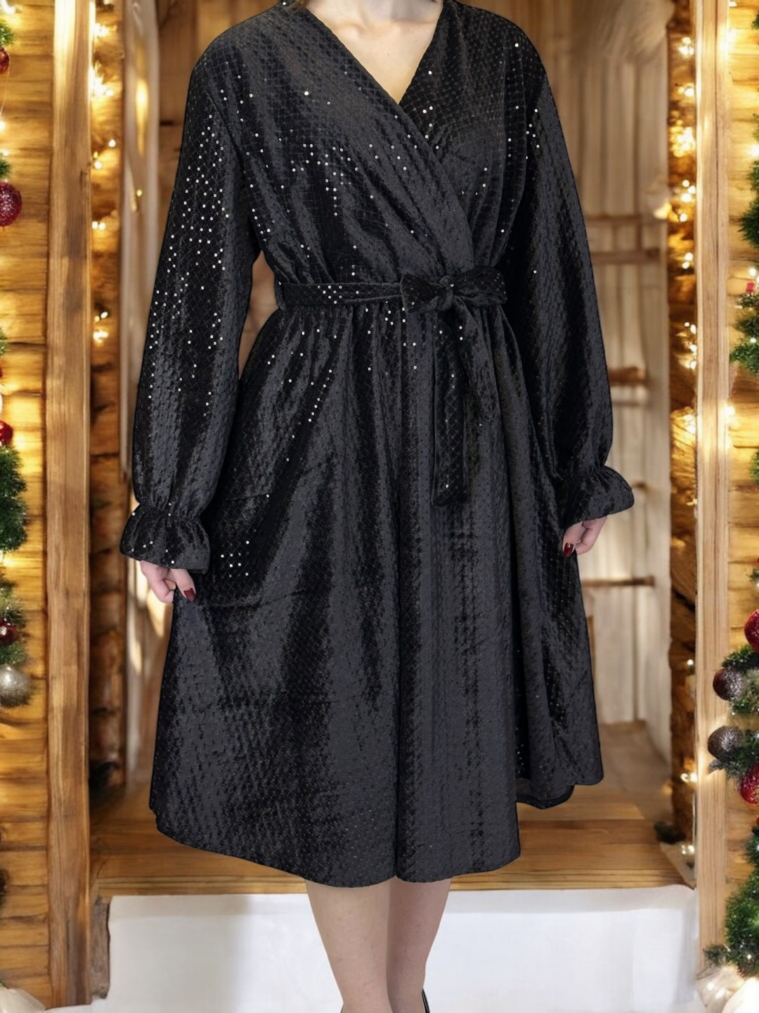 Αυτό το κρουαζέ φόρεμα Plus Size με λαμπερές ραμμένες παγιέτες είναι κατάλληλο για όλες τις περιστάσεις. Θα αναδείξει τη γυναικεία σας ομορφιά και θα σας χαρίσει μια λαμπερή εμφάνιση όποια και αν είναι η ευκαιρία. Διατίθεται σε One size για να ταιριάζει ιδανικά σε όλες τις γυναίκες Plus Size.