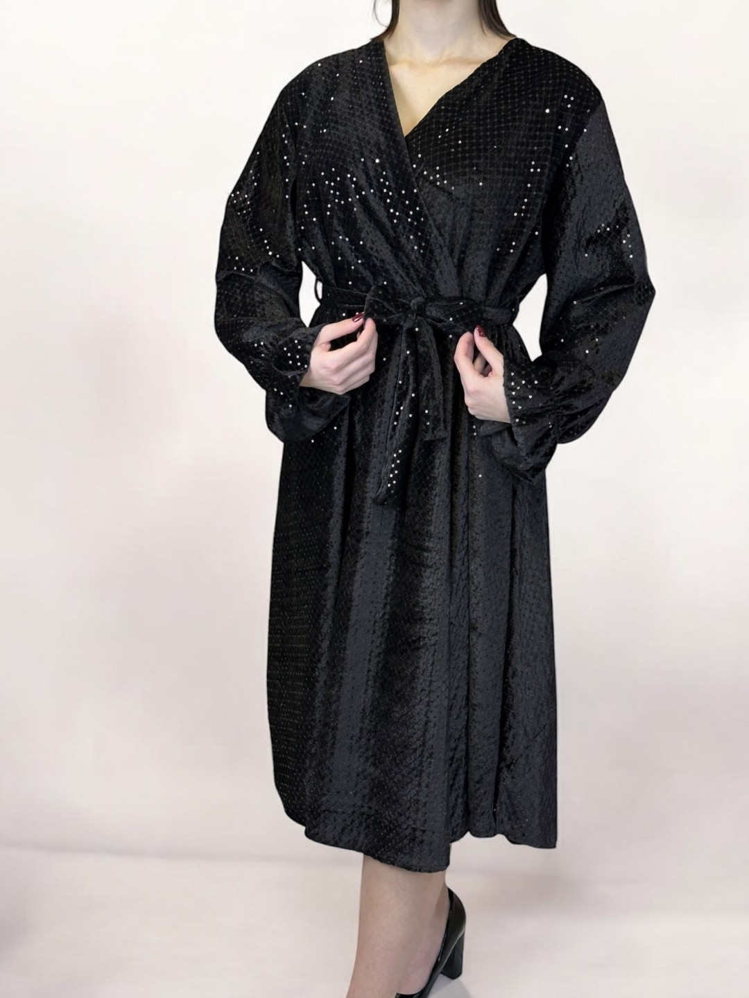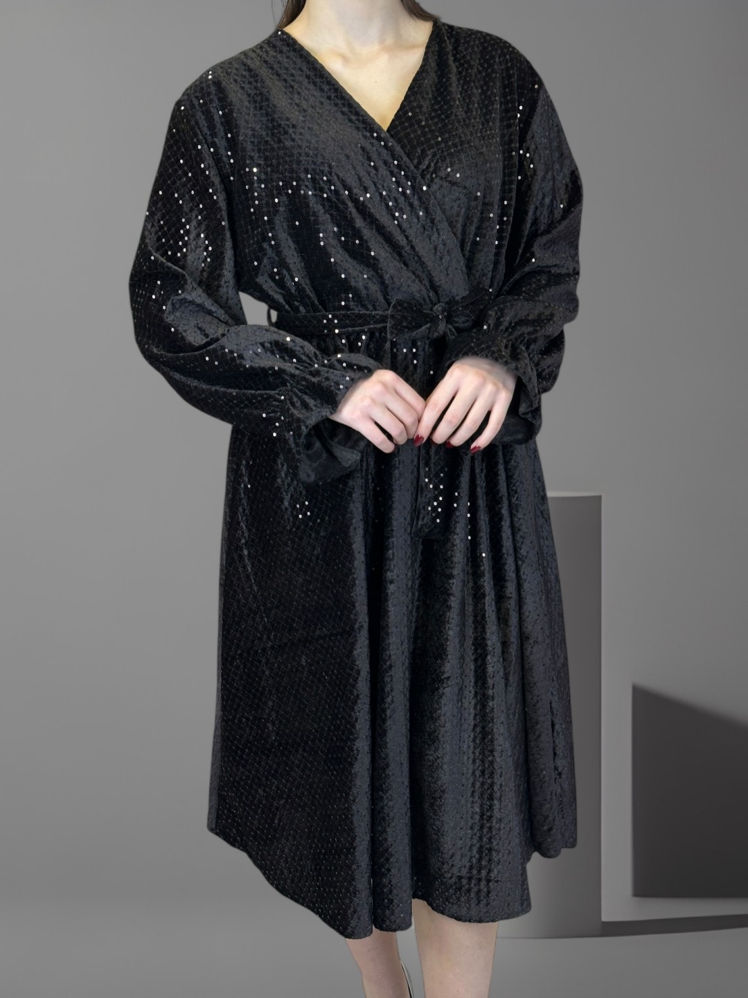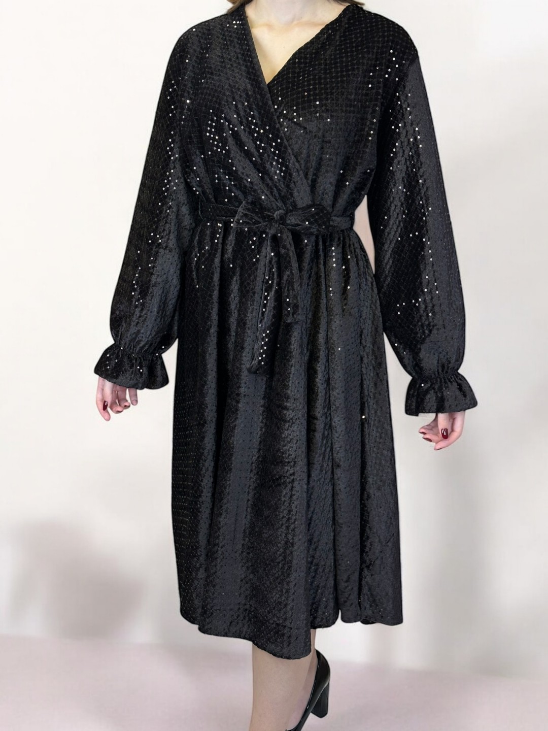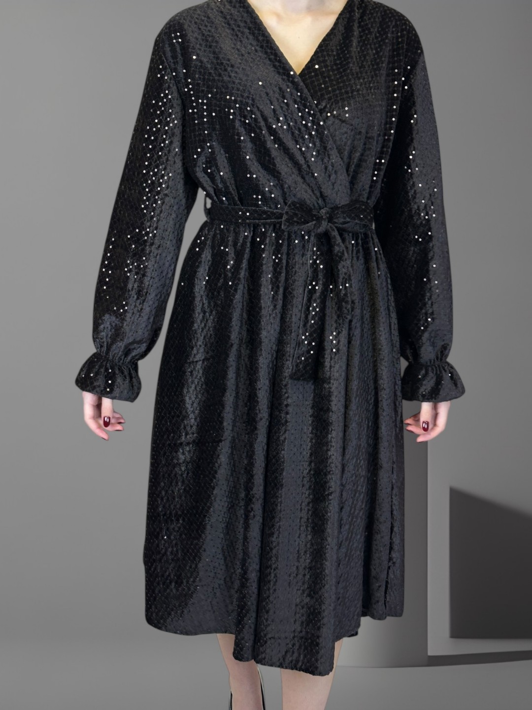 Plus Size Κρουαζέ Φόρεμα με Πολυτελείς Ραμμένες Παγιέτες