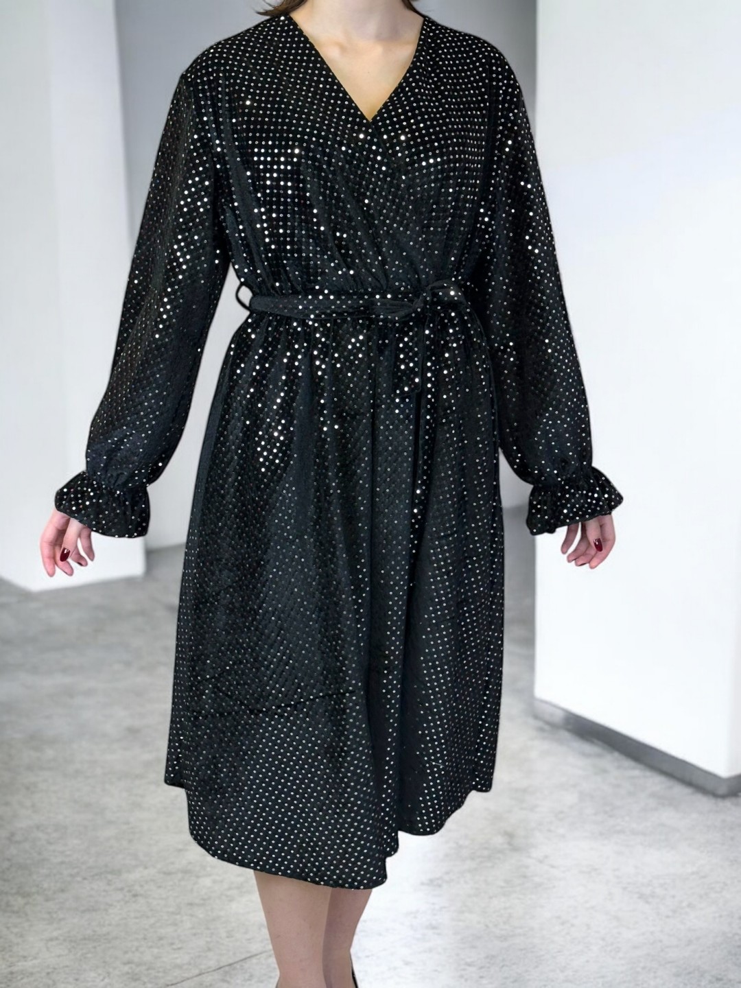 Κάντε λάμψη την εμφάνισή σας με αυτό το πολυτελές plus size κρουαζέ φόρεμα, κεντημένο με λαμπερές παγιέτες. Σχεδιασμένο να τονίζει τις καμπύλες σας και να προσφέρει άνεση, διαθέσιμο σε One size. Μαγνητίστε όλα τα βλέμματα σε κάθε περίσταση!