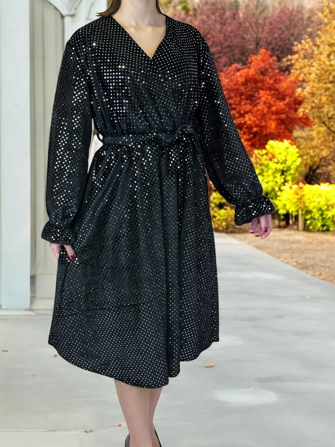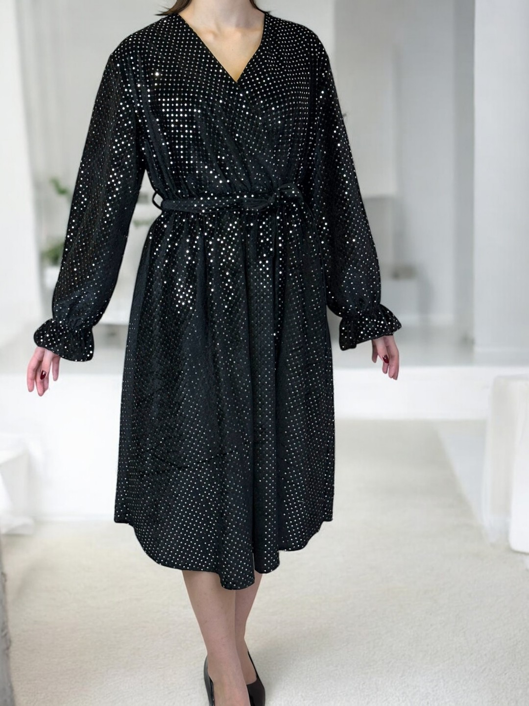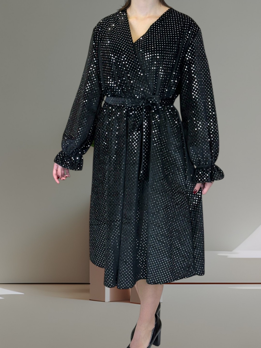Plus Size Κρουαζέ Φόρεμα με Πολυτελείς Ραμμένες Παγιέτες