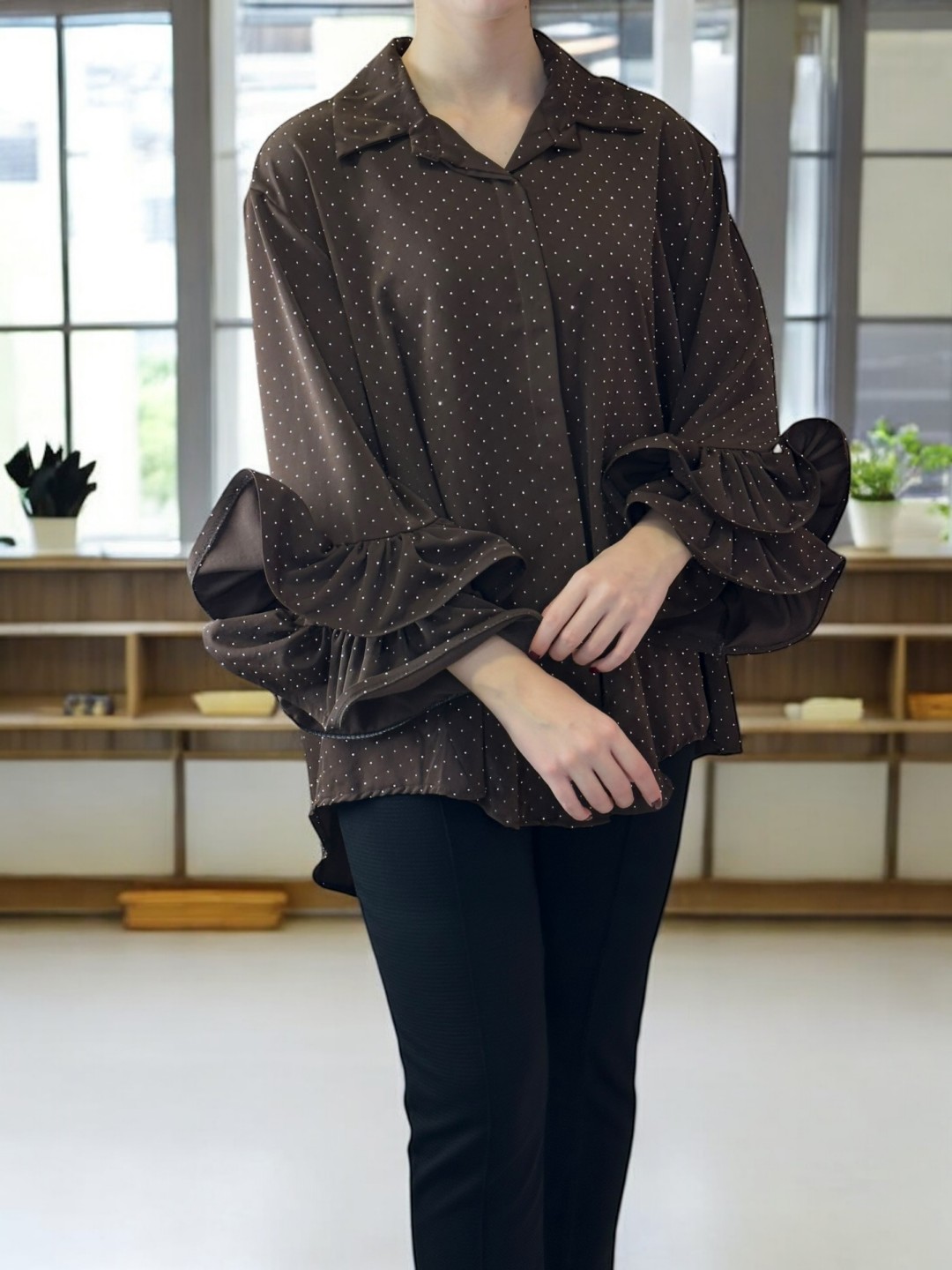 Πουκάμισο με Εντυπωσιακά Μανίκια και Στρας