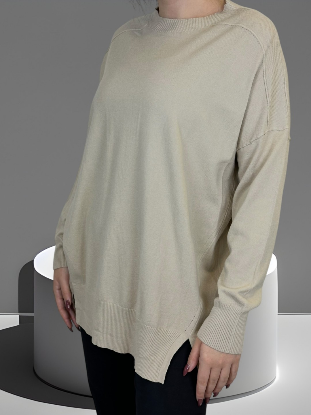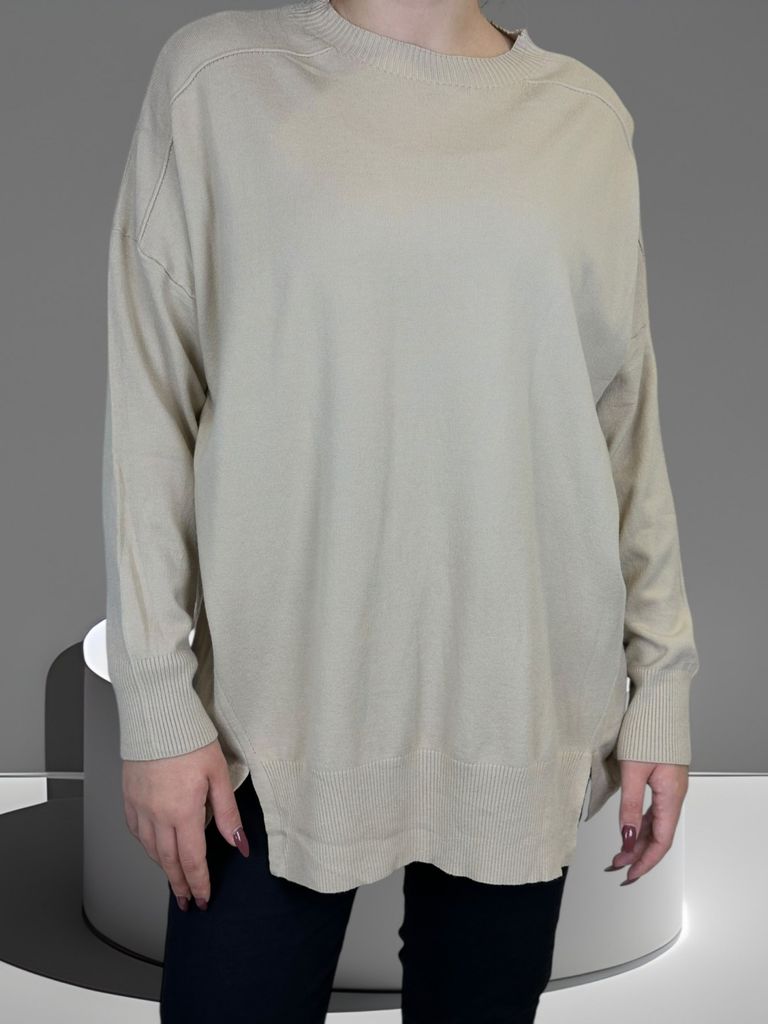 Αυτό το plus size πουλόβερ θα γίνει το αγαπημένο σας! Η απαλή υφή του θα σας βάλει σε άνεση και η κλασική γραμμή του σας επιτρέπει να το φοράτε καθημερινά. Το μέγεθος One Size εγγυάται ότι θα ταιριάξει σε όλες!