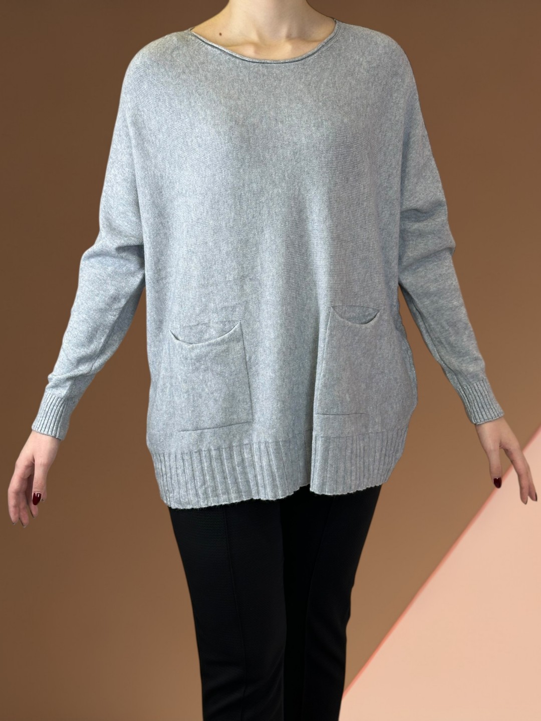 Καφε πουλόβερ plus size για τις μόδες γυναίκες που ψάχνουν άνεση και στυλ! Διαθέτει εντυπωσιακές τσέπες εμπρός για να ενισχύουν κάθε σας εμφάνιση. Εξαιρετικά μαλακή αίσθηση χάρη στη σύνθεσή της (35% Viscoze, 25% Modal, 10% Elasta, 20% Wool, 10% Cashmiere). Διατίθεται σε one size μέγεθος για να ταιριάζει σε όλα τα σώματα. Δημιουργήστε ανεπιτήδευτο στυλ από το πρωί έως το βράδυ!
