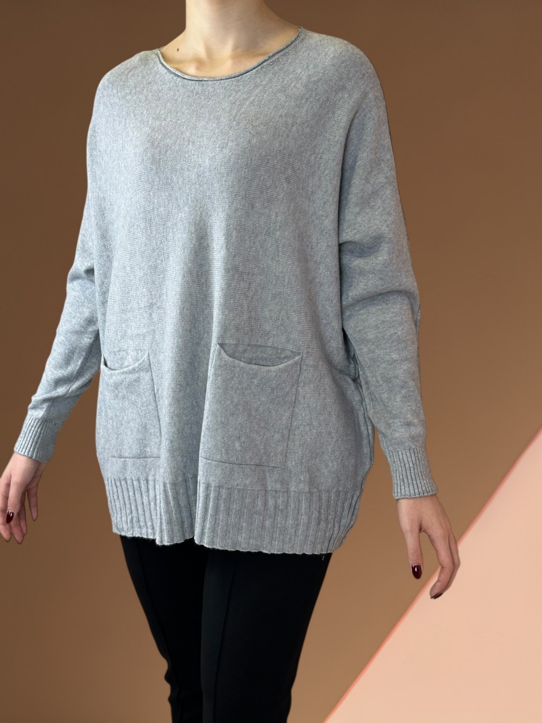 Πουλόβερ καφε χρώμα με εντυπωσιακές τσέπες εμπρός