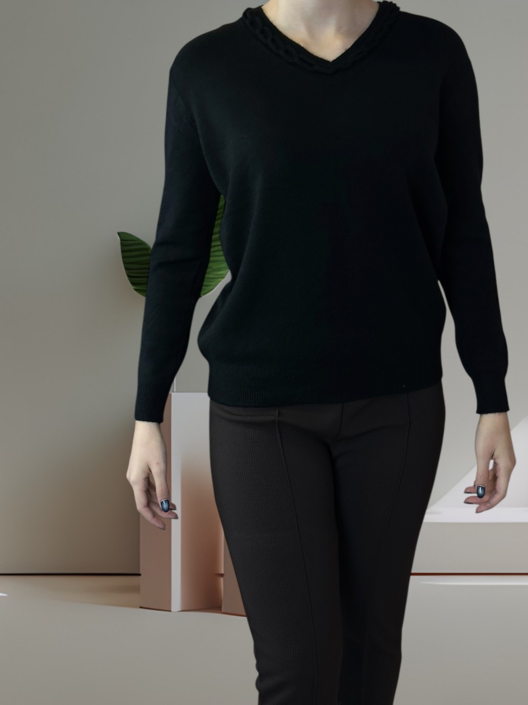 Εντυπωσιάστε με αυτό το κομψό πουλόβερ plus size με λεπτομέρειες αλυσίδας στον λαιμό. Με μοναδικό design, βάζει στο spotlight την μόδα και τη θηλυκότητα σας. Διαθέσιμο σε One size, εφαρμόζει τέλεια σε κάθε σωματότυπο.