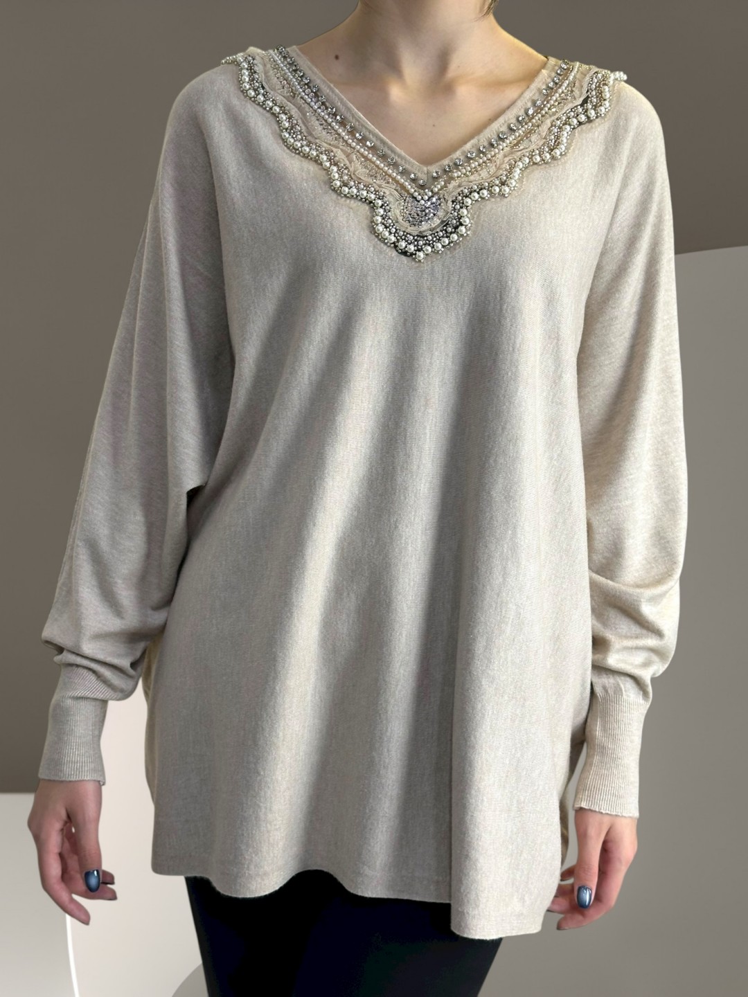 Πουλόβερ με εντυπωσιακό V ντεκολτέ – απλότητα με θηλυκότητα