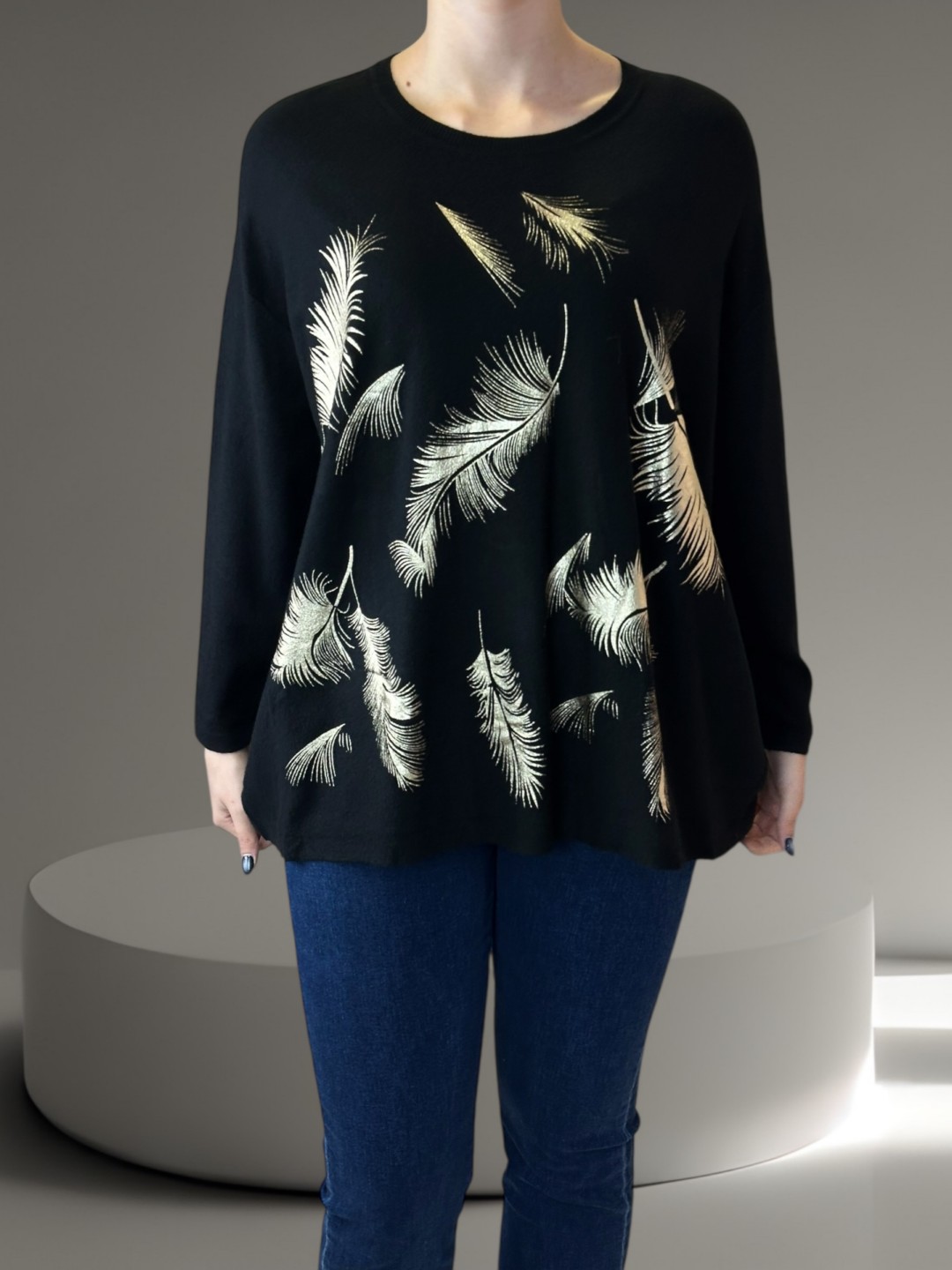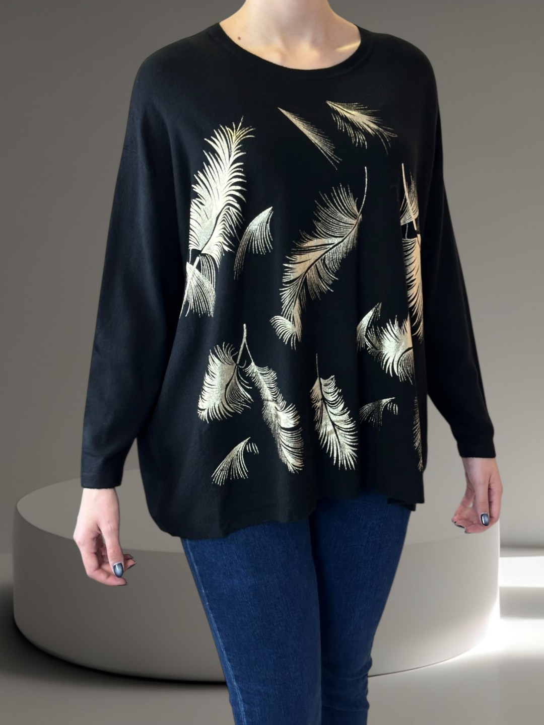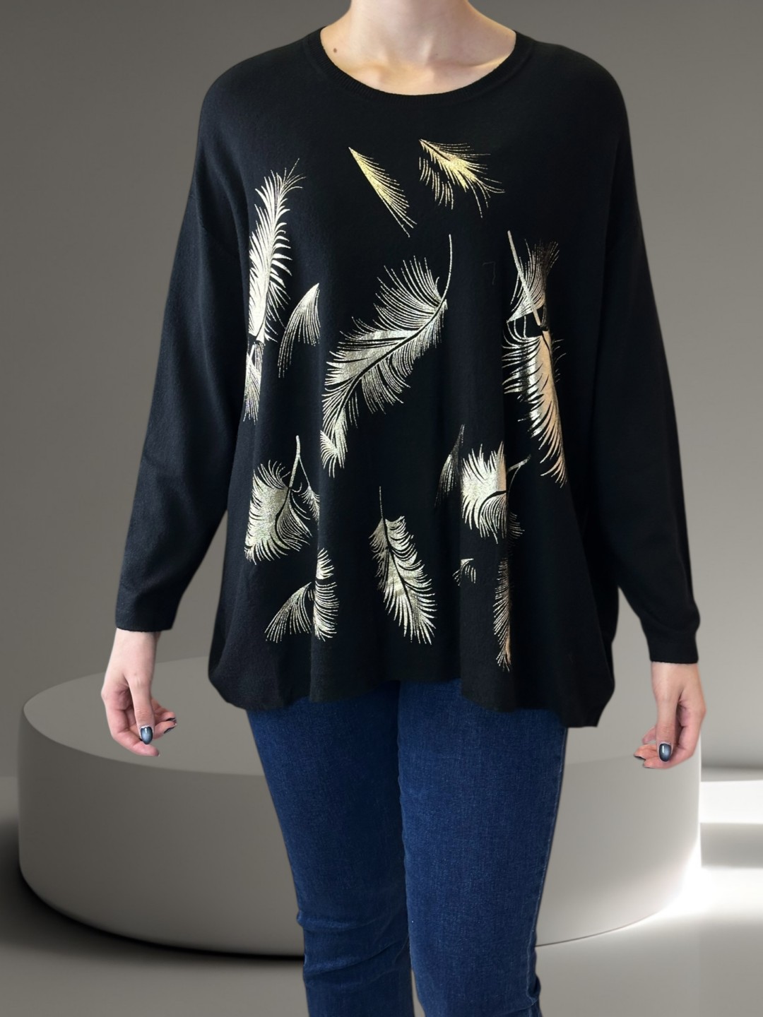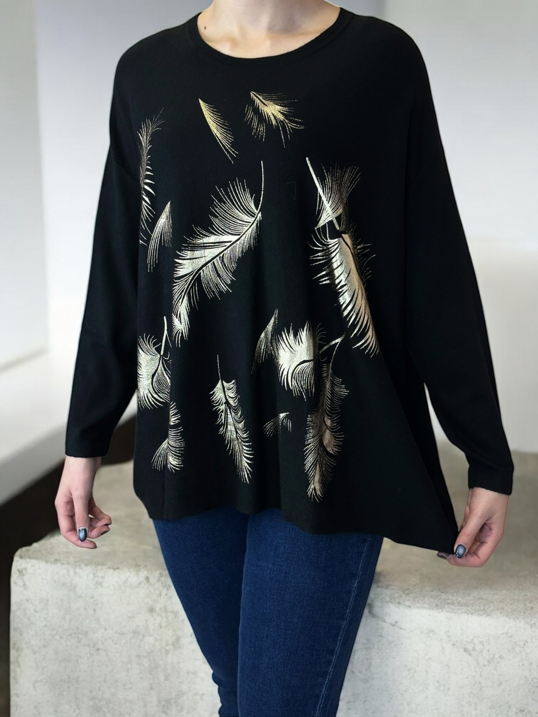 Αναδείξτε την θηλυκότητά σας με αυτό το chic πουλόβερ plus size με σχέδιο πούπουλο. Είναι κατασκευασμένο από ζεστό και απαλό υλικό (40% πολυαμίδη, 20% modal, 20% βισκόζ, 10% ελαστάν, 10% πολυεστέρα), εξασφαλίζοντας απόλυτη άνεση. Ενιαίο μέγεθος για να ταιριάζει σε κάθε σωματότυπο!