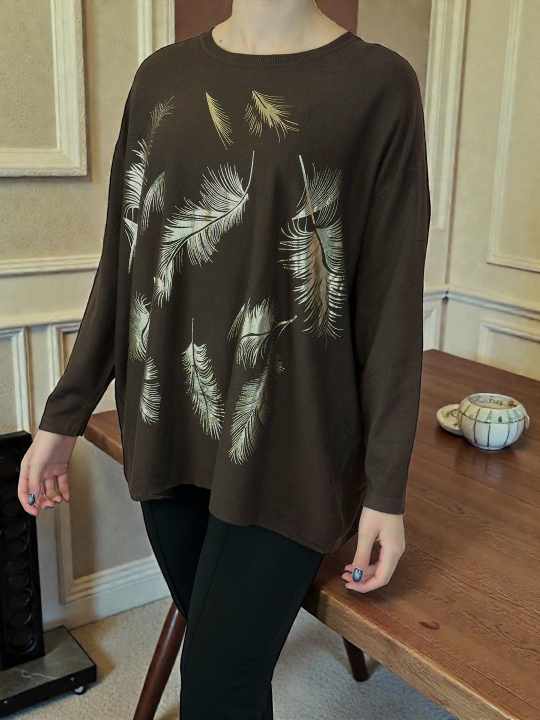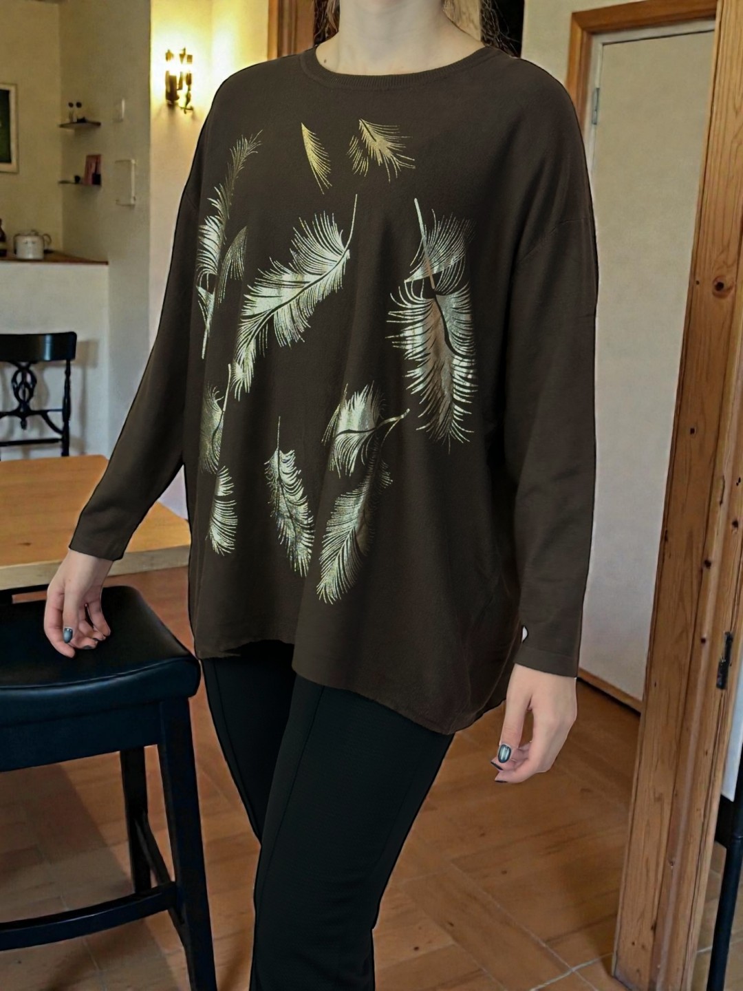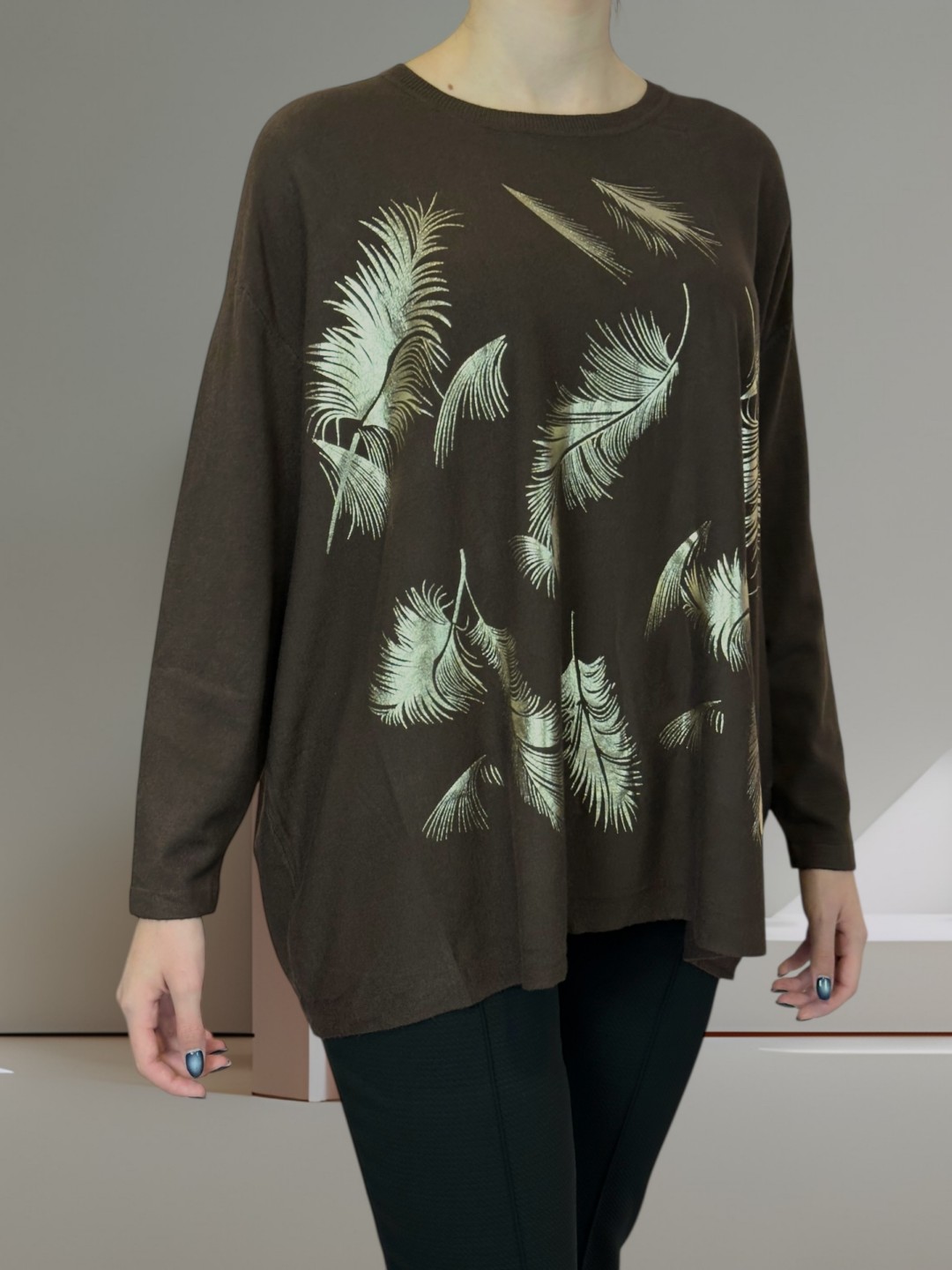 Αυτό το plus size πουλόβερ με πούπουλο σχέδιο είναι το ιδανικό κομμάτι για την γκαρνταρόμπα σας. Με σύνθεση 40% poliamide, 20% modal, 20% viscoza, 10% elastan και 10% poliester, συνδυάζει άνεση και στυλ. Είναι διαθέσιμο σε One size, προσφέροντας ανερχόμενο και φιλικό προς το σώμα εφαρμογή.