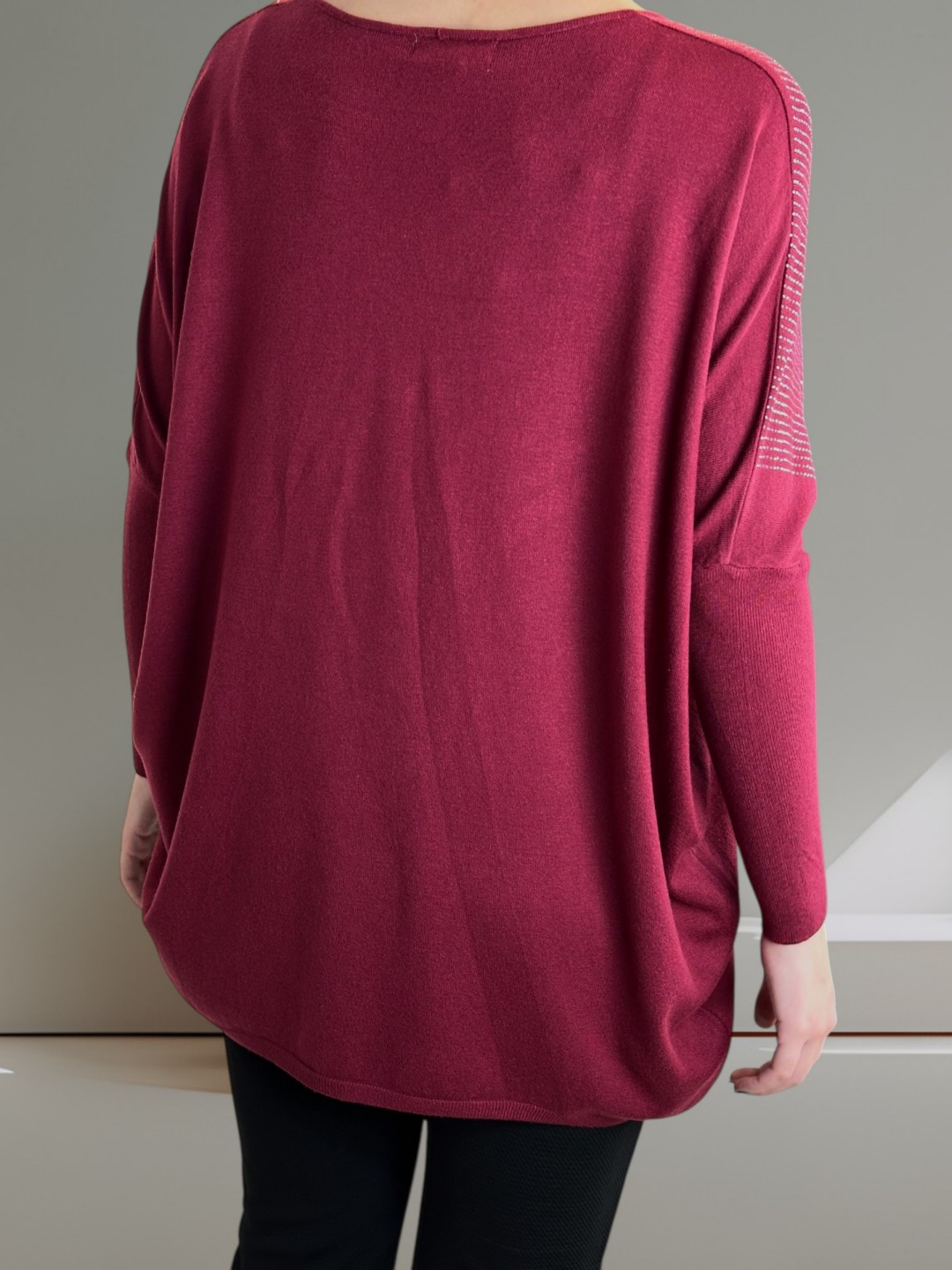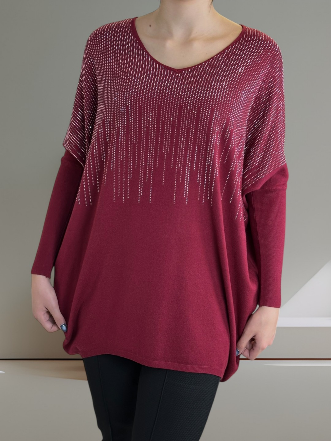 Εκλεπτυσμένο plus size πουλόβερ με λαμπερές λεπτομέρειες από στρας για πιο glamour εμφανίσεις. Σύνθεση από 88% viscoza και 12% nylon, εξασφαλίζει απαλότητα και αντοχή. Διατίθεται στο μέγεθος One size. Δώστε λάμψη σε κάθε σας εμφάνιση.