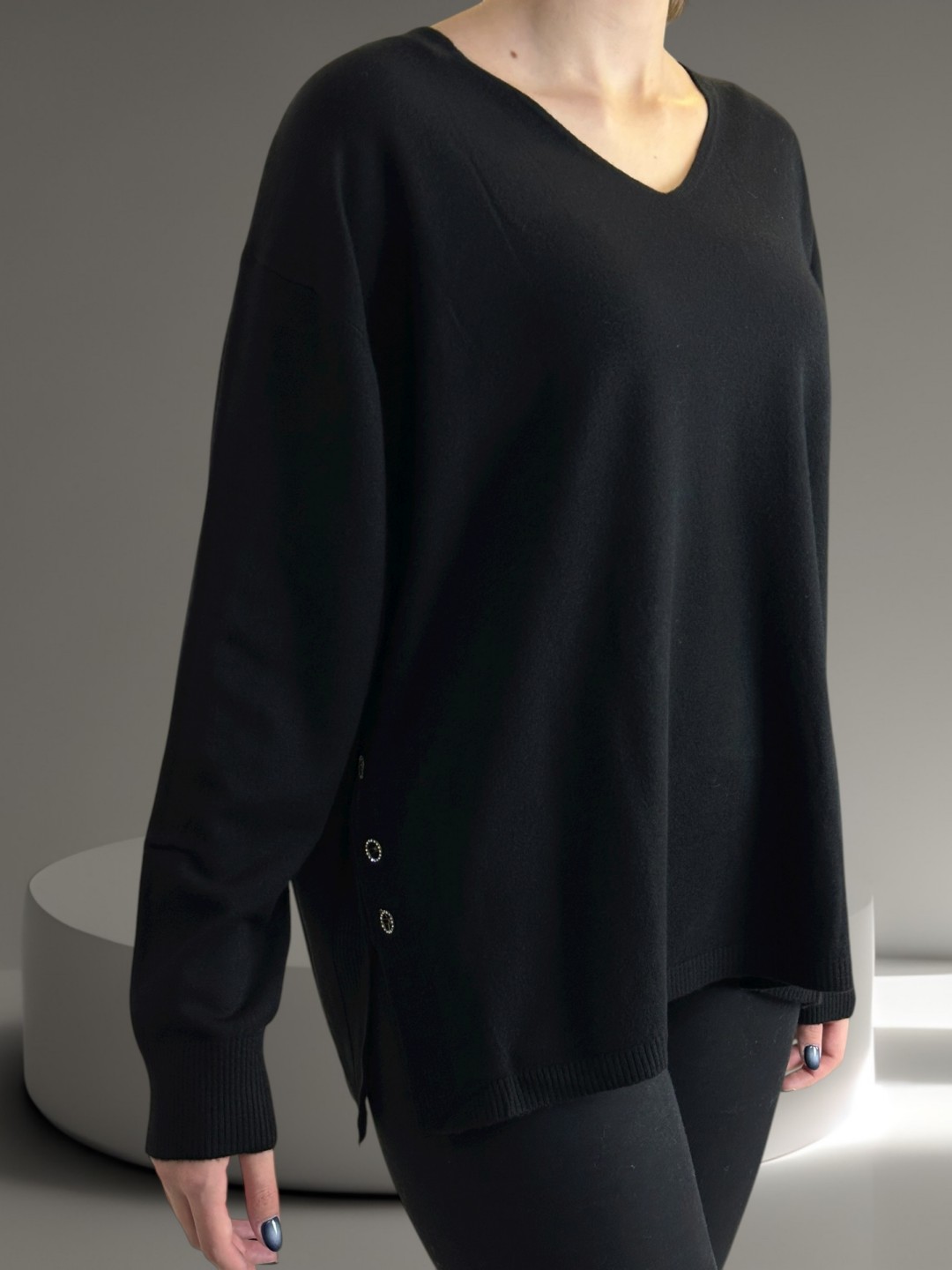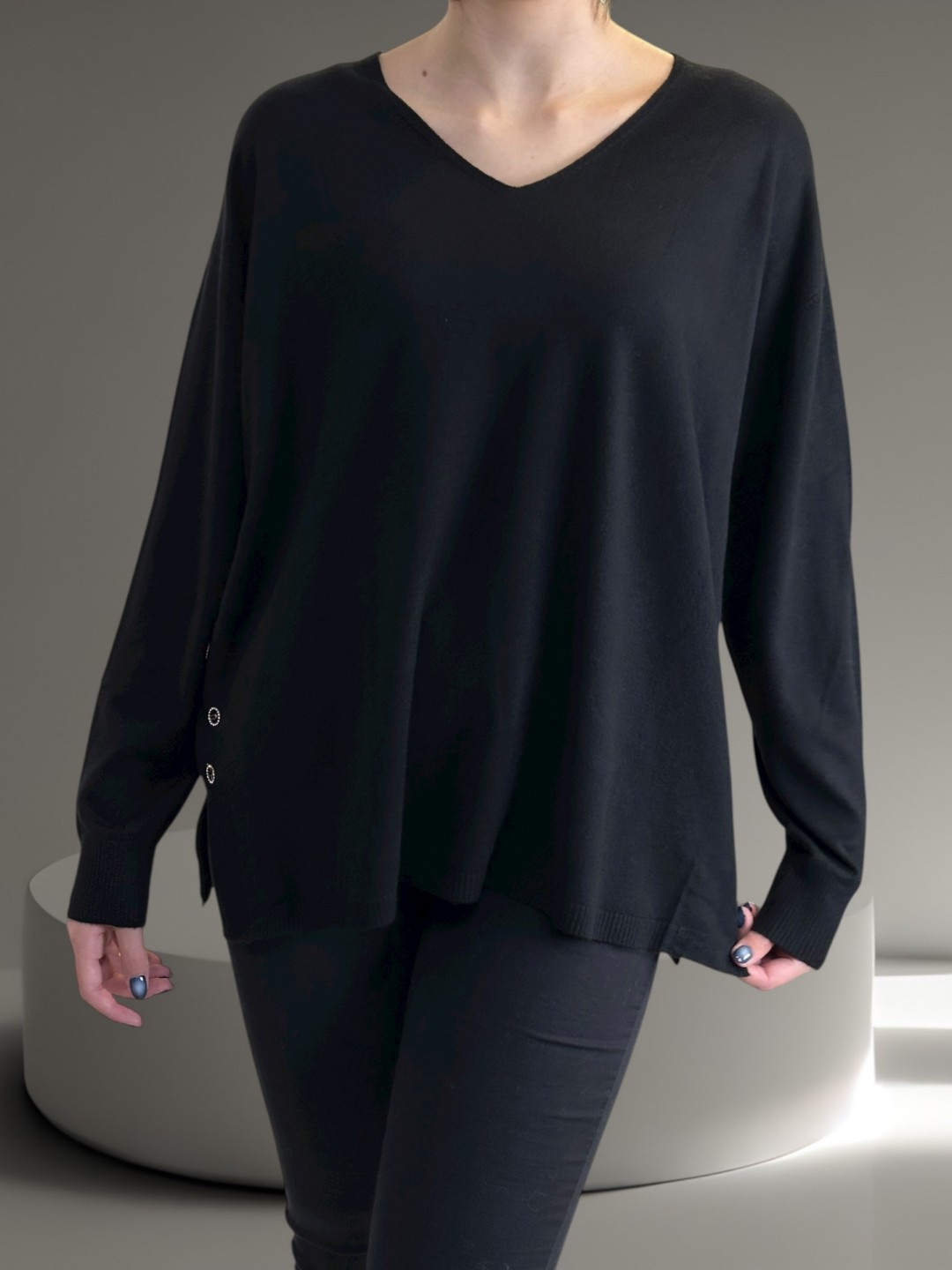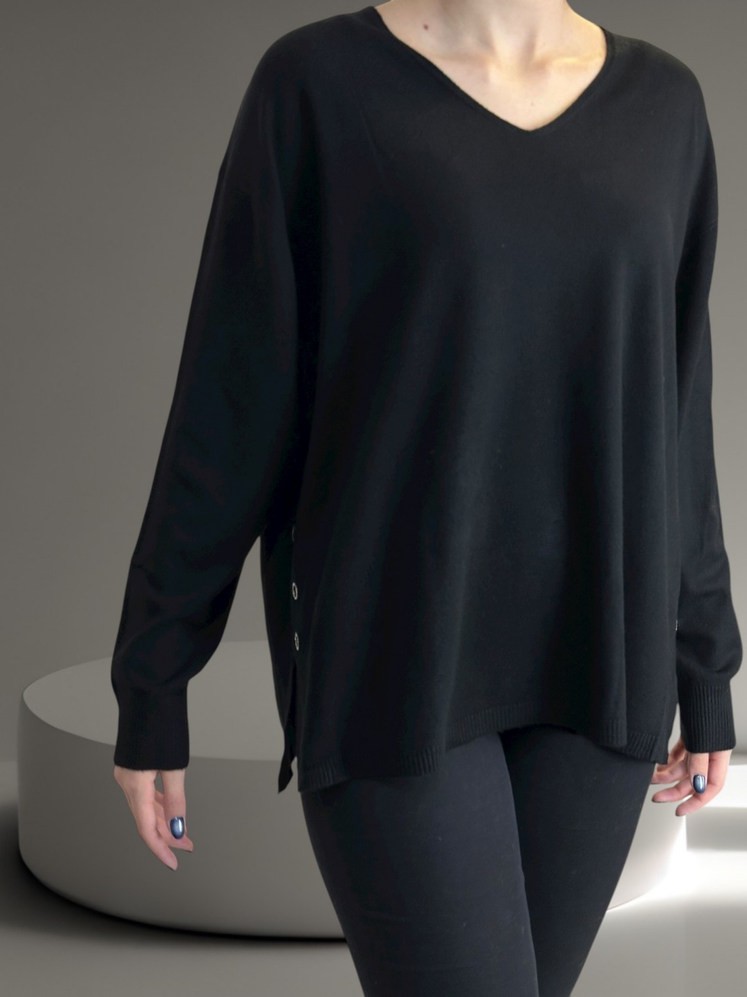 Πουλόβερ με V και διακοσμητικά κουμπιά – κομψότητα σε κάθε λεπτομέρεια