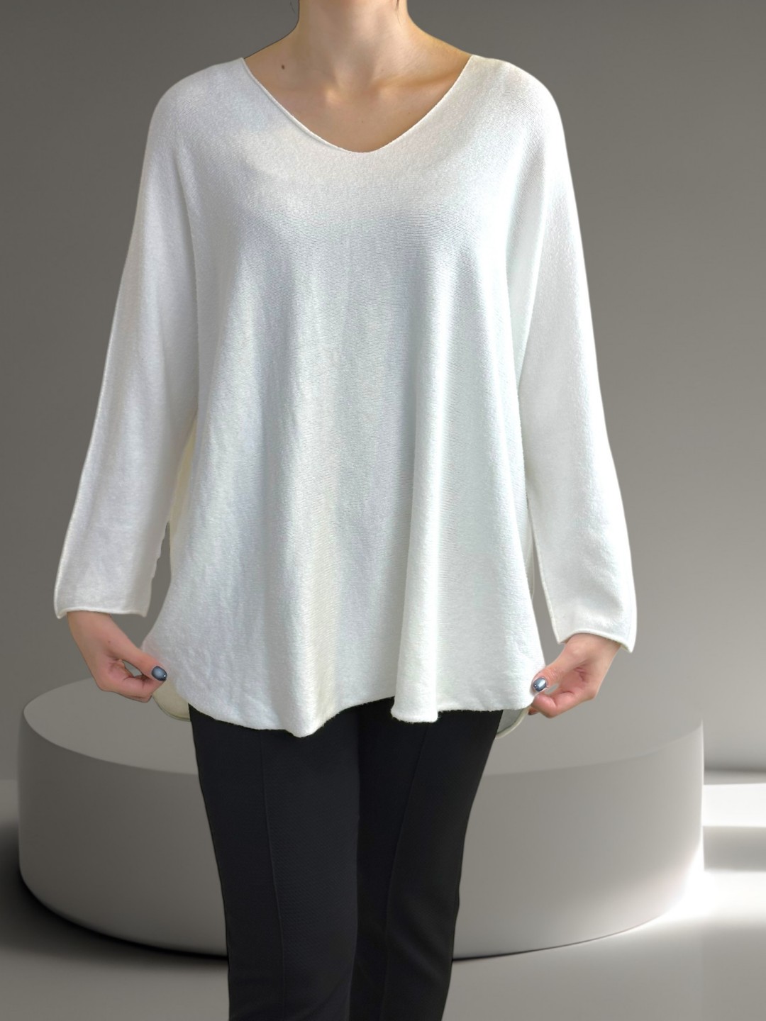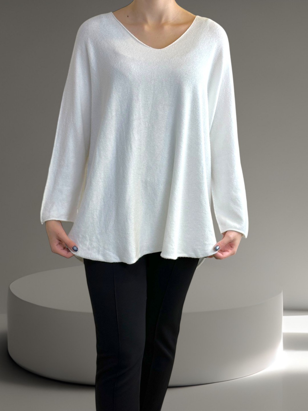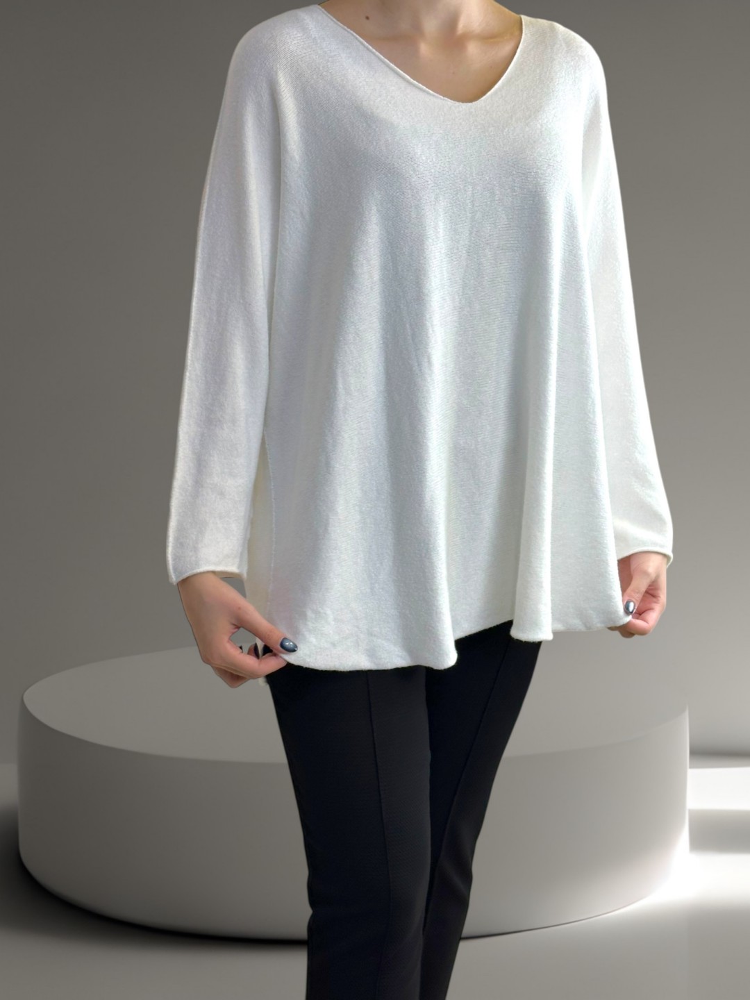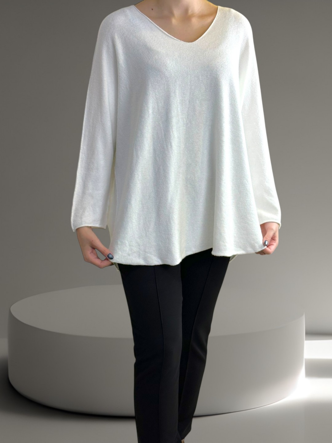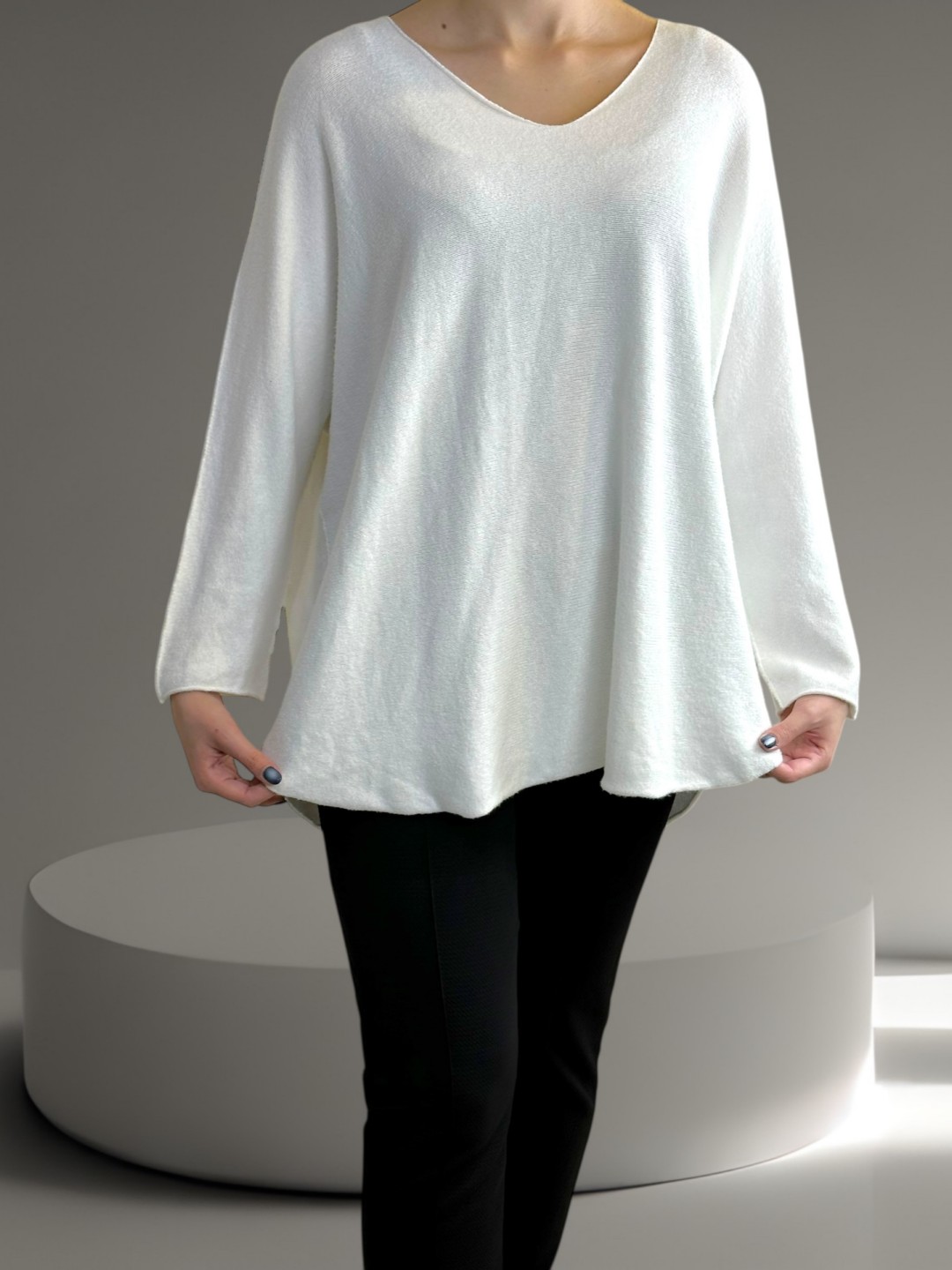 Απογείωσε το στιλ σου με αυτό το σοφιστικέ κυριλέ πουλόβερ με V λαιμόκοψη. Κατασκευασμένο για τις κομψές plus size γυναίκες, ταιριάζει τέλεια σε κάθε σώμα χάρη στη μοναδική του γραμμή. Διατίθεται σε μέγεθος One-size, ταιριάζει σε όλες!