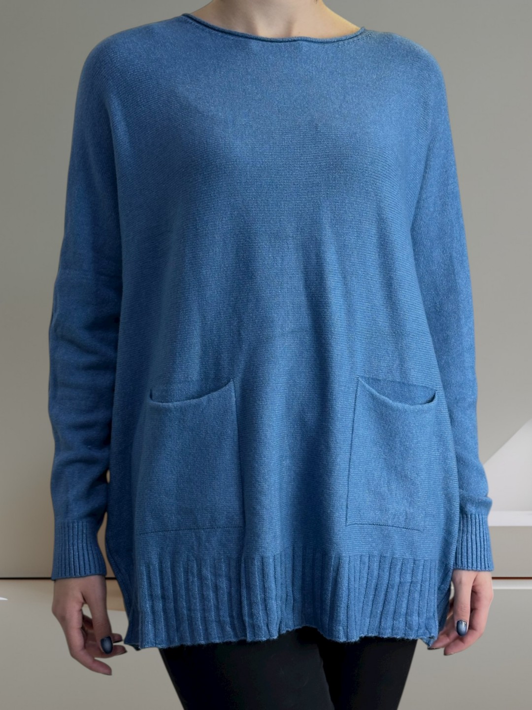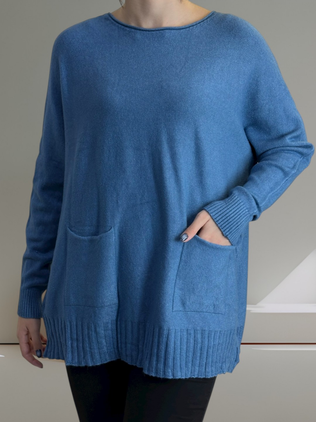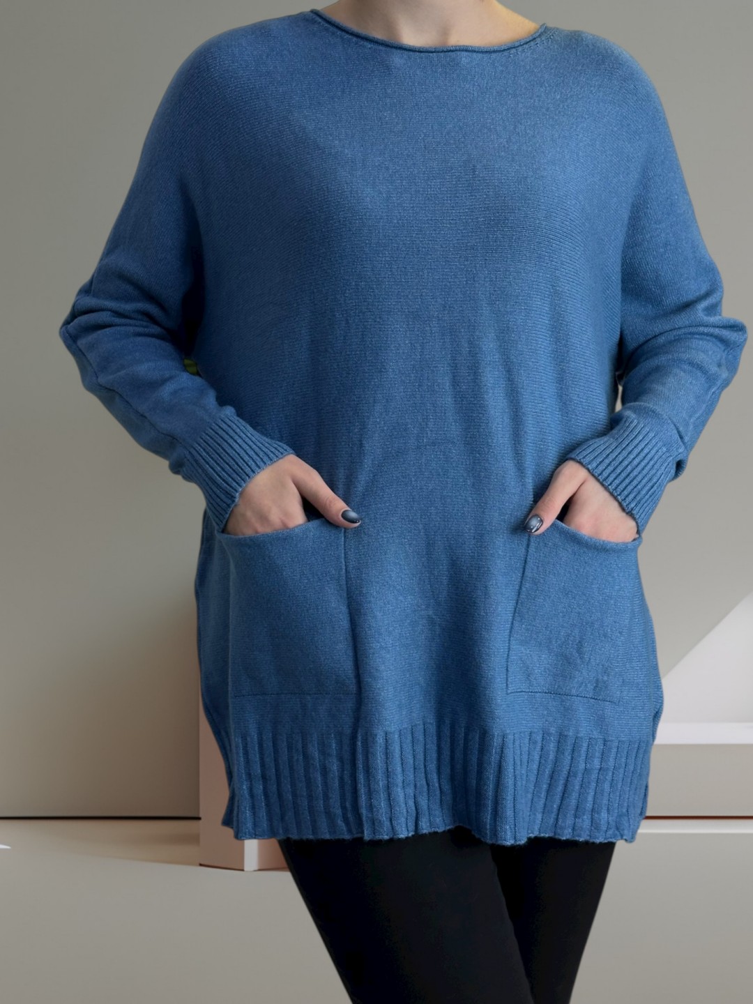 Πουλόβερ σε μπλε χρώμα με εντυπωσιακές τσέπες εμπρός