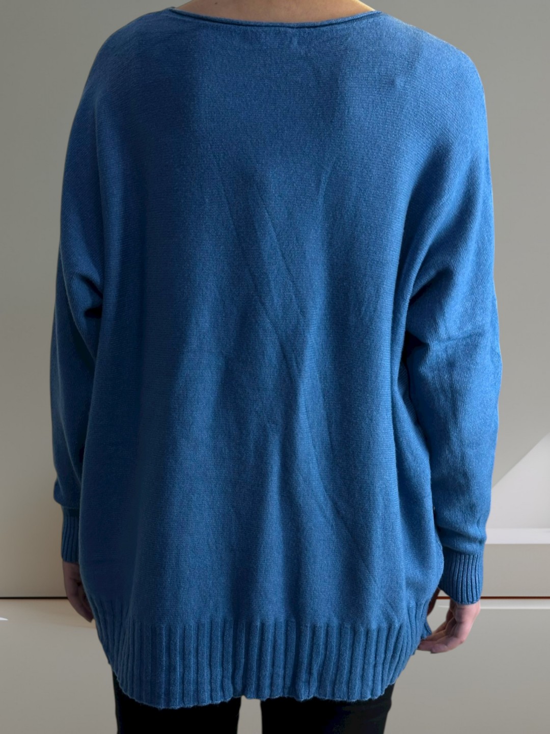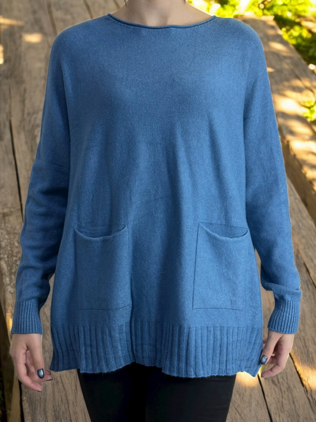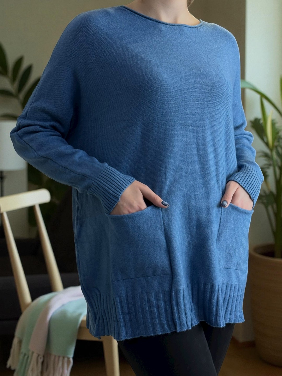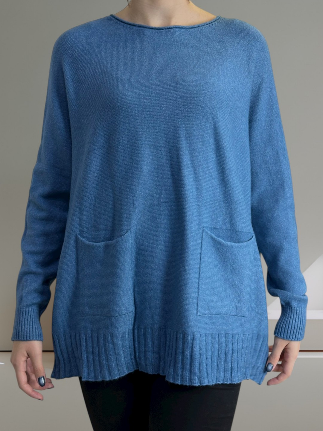 Πουλόβερ σε μπλε χρώμα με εντυπωσιακές τσέπες εμπρός