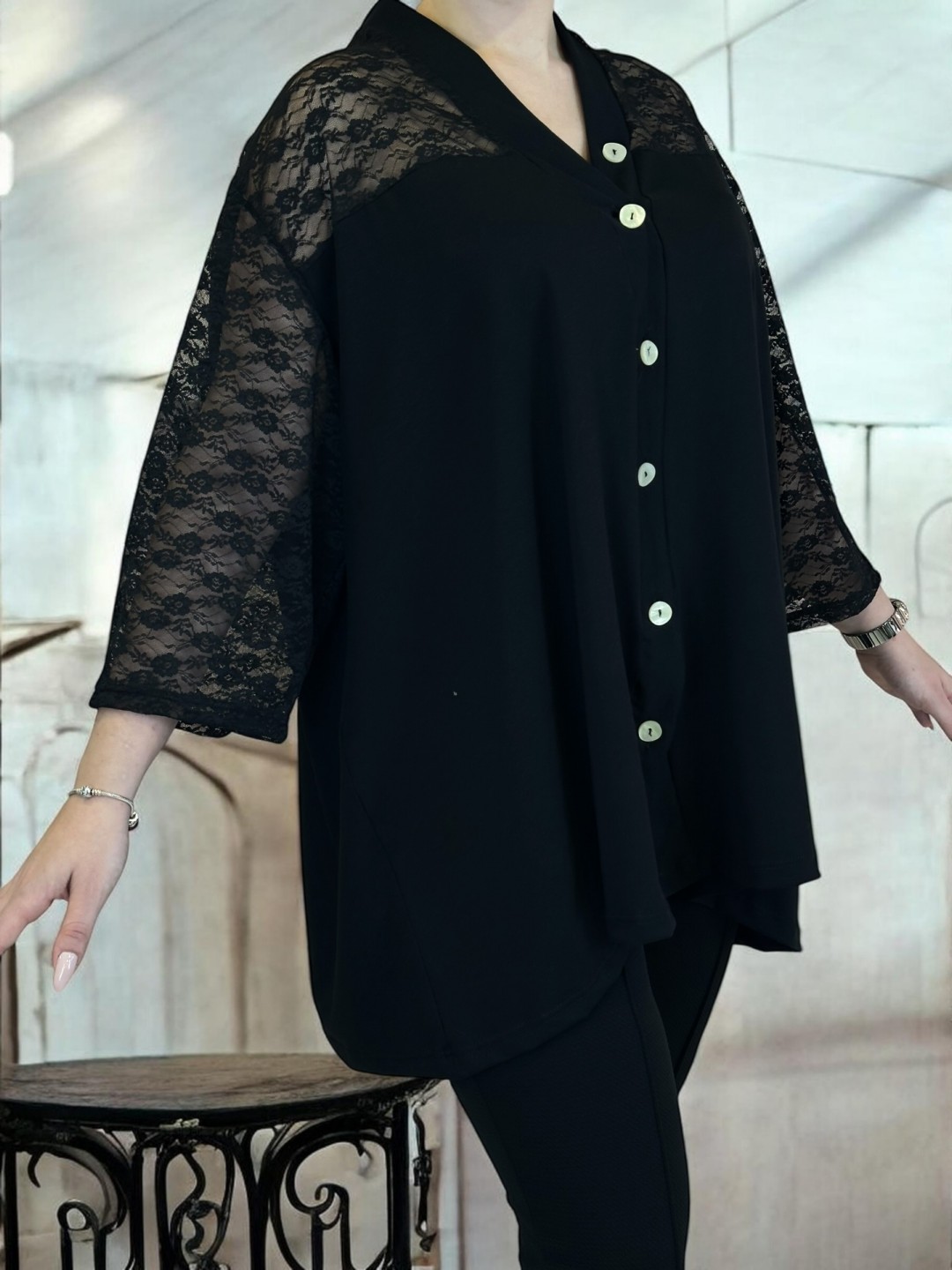 Premium πουκάμισο με φίνα δαντελένια λεπτομέρεια