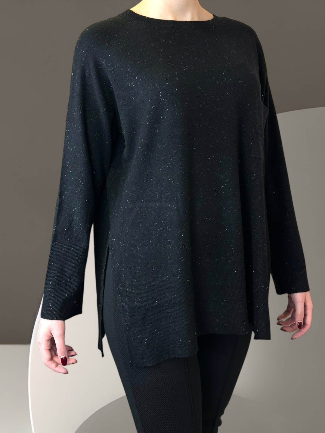 Premium Πουλόβερ V με Λαμπερή Ασημί Κλωστή