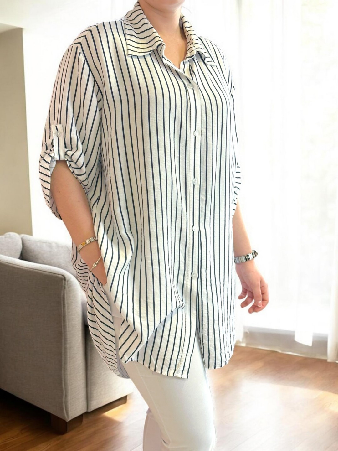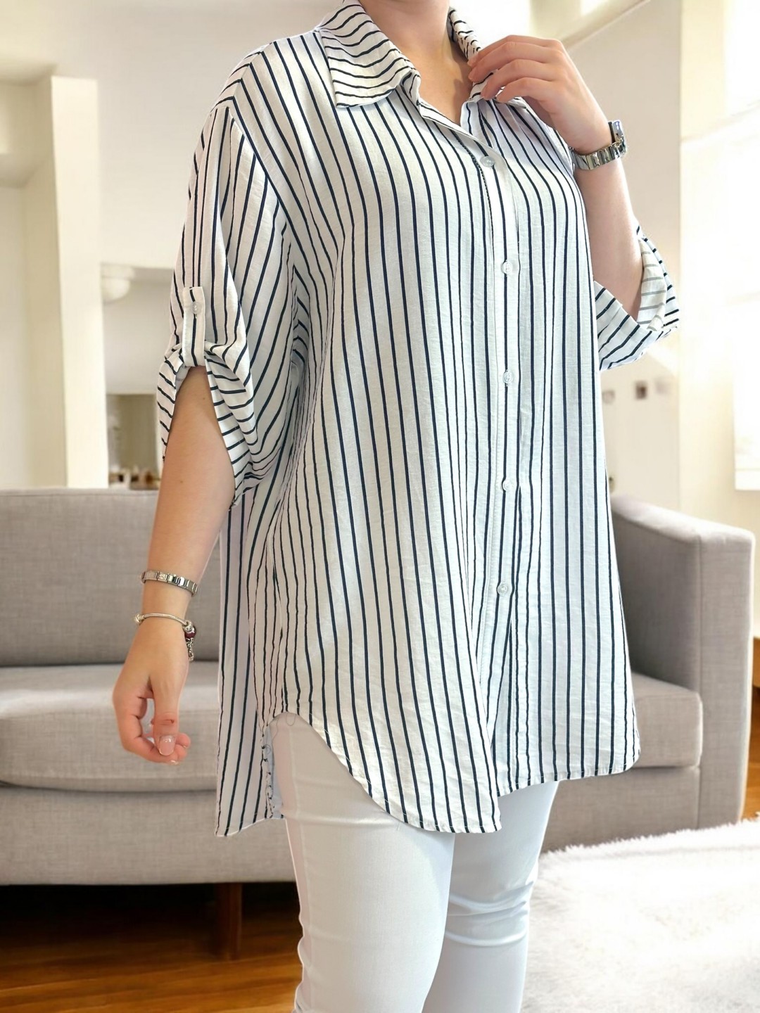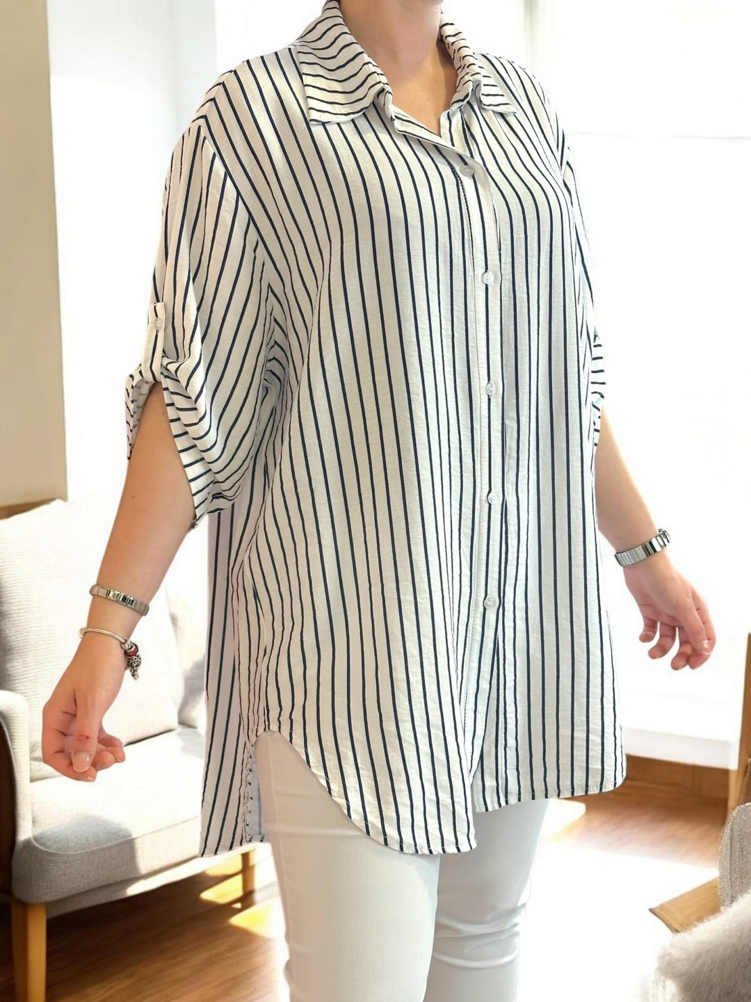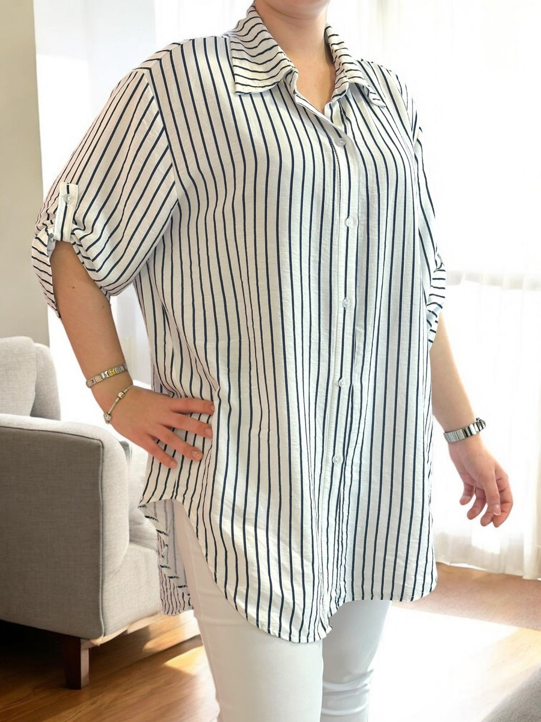 Ριγέ πουκάμισο με μοντέρνο ασύμμετρο σχέδιο