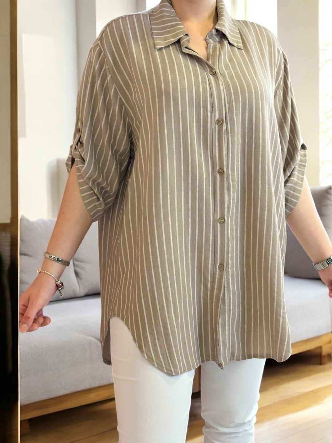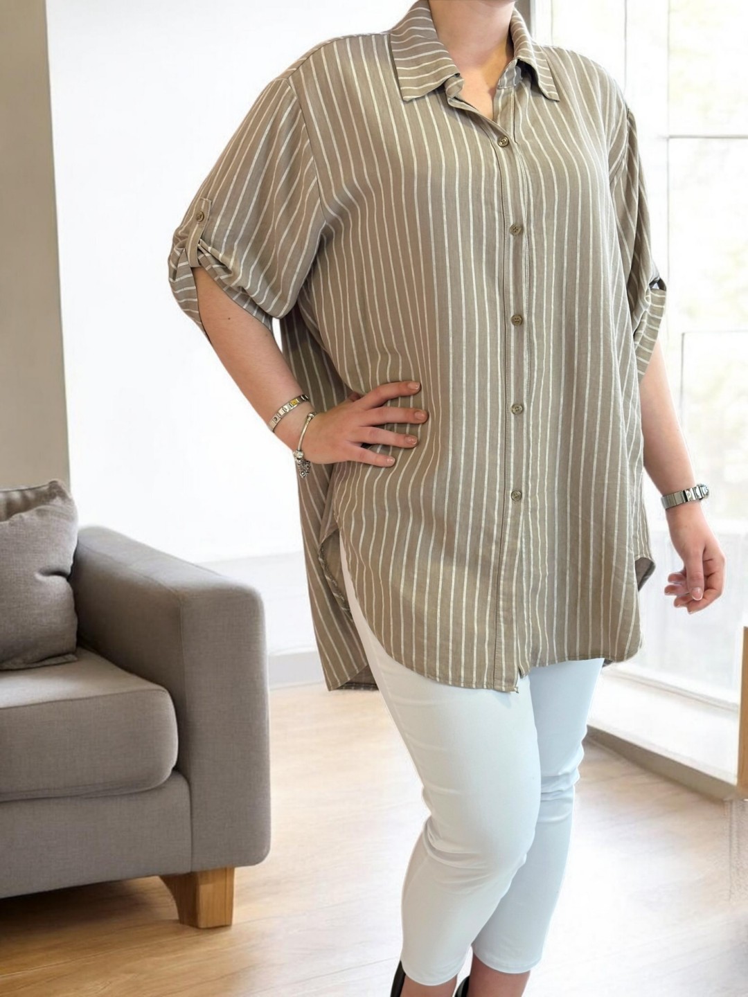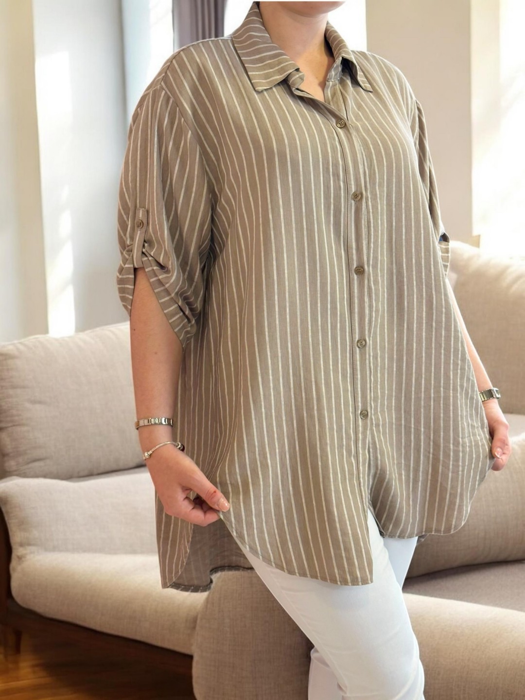 Ριγέ πουκάμισο με μοντέρνο ασύμμετρο σχέδιο