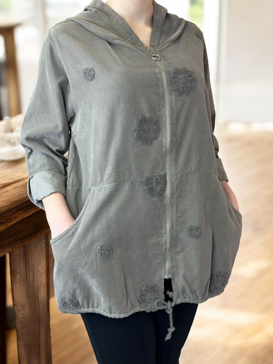 Ρομαντική Ζακέτα με 3D Ανάγλυφα Λουλούδια