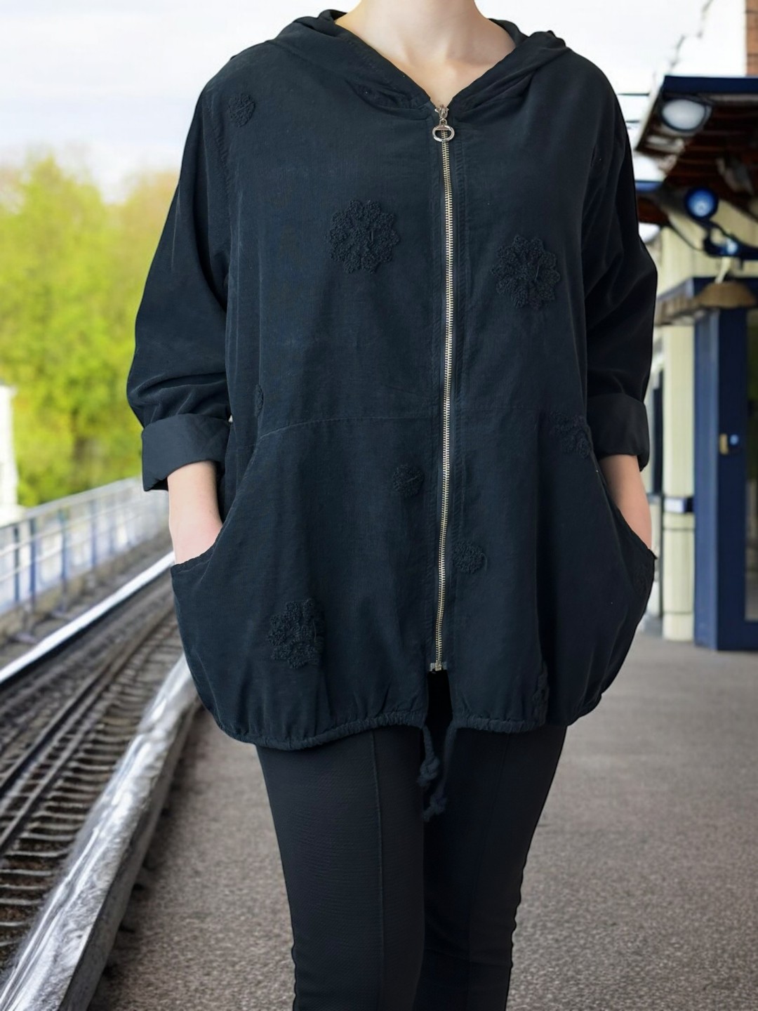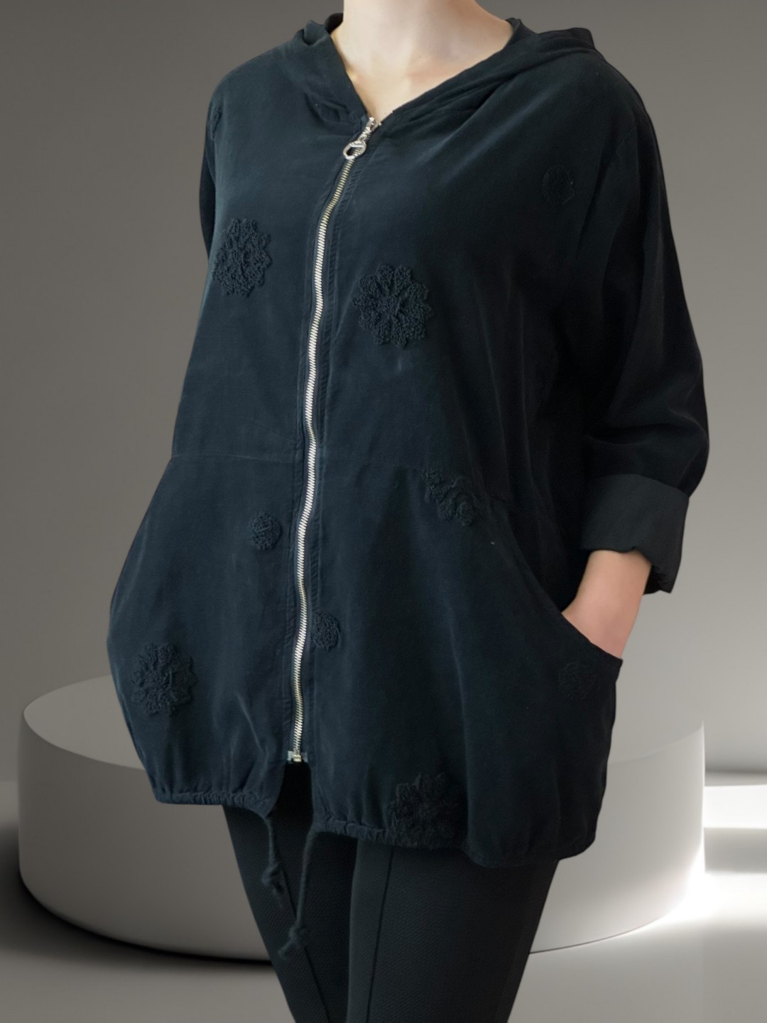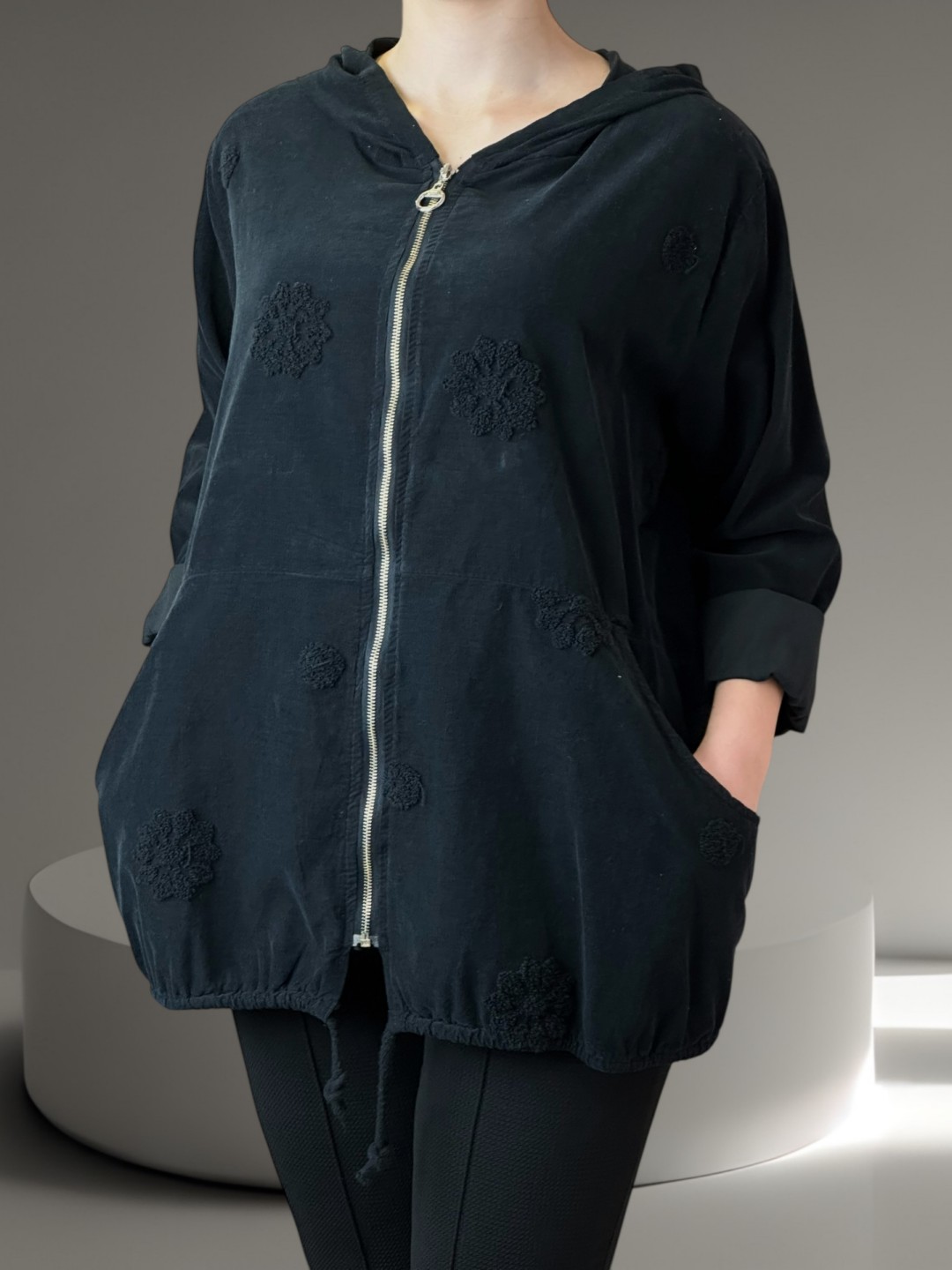 Χαρίστε στον εαυτό σας την αίσθηση της ρομαντικής αυτής ζακέτας plus size με 3D ανάγλυφα λουλούδια. Είναι ιδανική για εκείνες τις γυναίκες που θέλουν να αισθάνονται ιδιαίτερες. Ταιριάζει σε όλα τα μεγέθη (One Size).