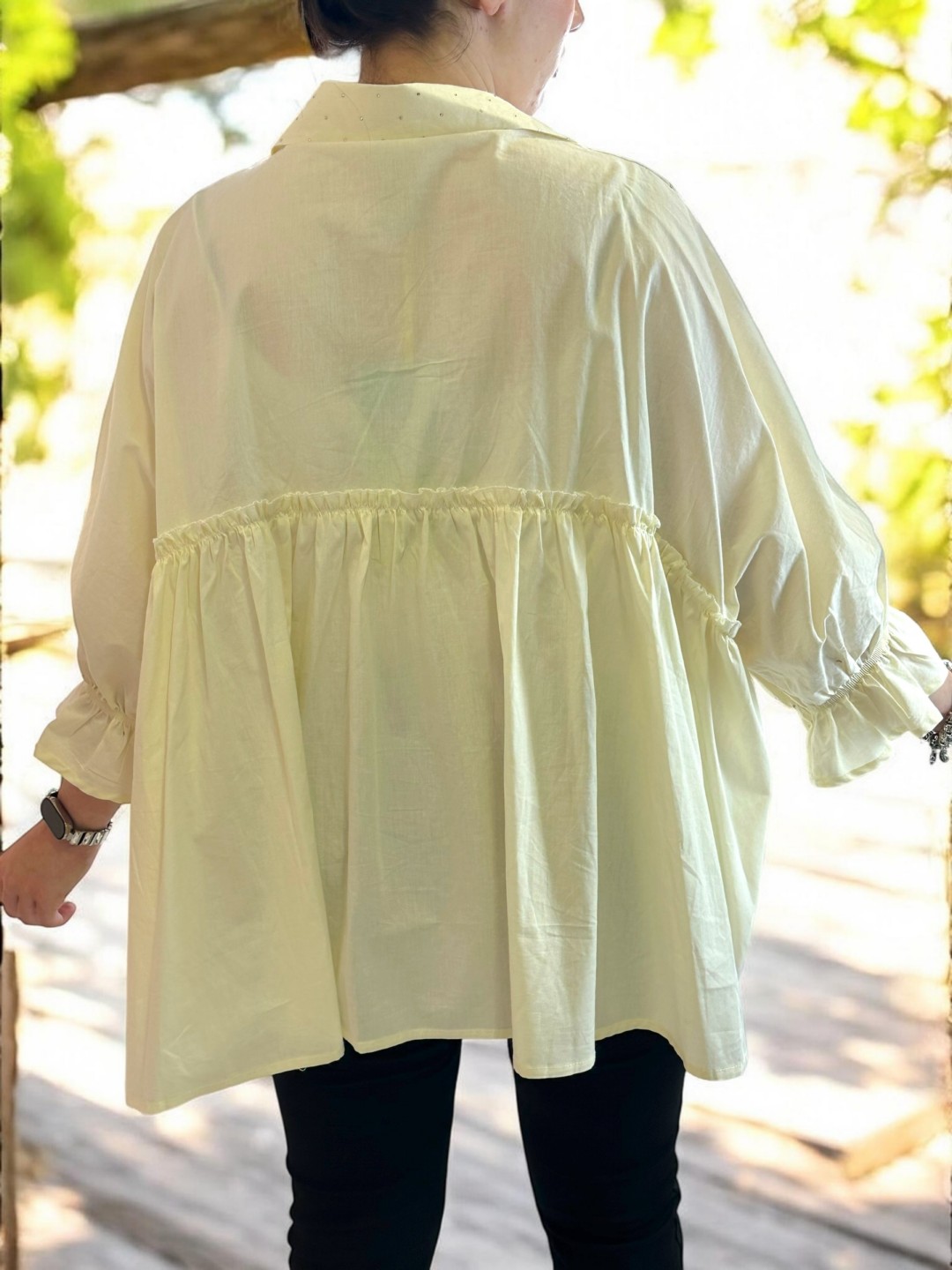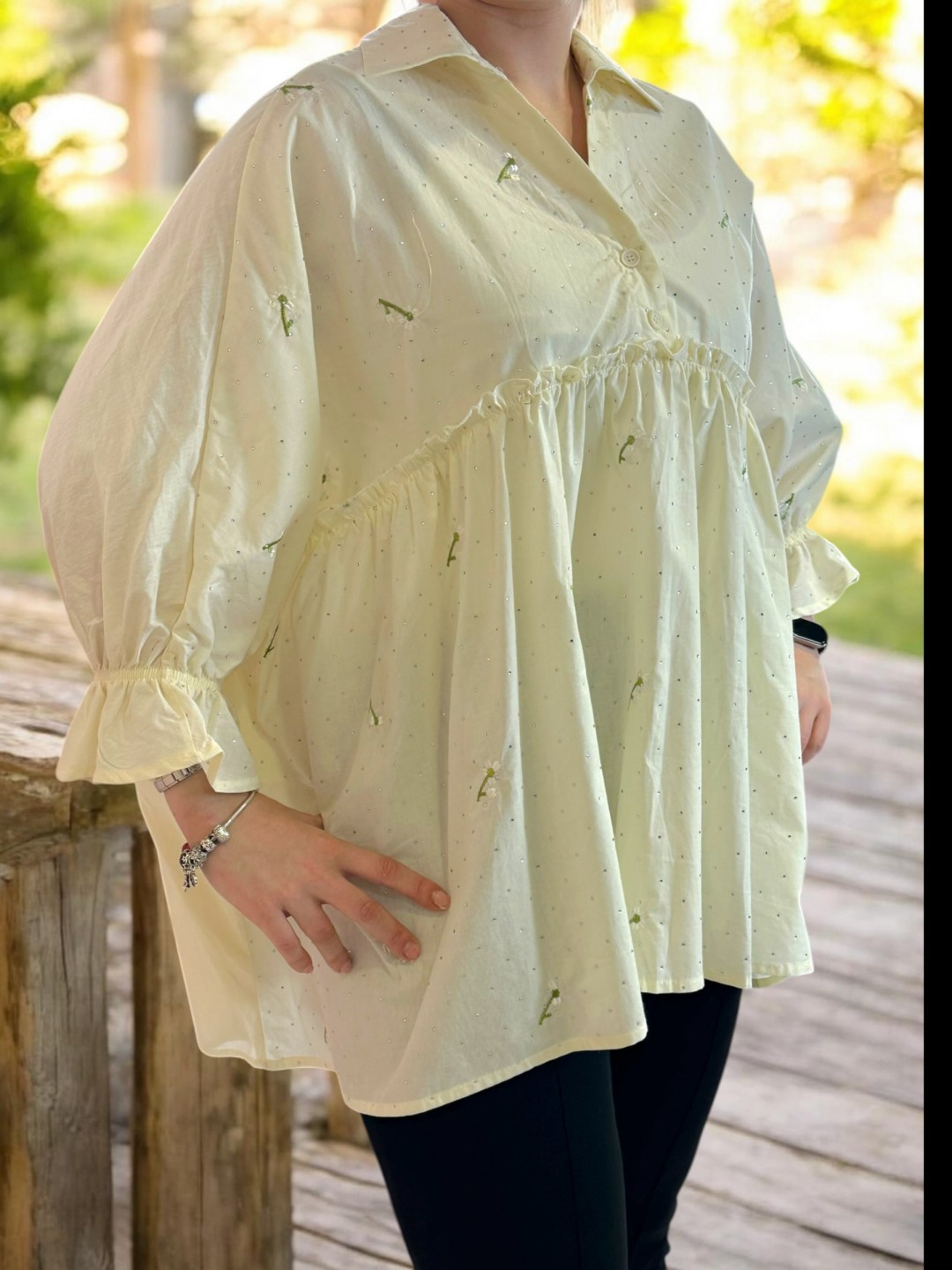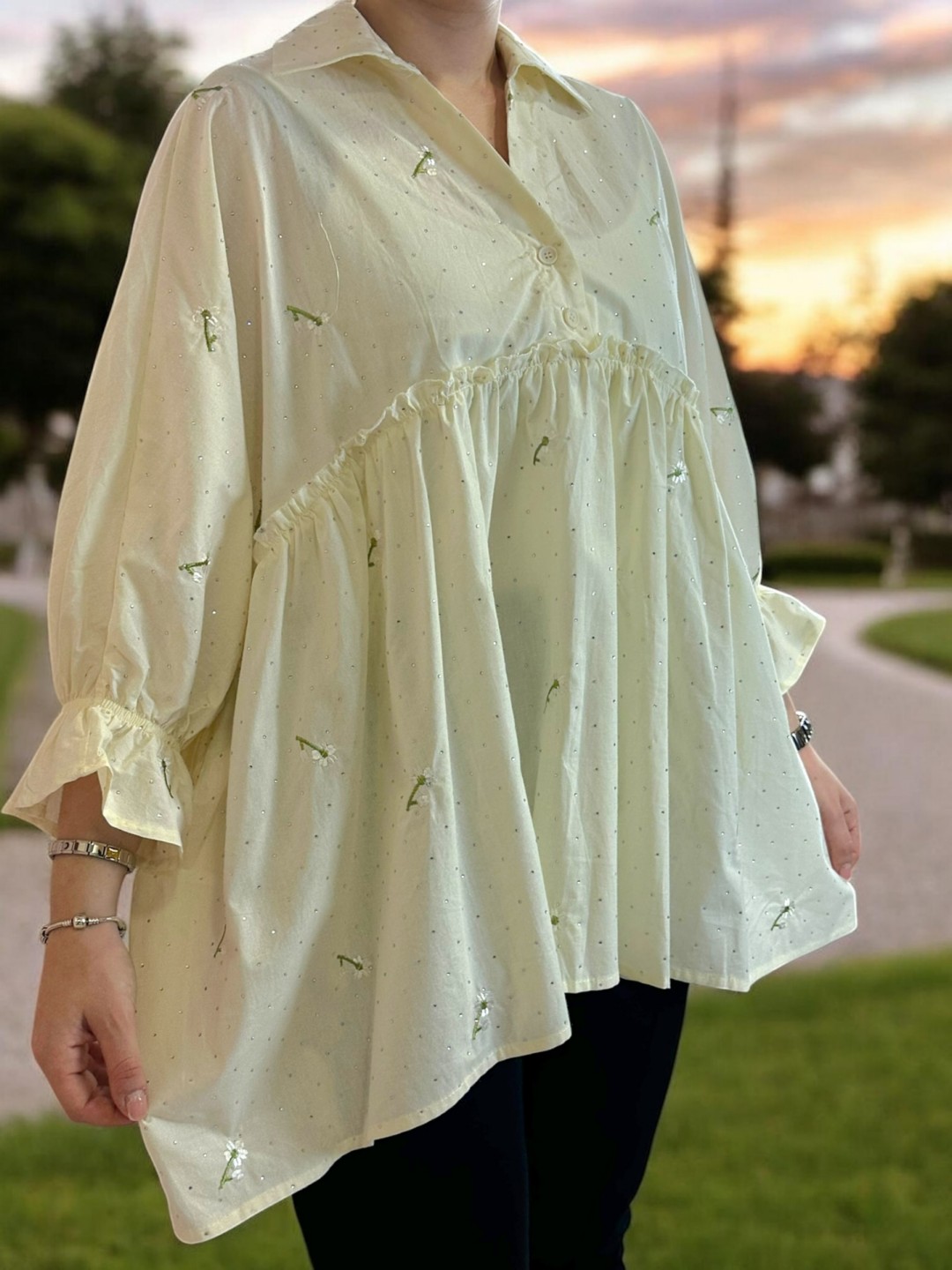 Ρομαντικό πουκάμισο με βολάν και κεντητό σχέδιο