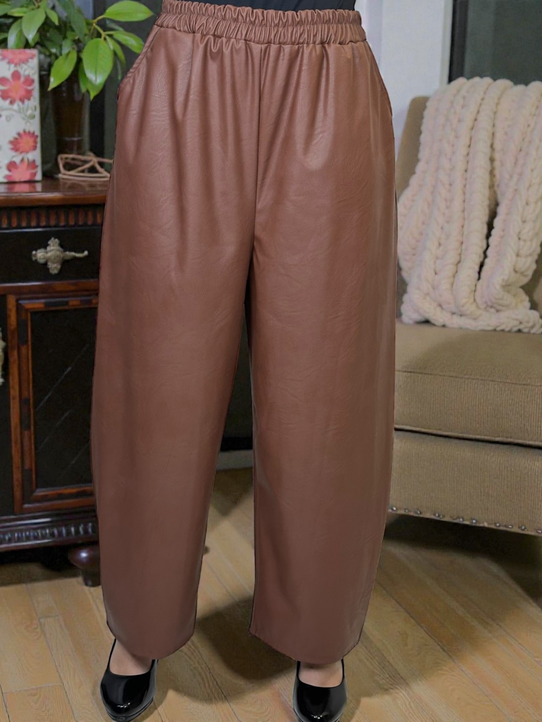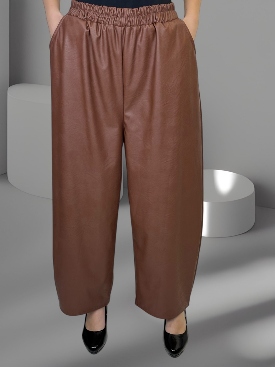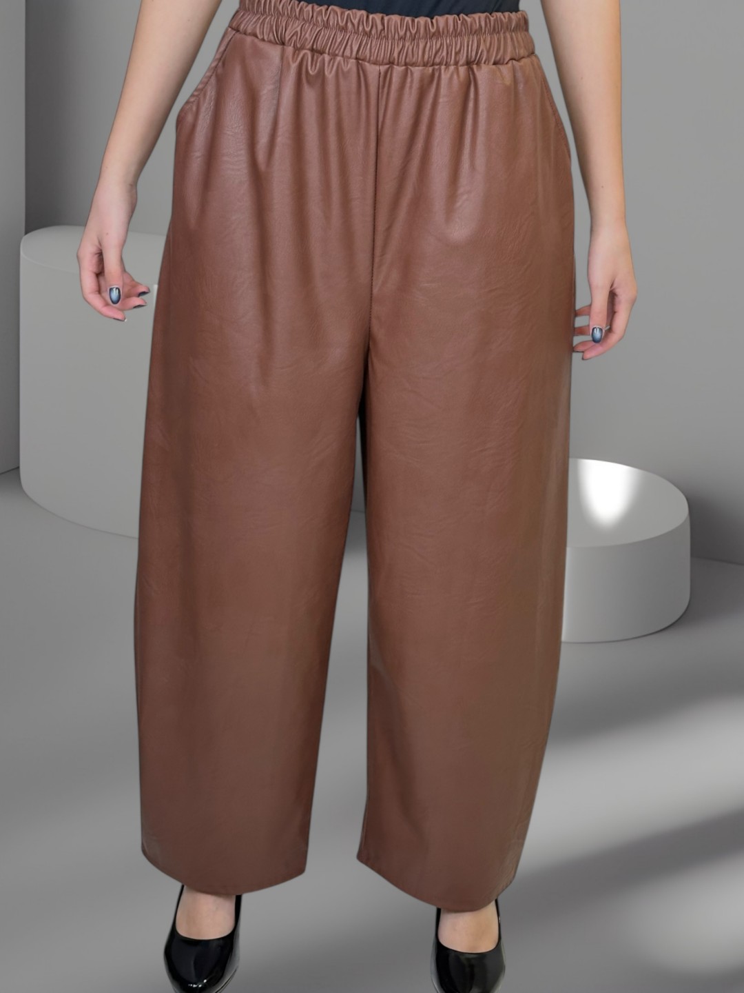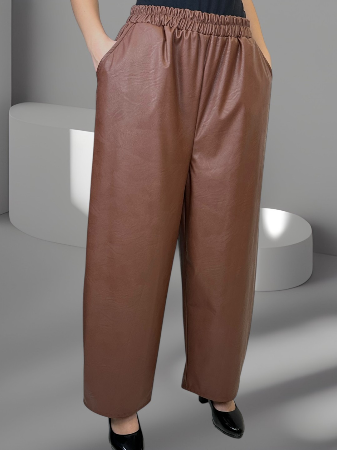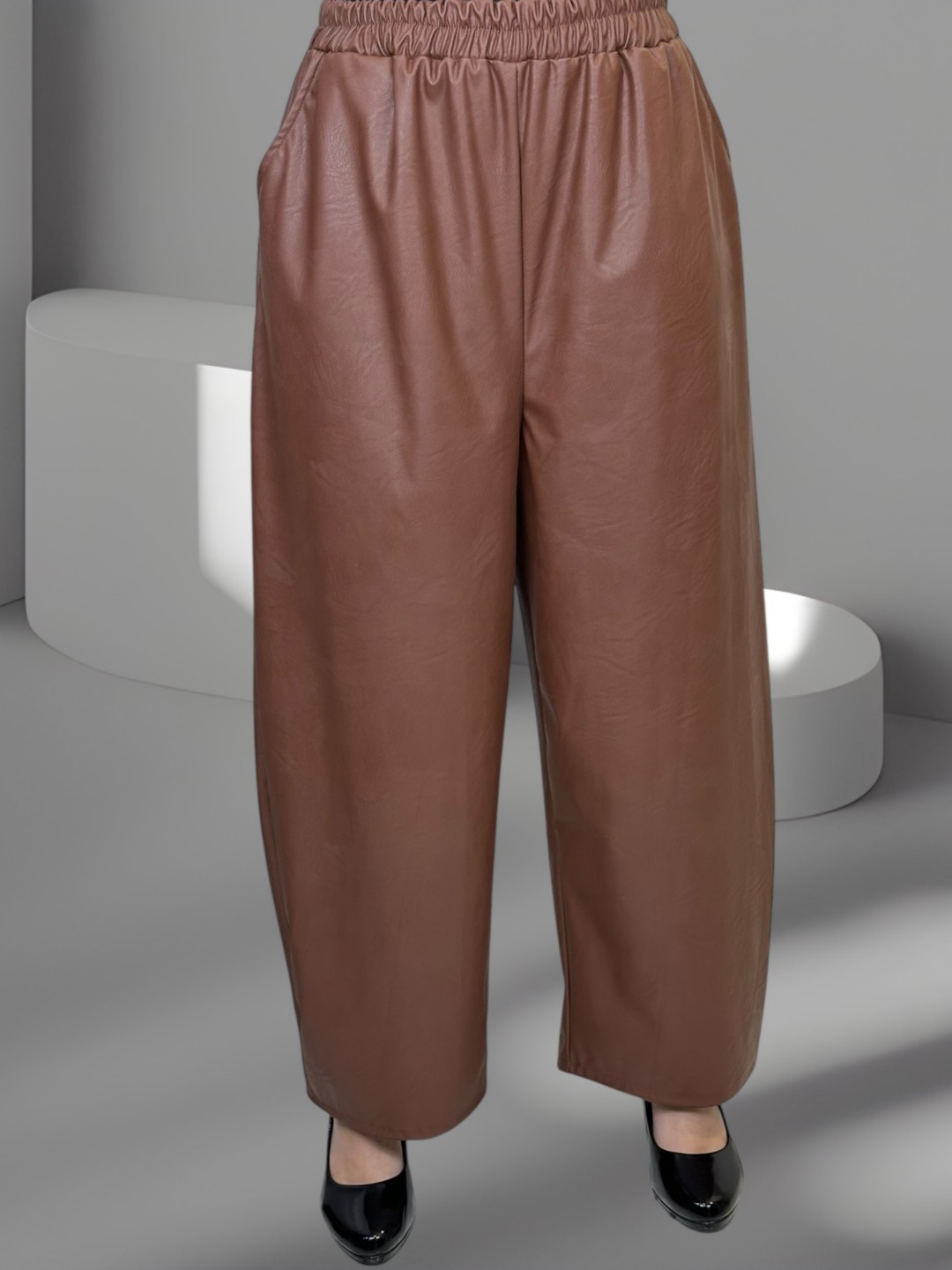 Αναδείξτε τη φιγούρα σας με αυτό το σαλβάρι από συνθετικό δέρμα plus size! Εξαιρετική ποιότητα κατασκευής, σύνθεση 40% πολυεστέρα & 60% πολυουρεθάνη για άνετη εφαρμογή. One size για κάθε σώμα.